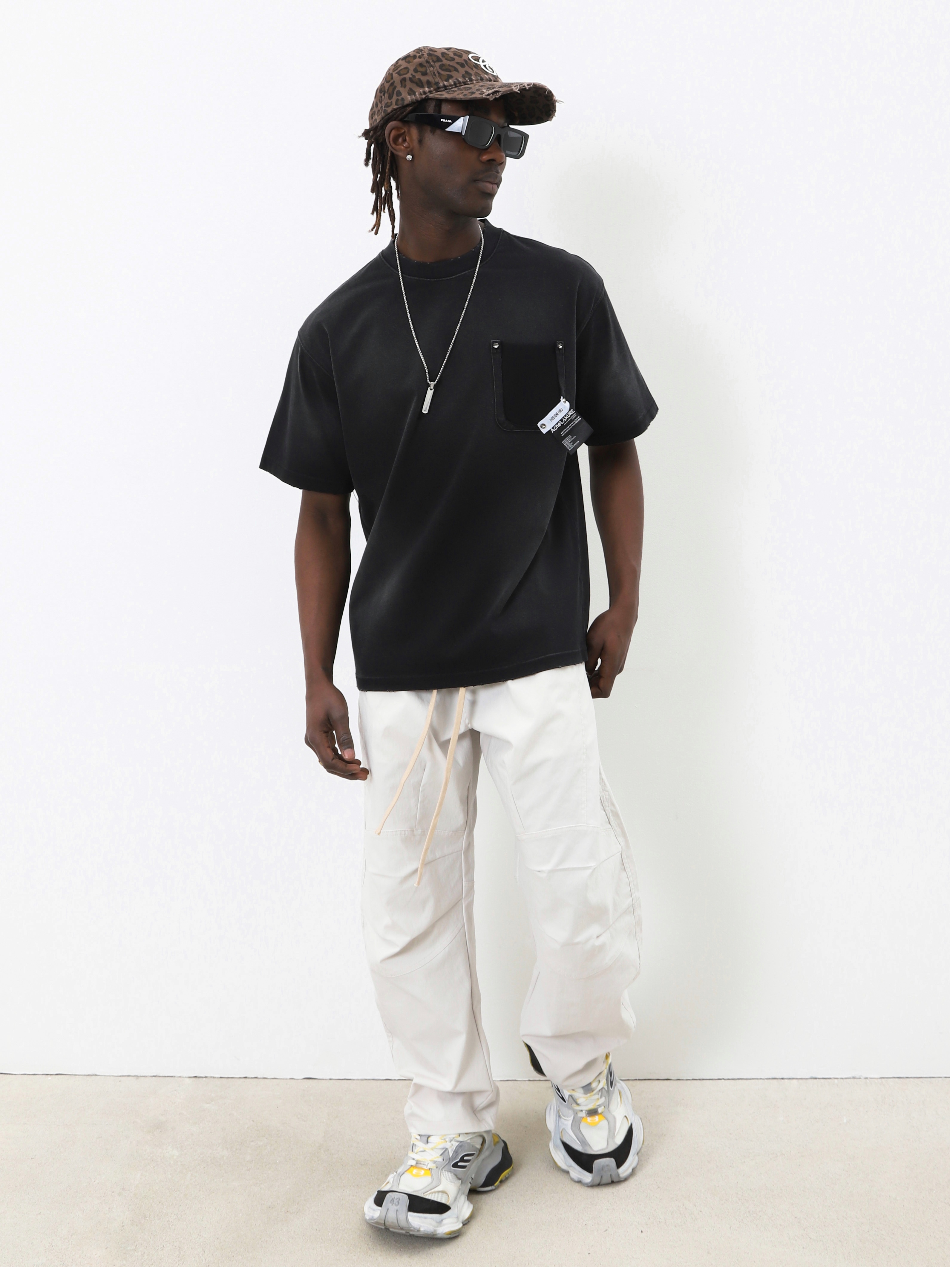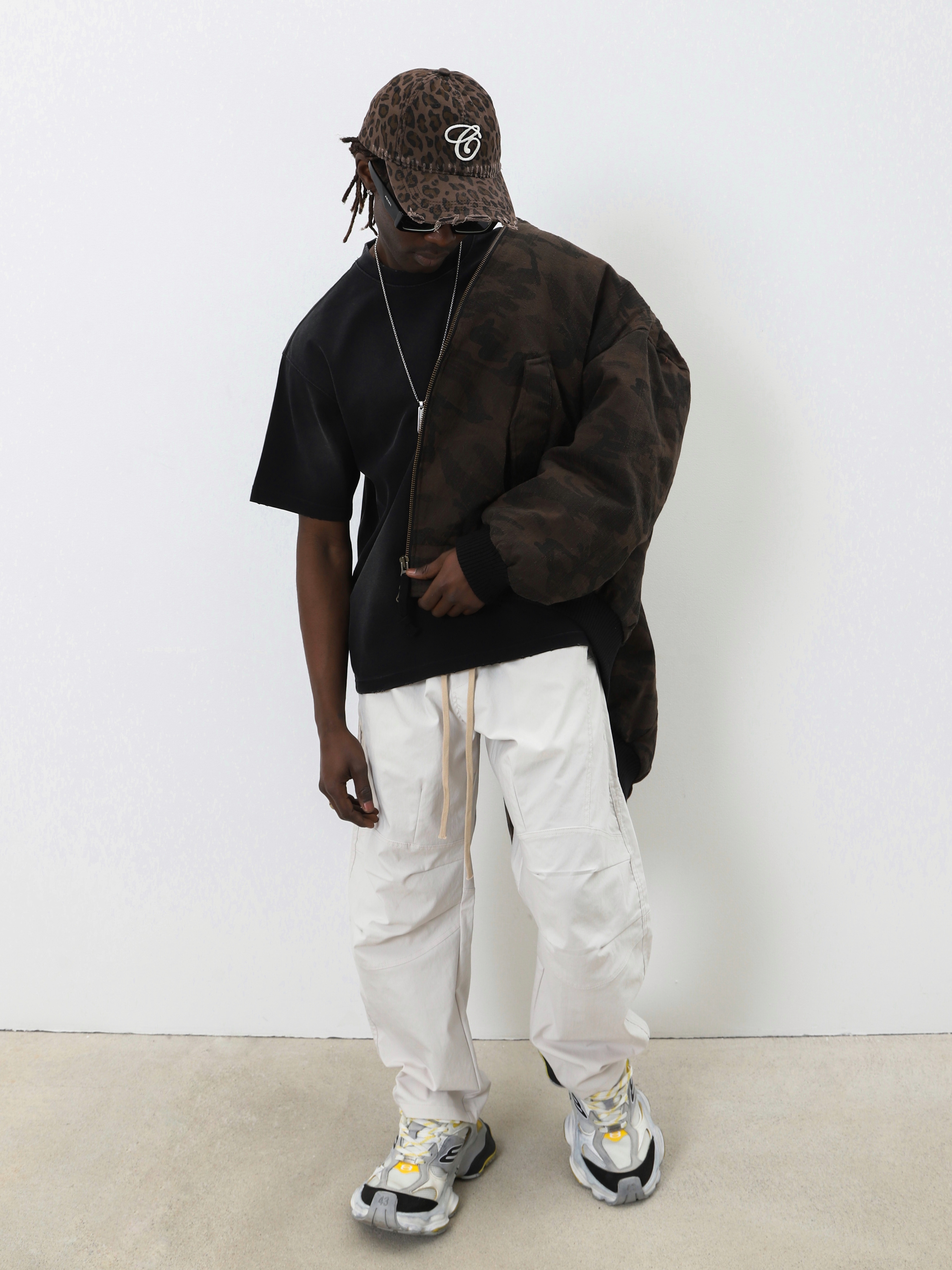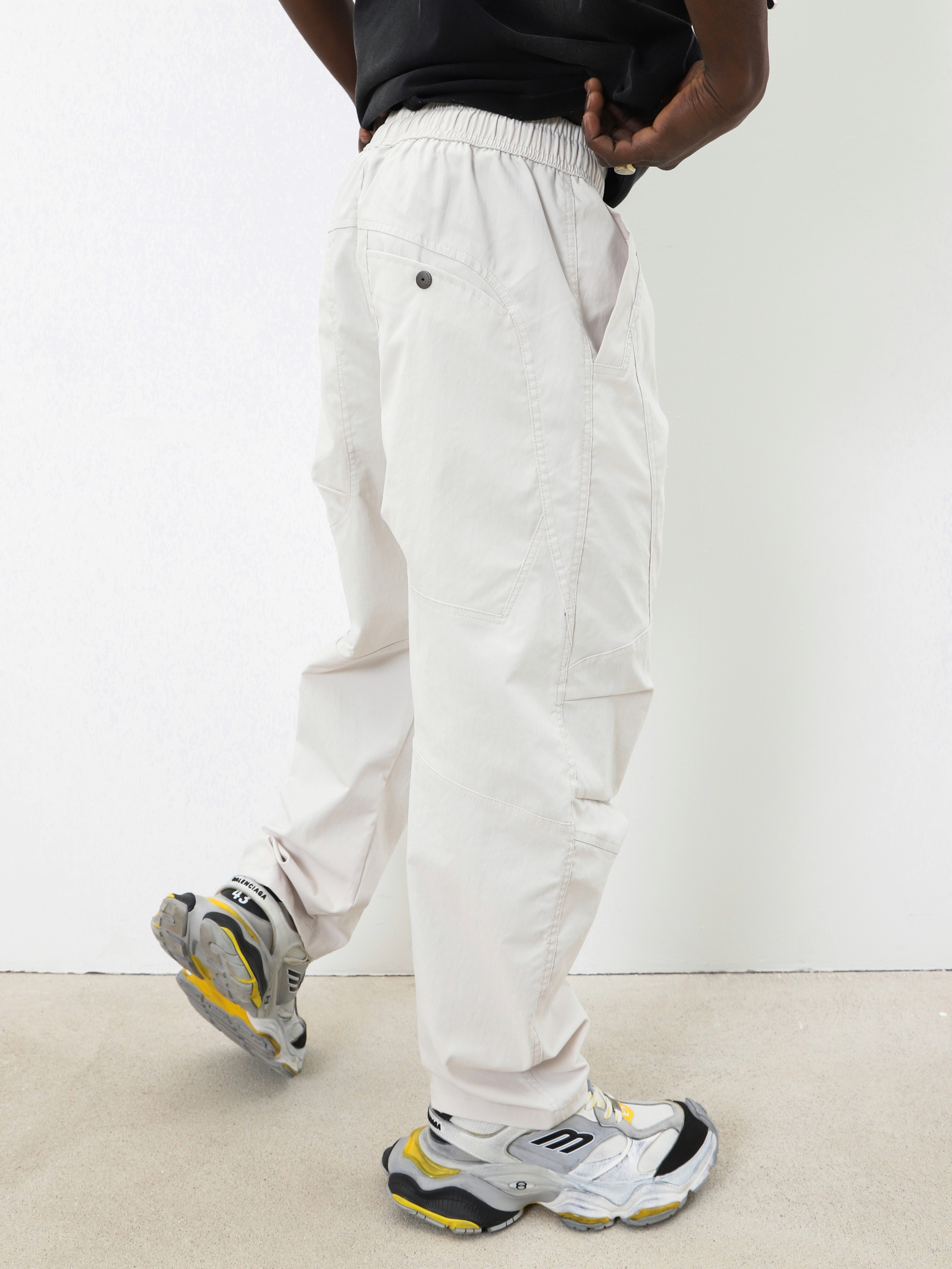 Бежевые брюки с поясом на резинке и контрастным шнурком. Комфортная модель для образов в стиле кэжуал спорт.
