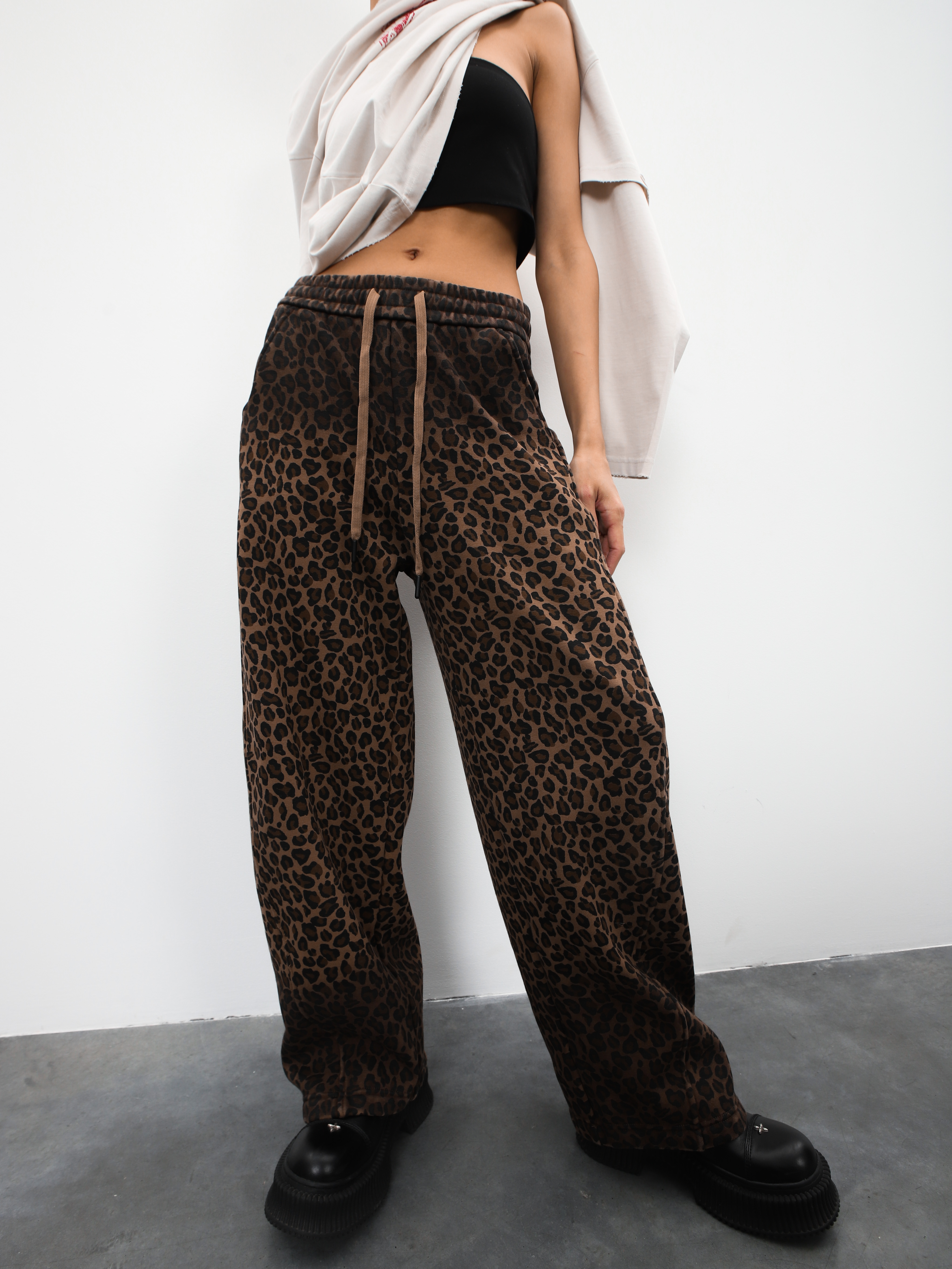 Спортивные брюки с леопардовым принтом для ярких образов. Стильная модель на каждый день.
