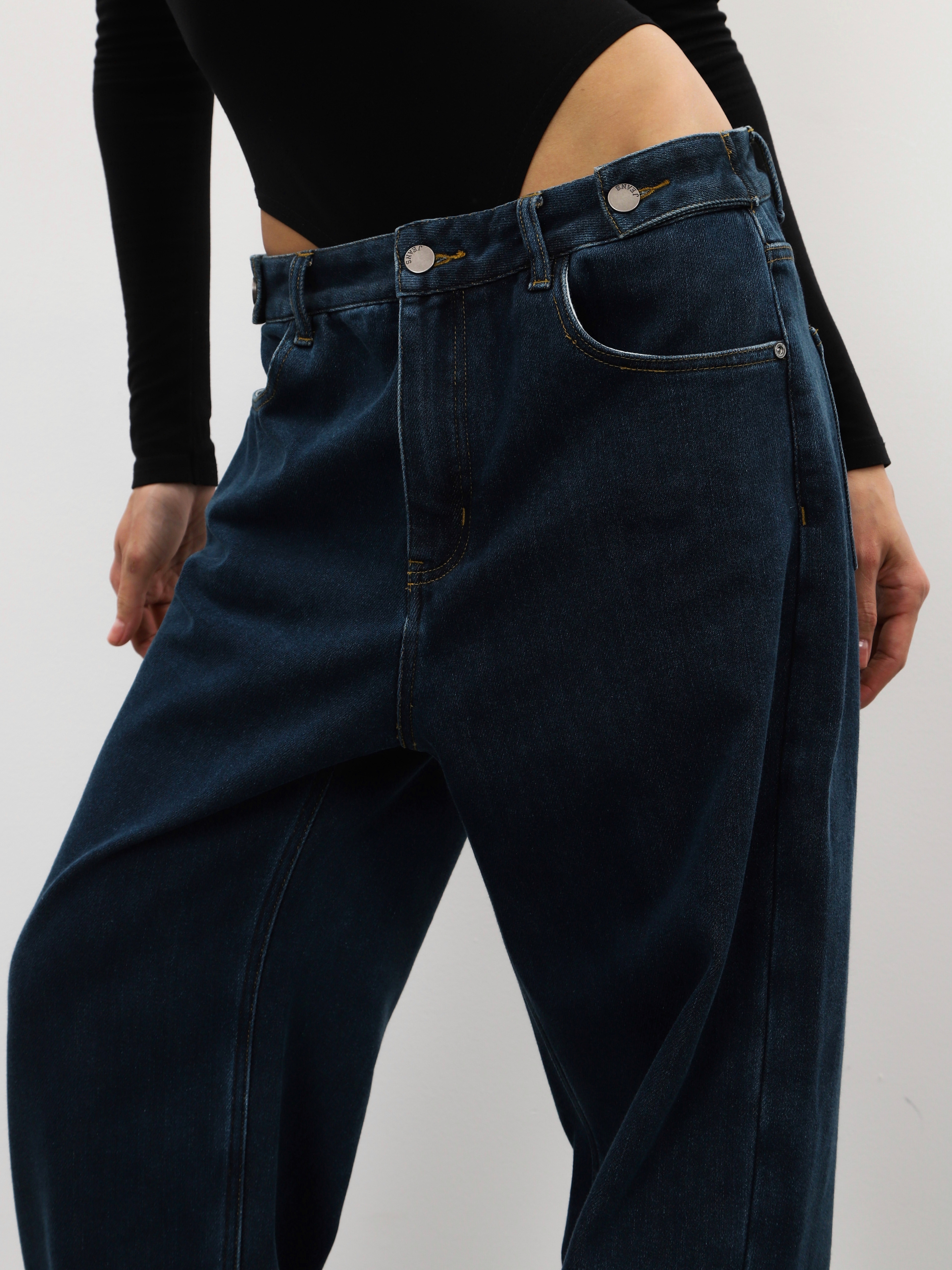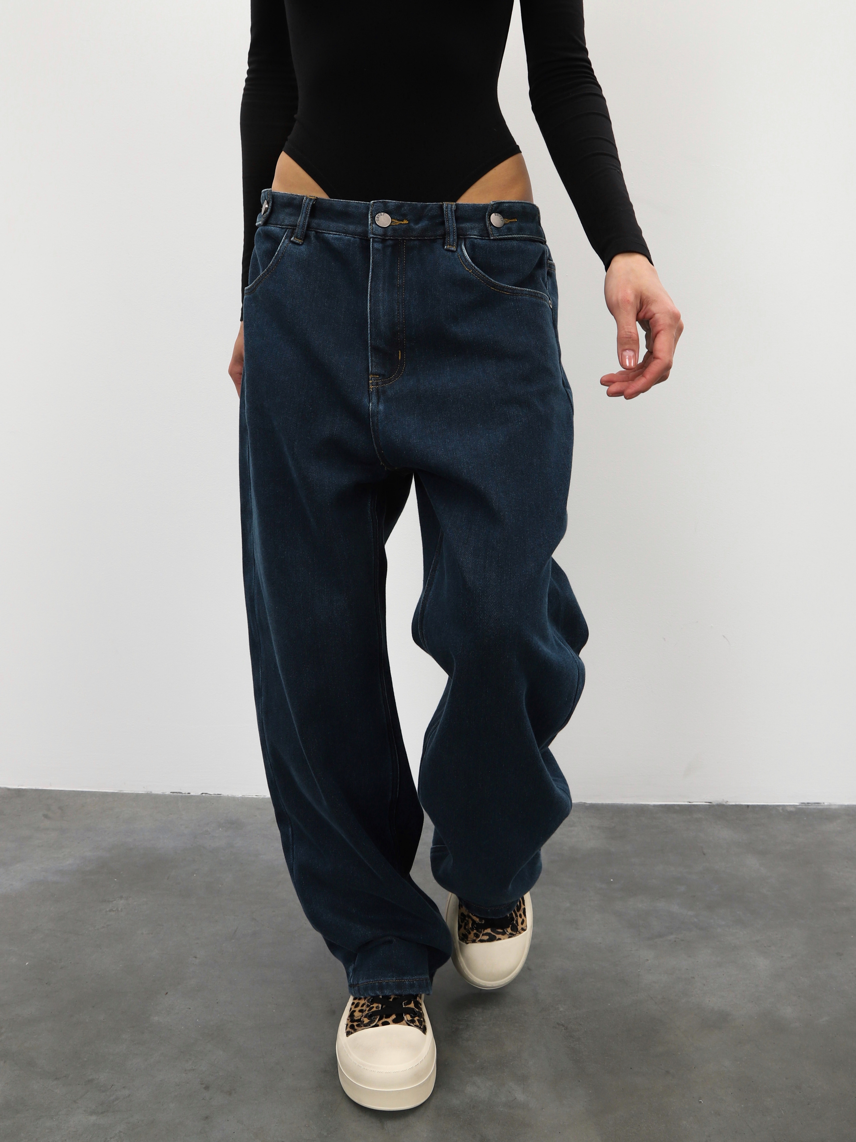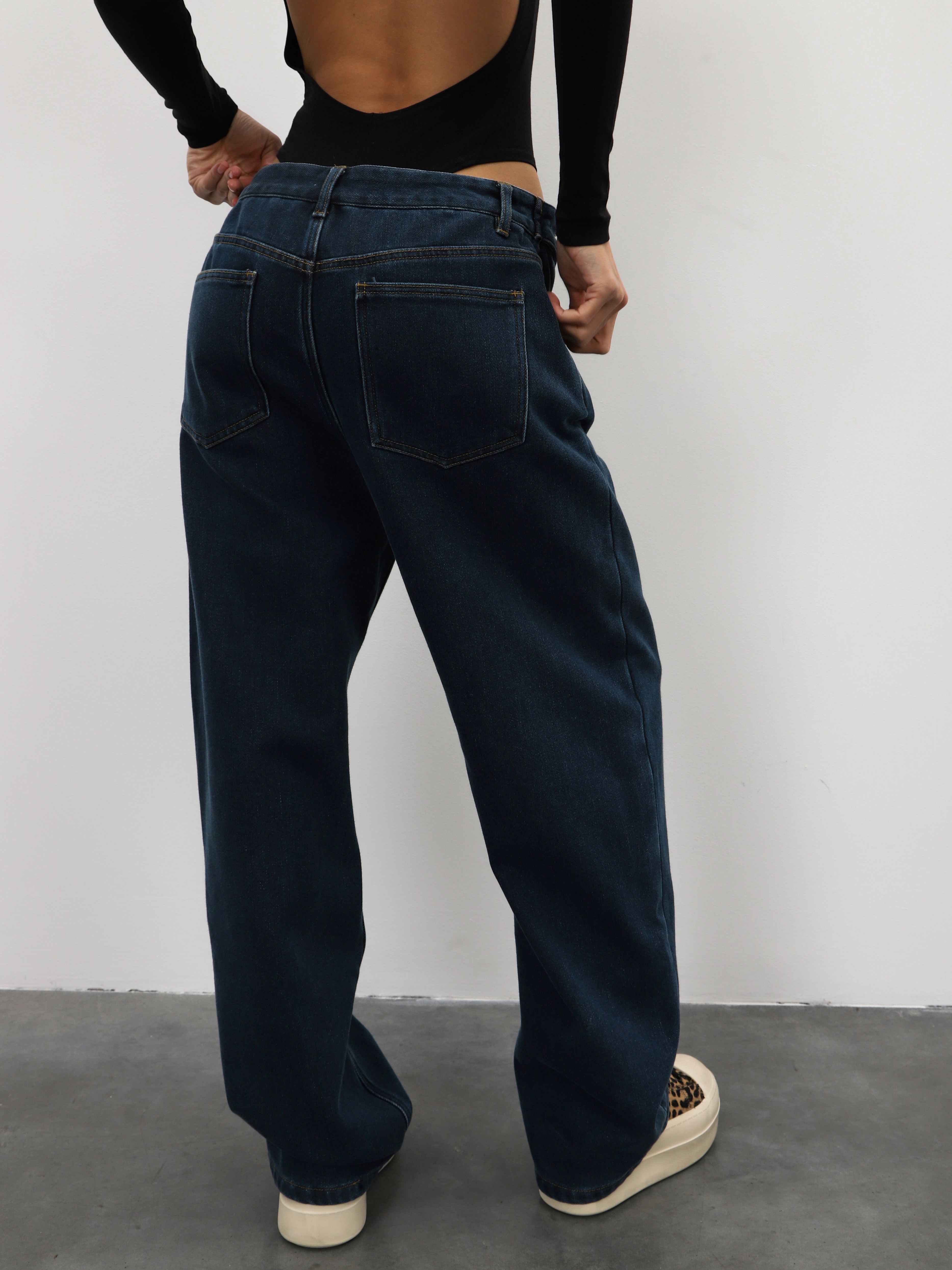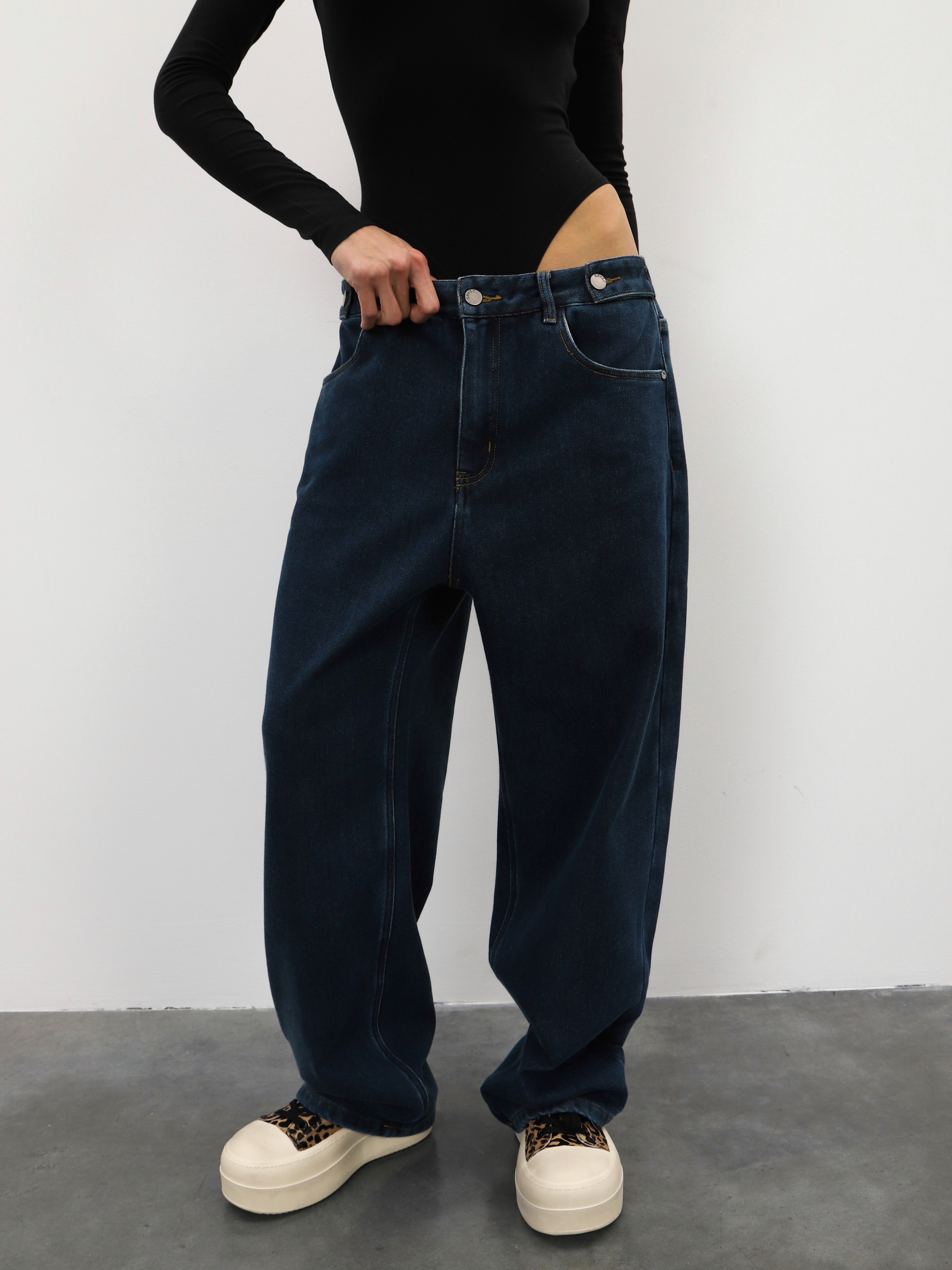 Темно-синие джинсы широкого кроя для стильных образов на каждый день.