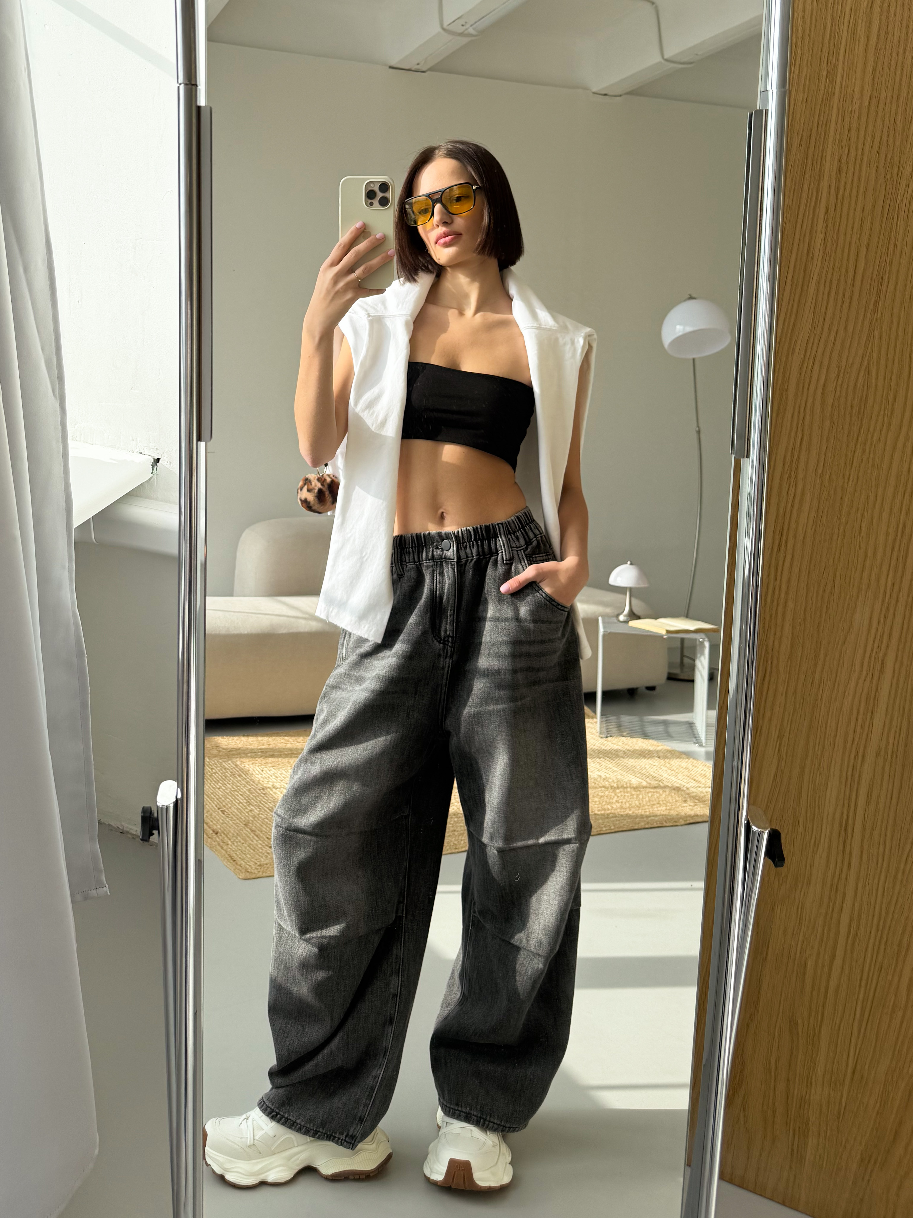 Широкие женские джинсы черного цвета. Модель оверсайз для создания стильных образов на каждый день.
