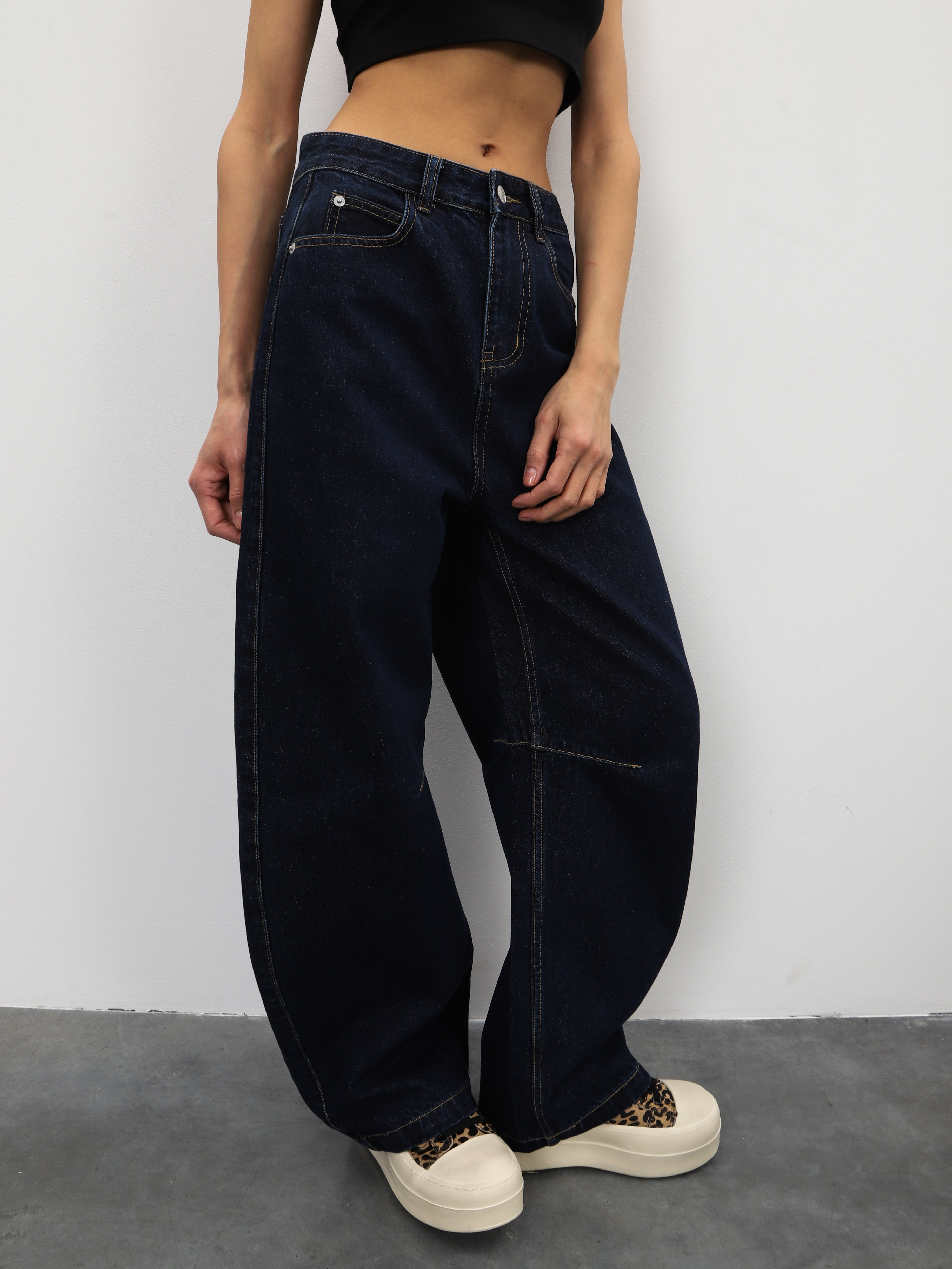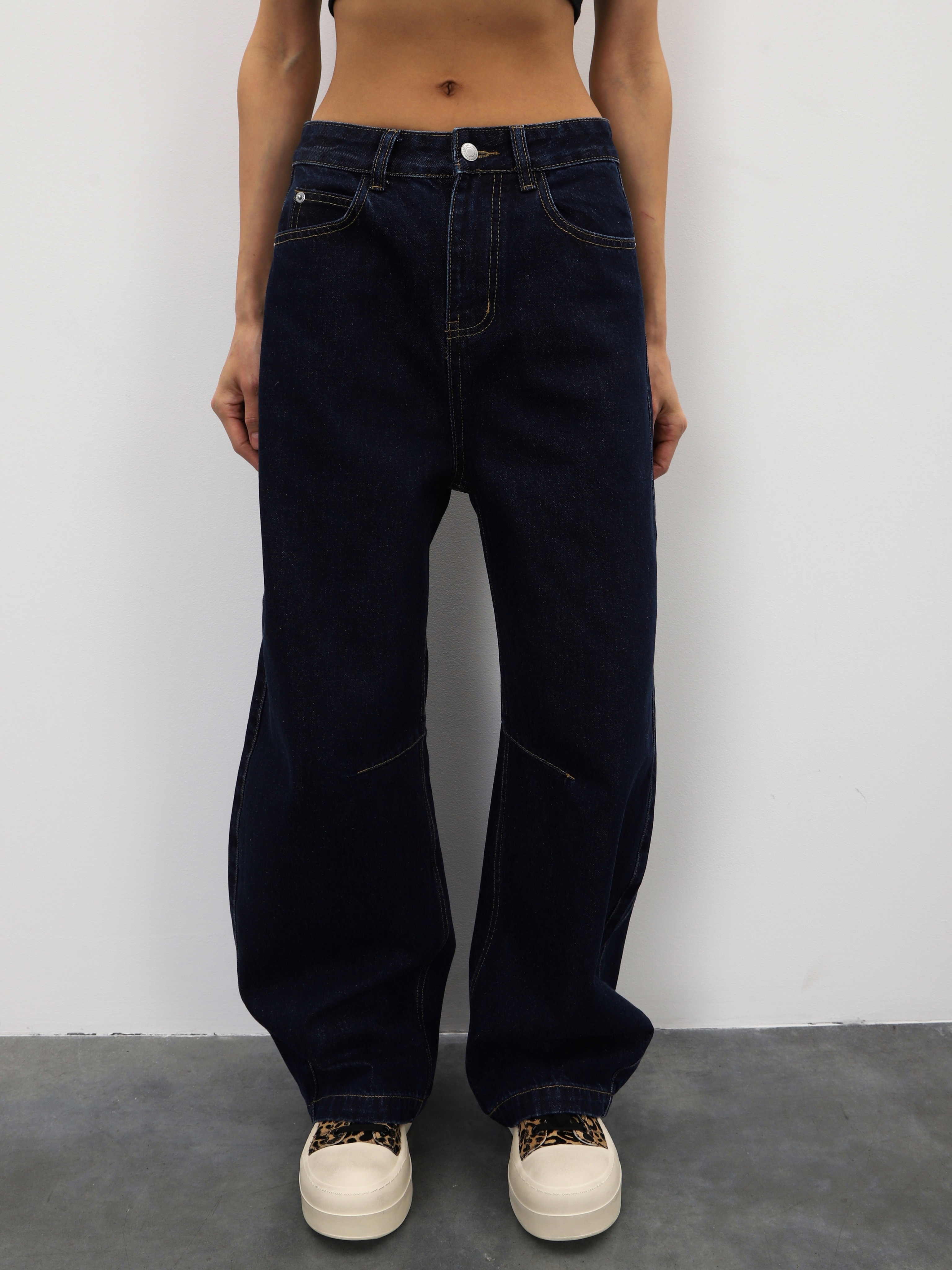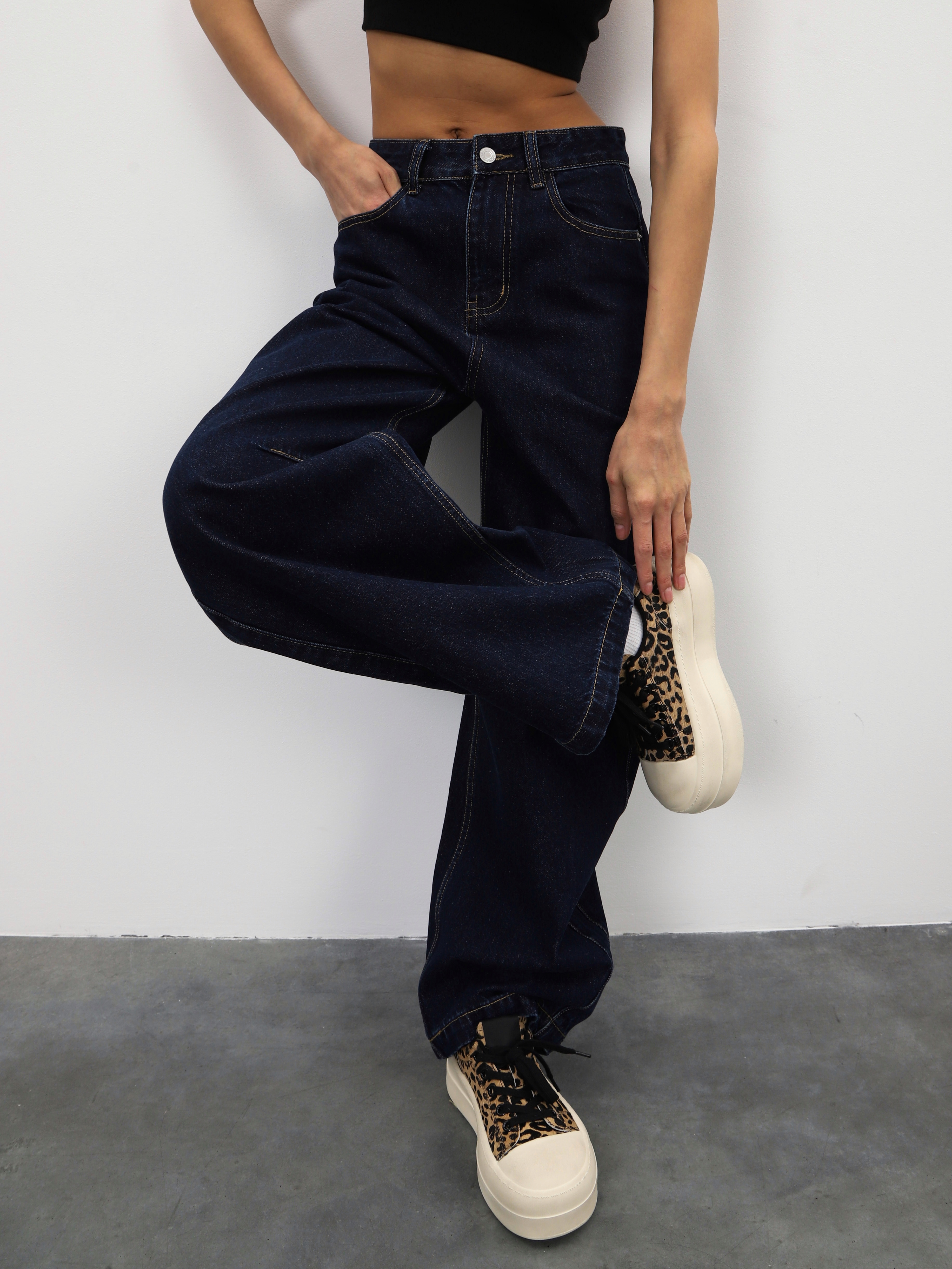 Темно-синие джинсы широкого кроя для стильных образов на каждый день.