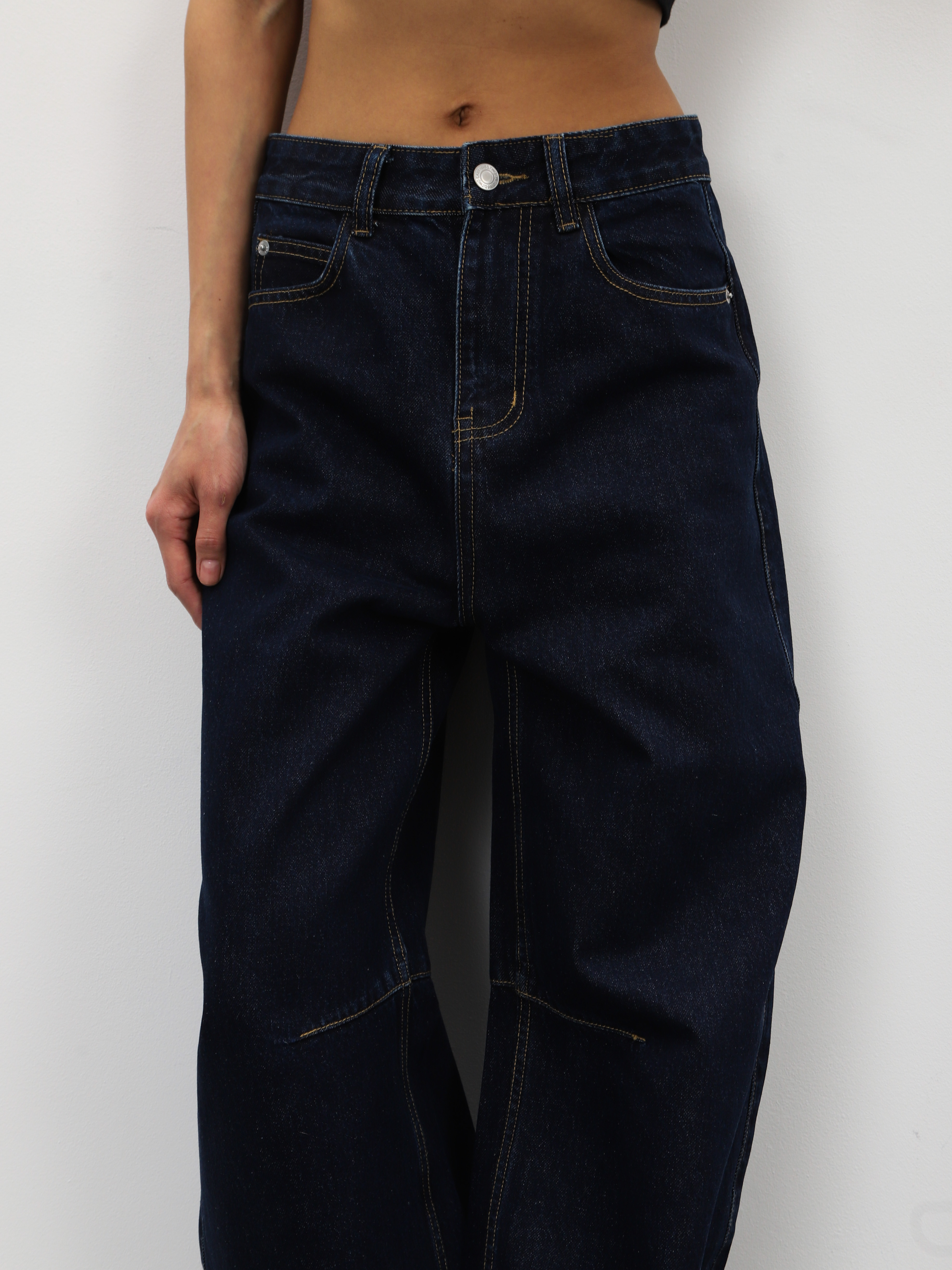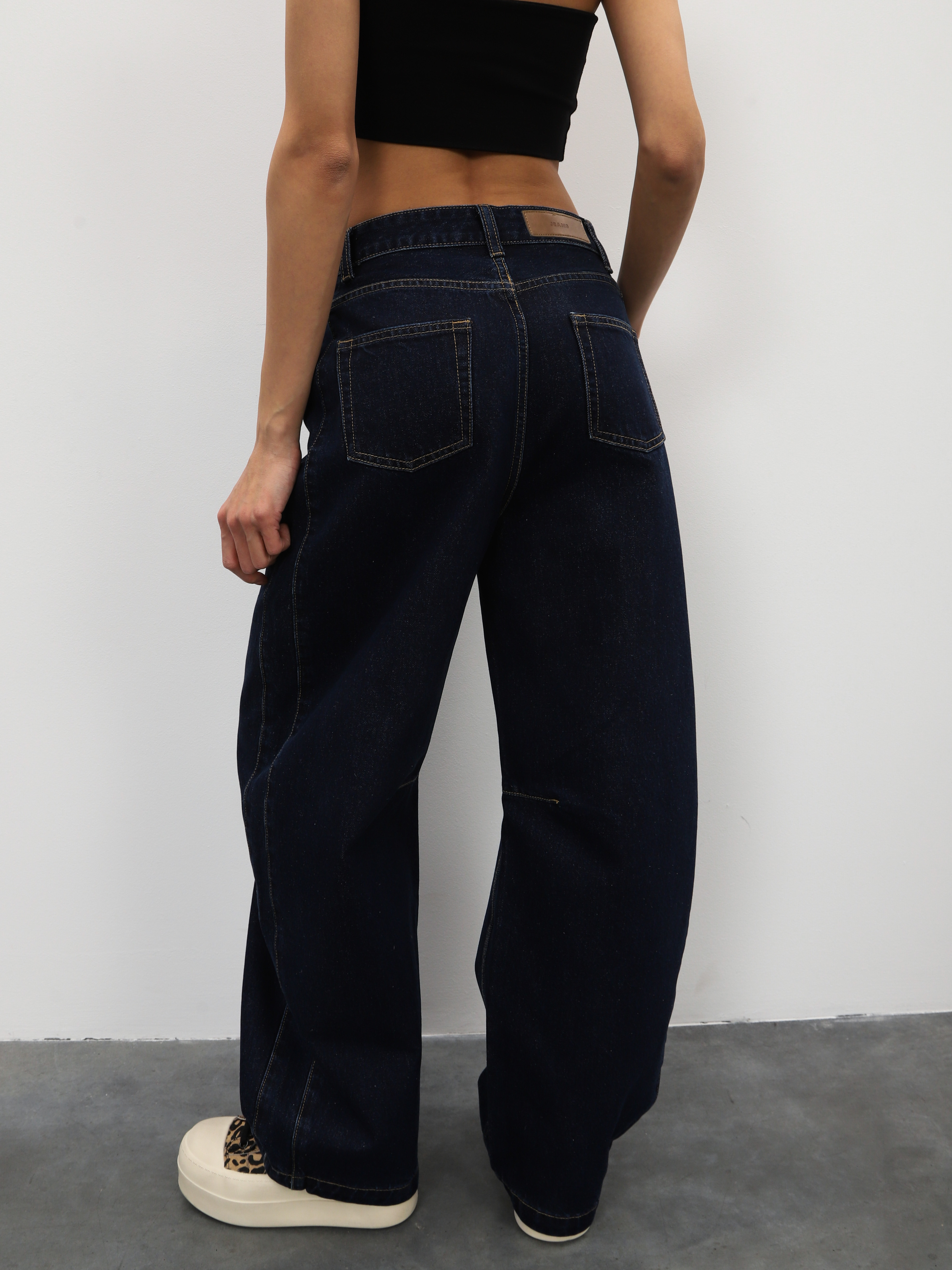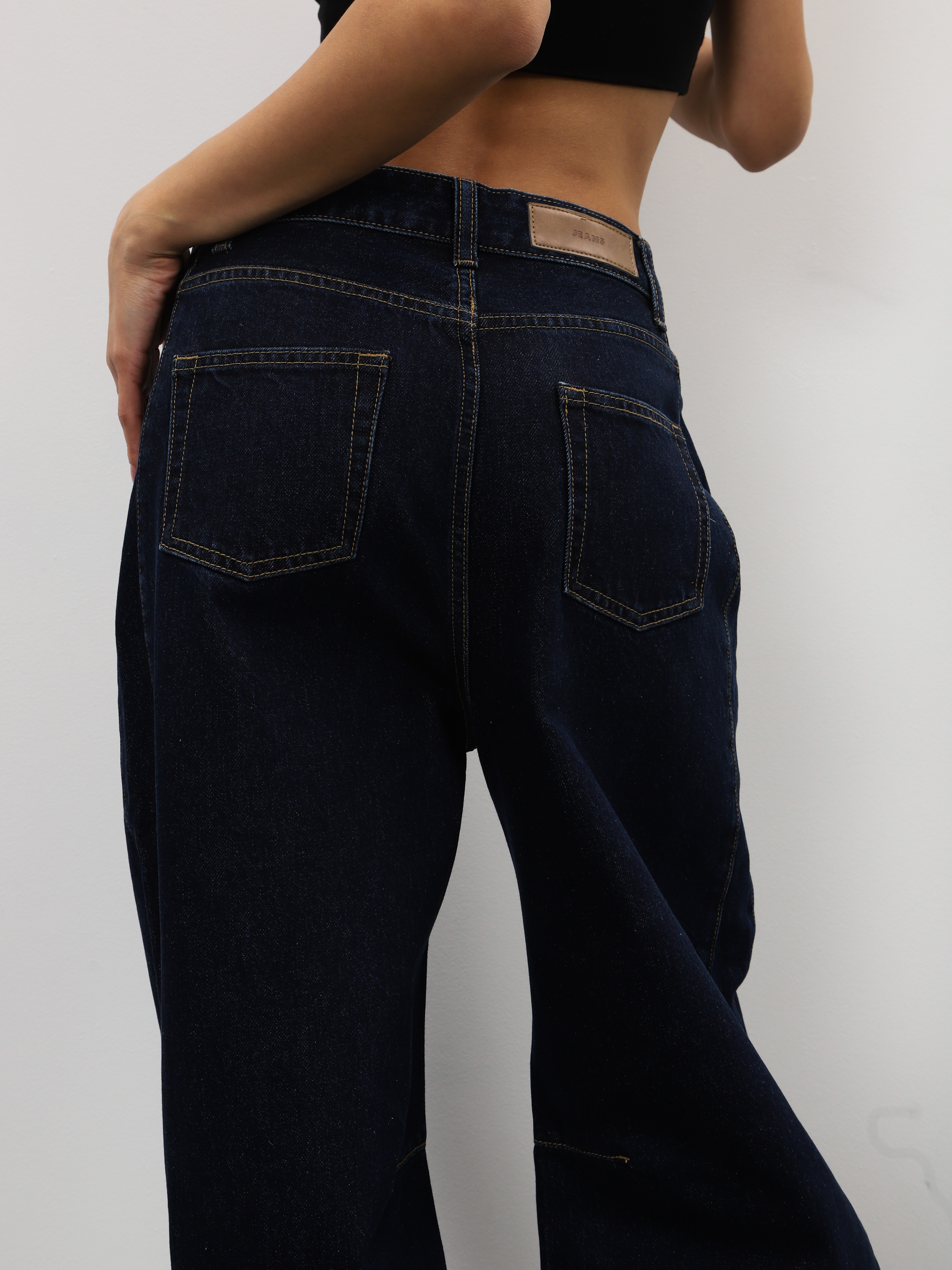 Темно-синие джинсы широкого кроя для стильных образов на каждый день.