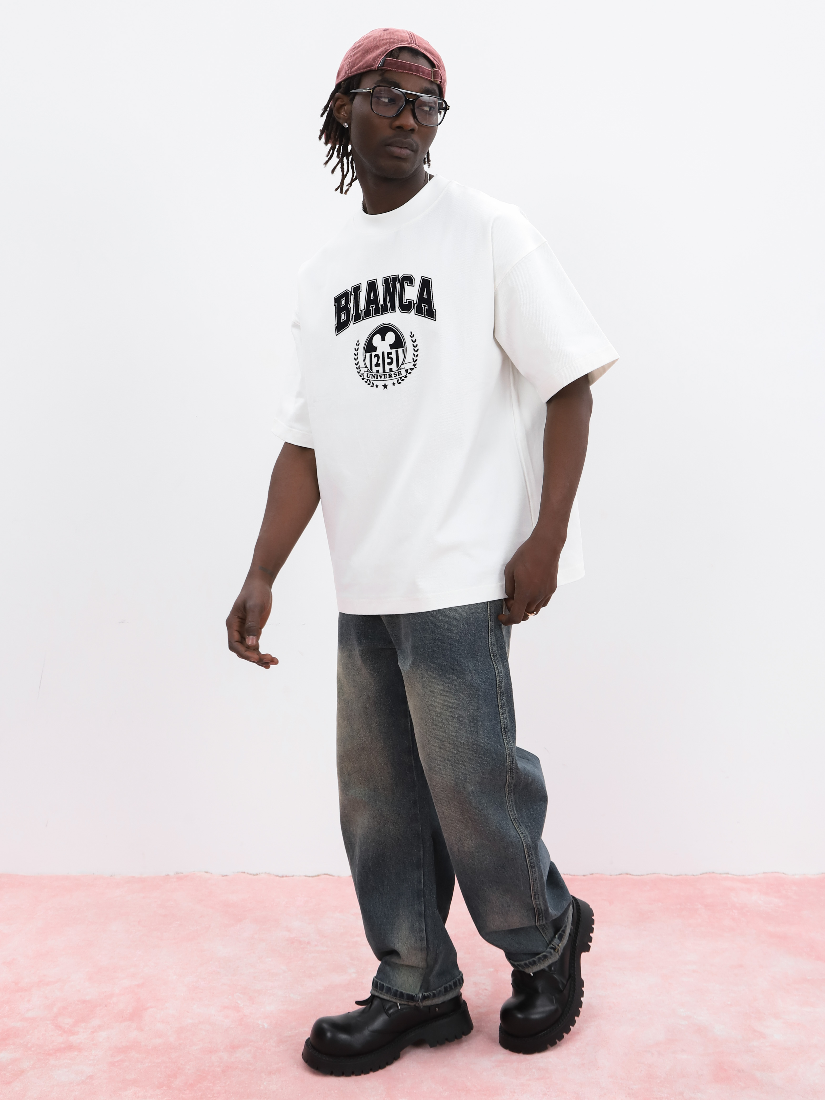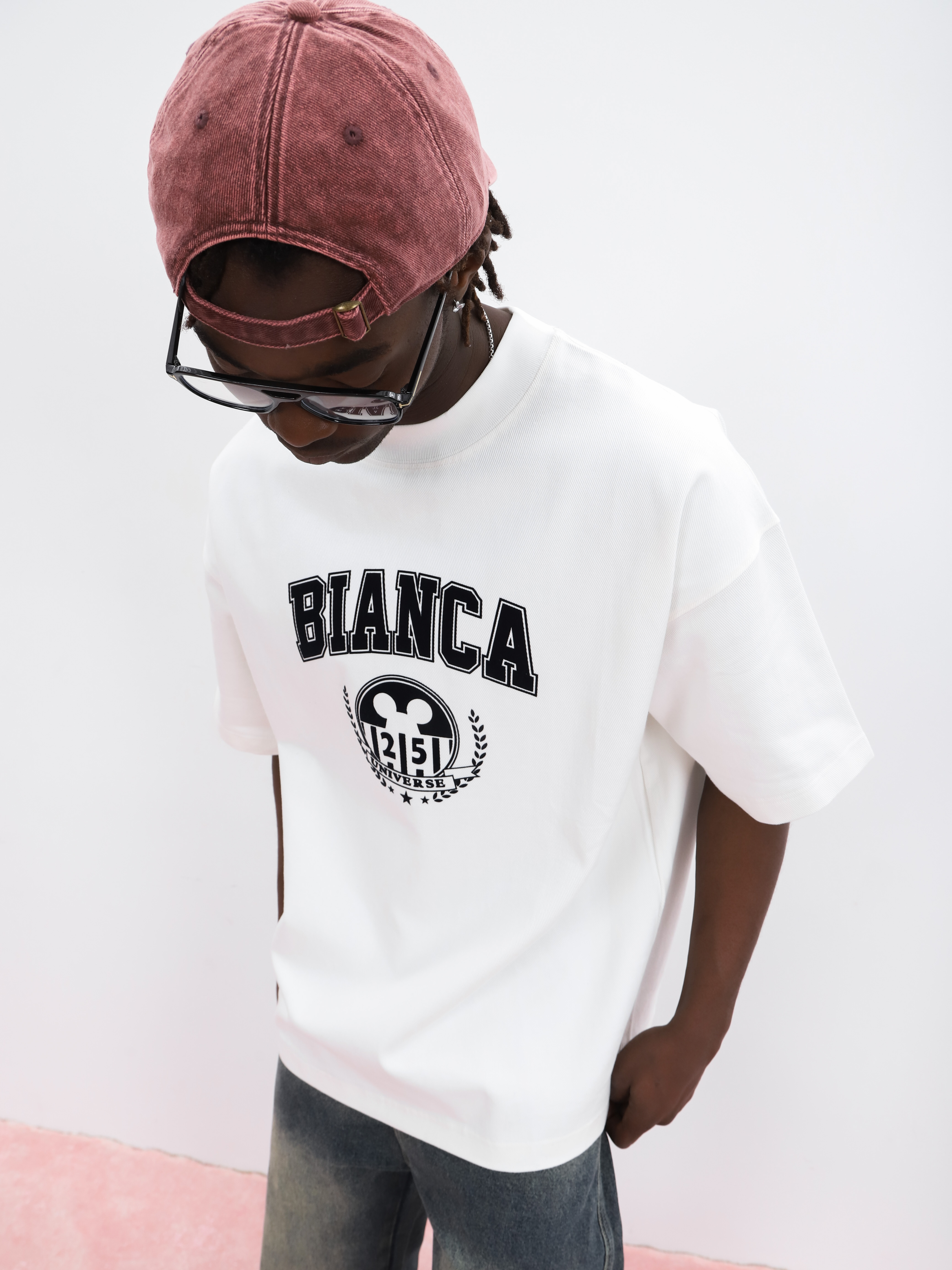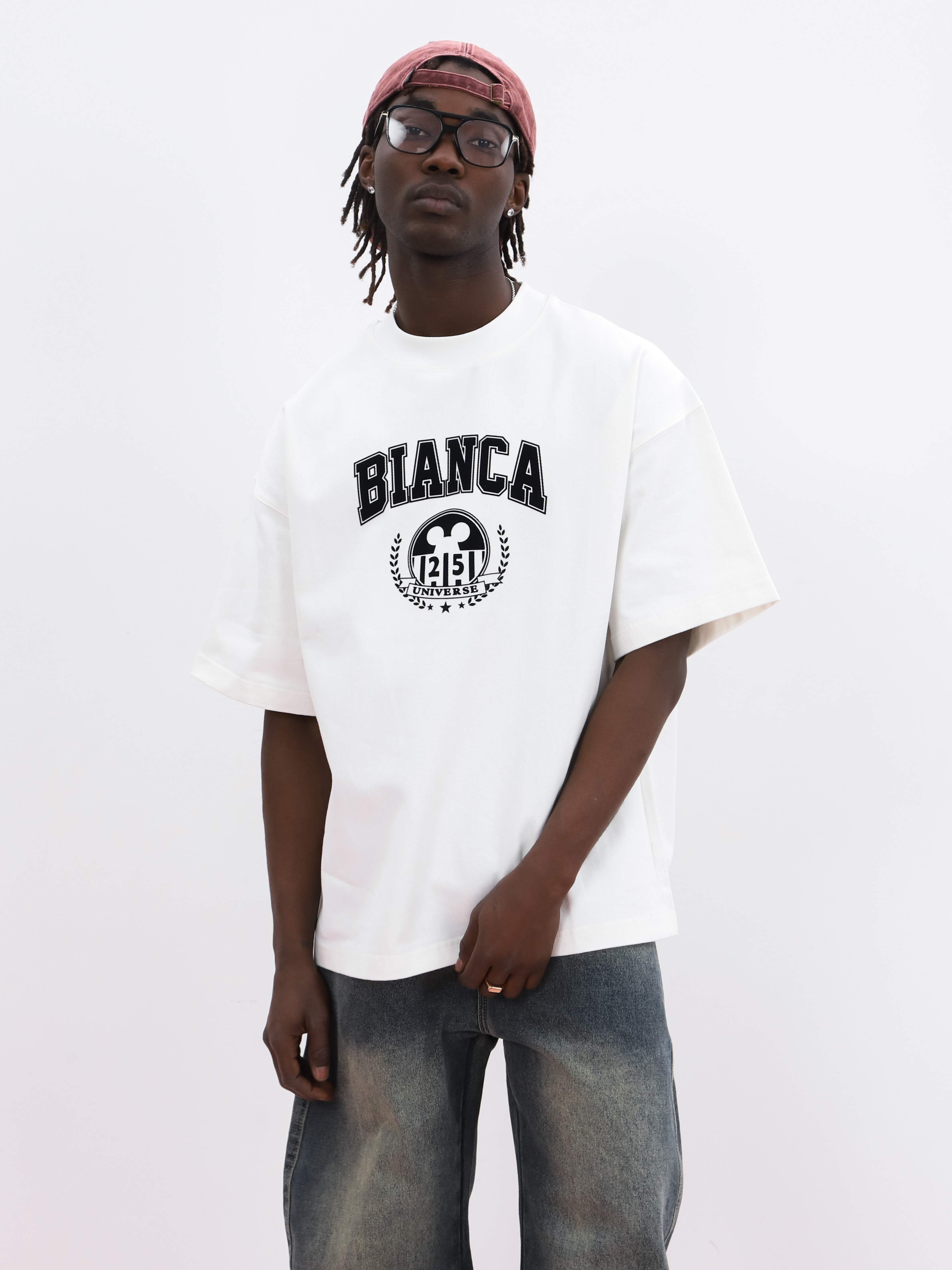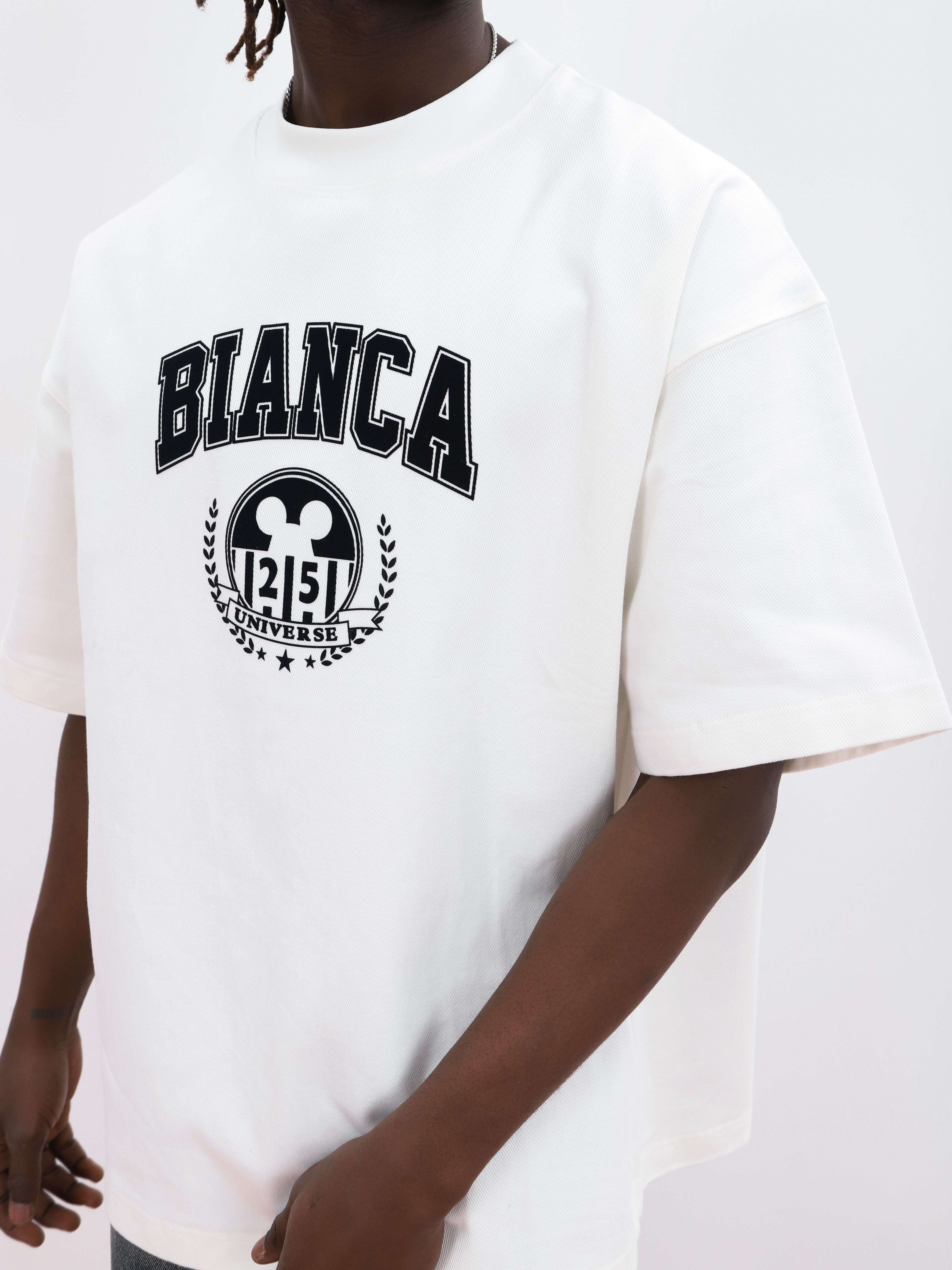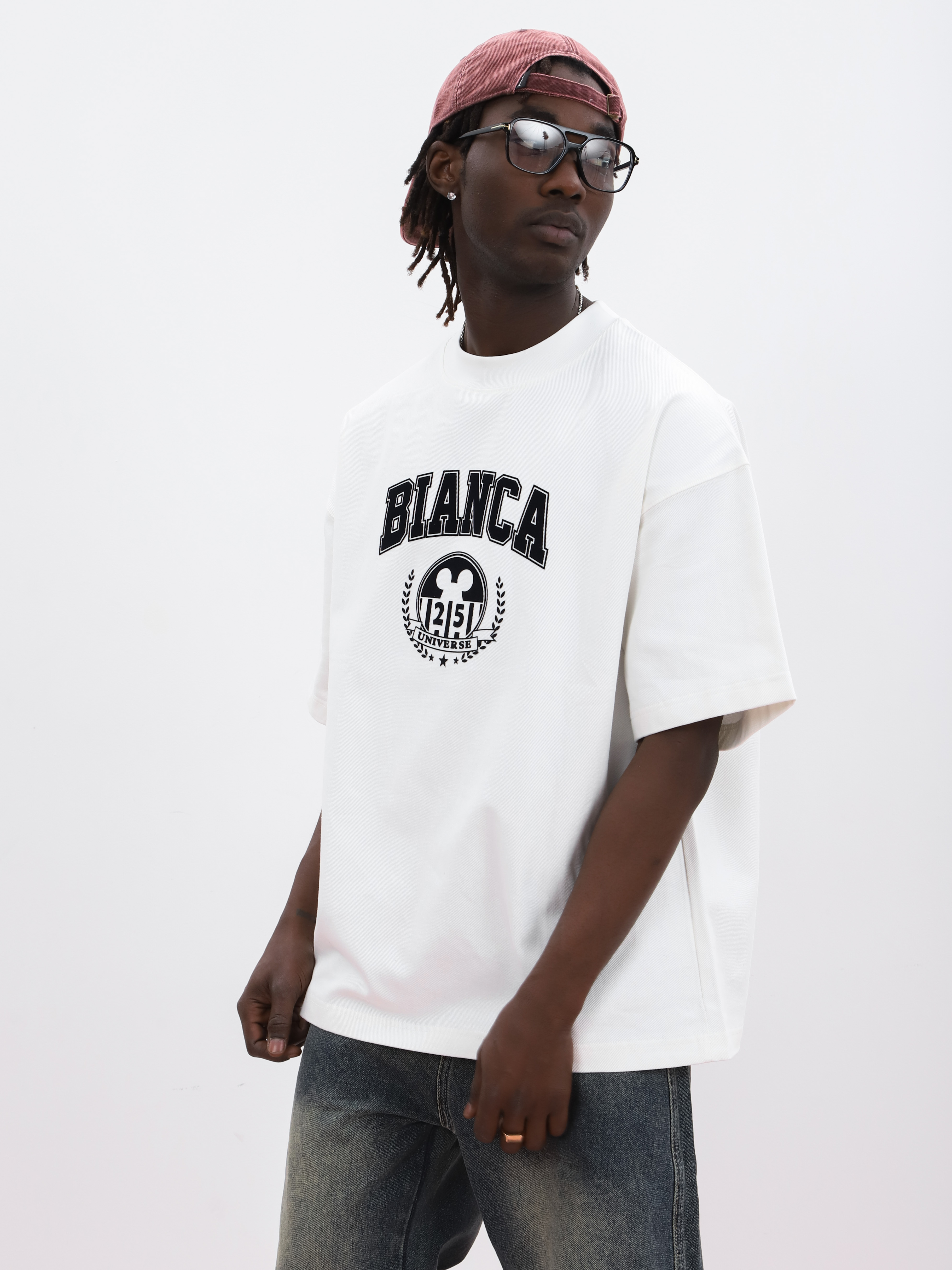 Белая мужская футболка оверсайз. Модель с принтом для создания стильных look'ов.
