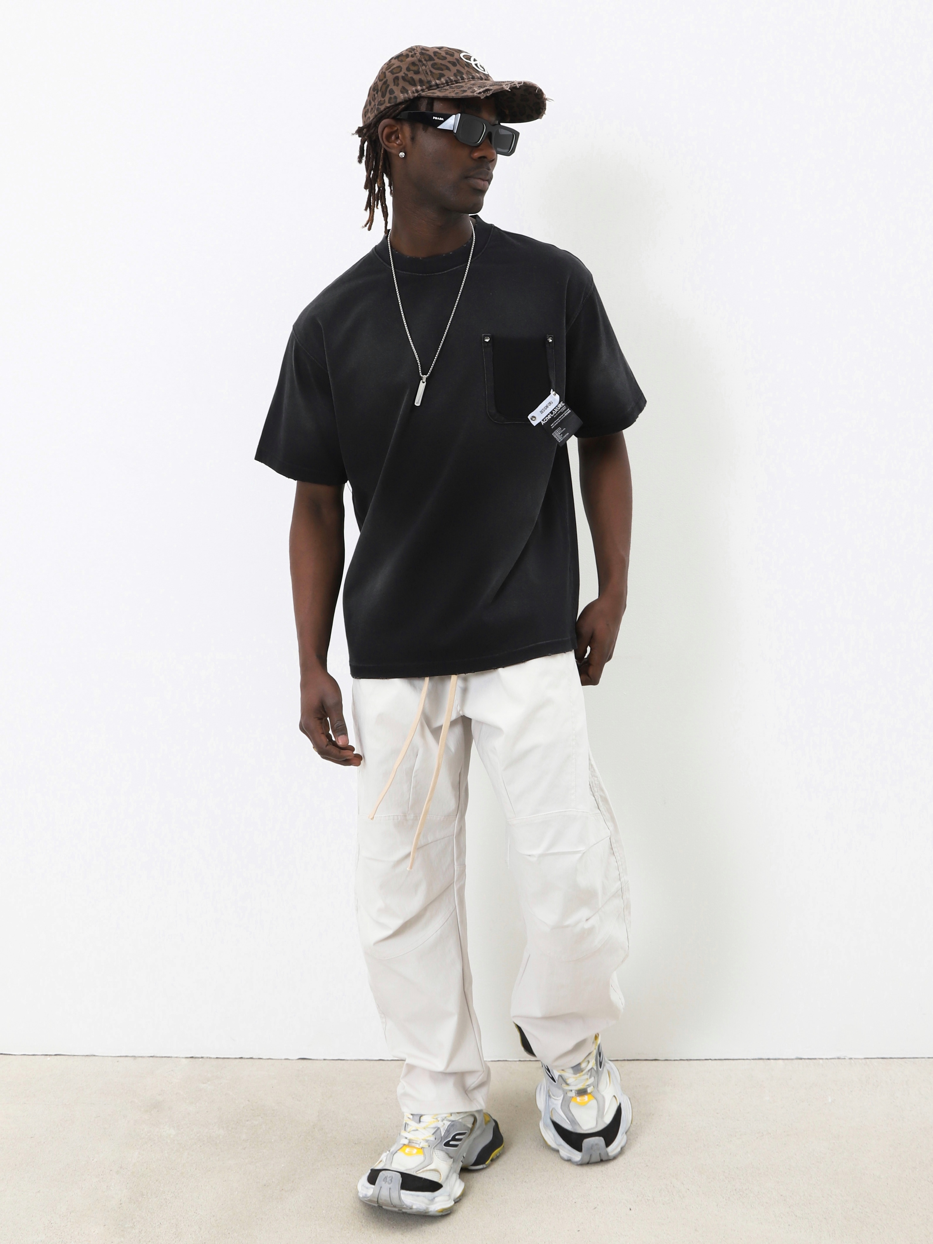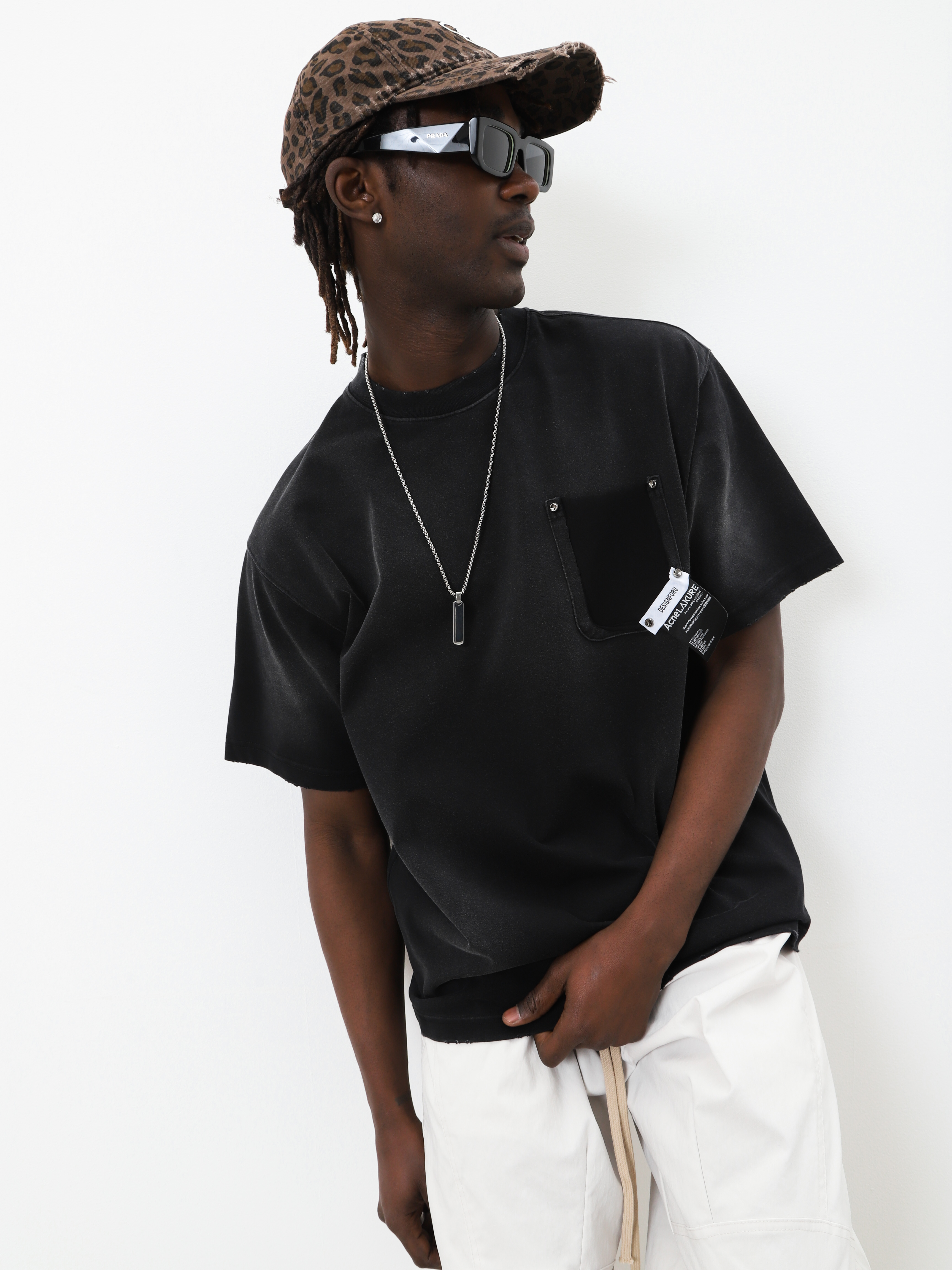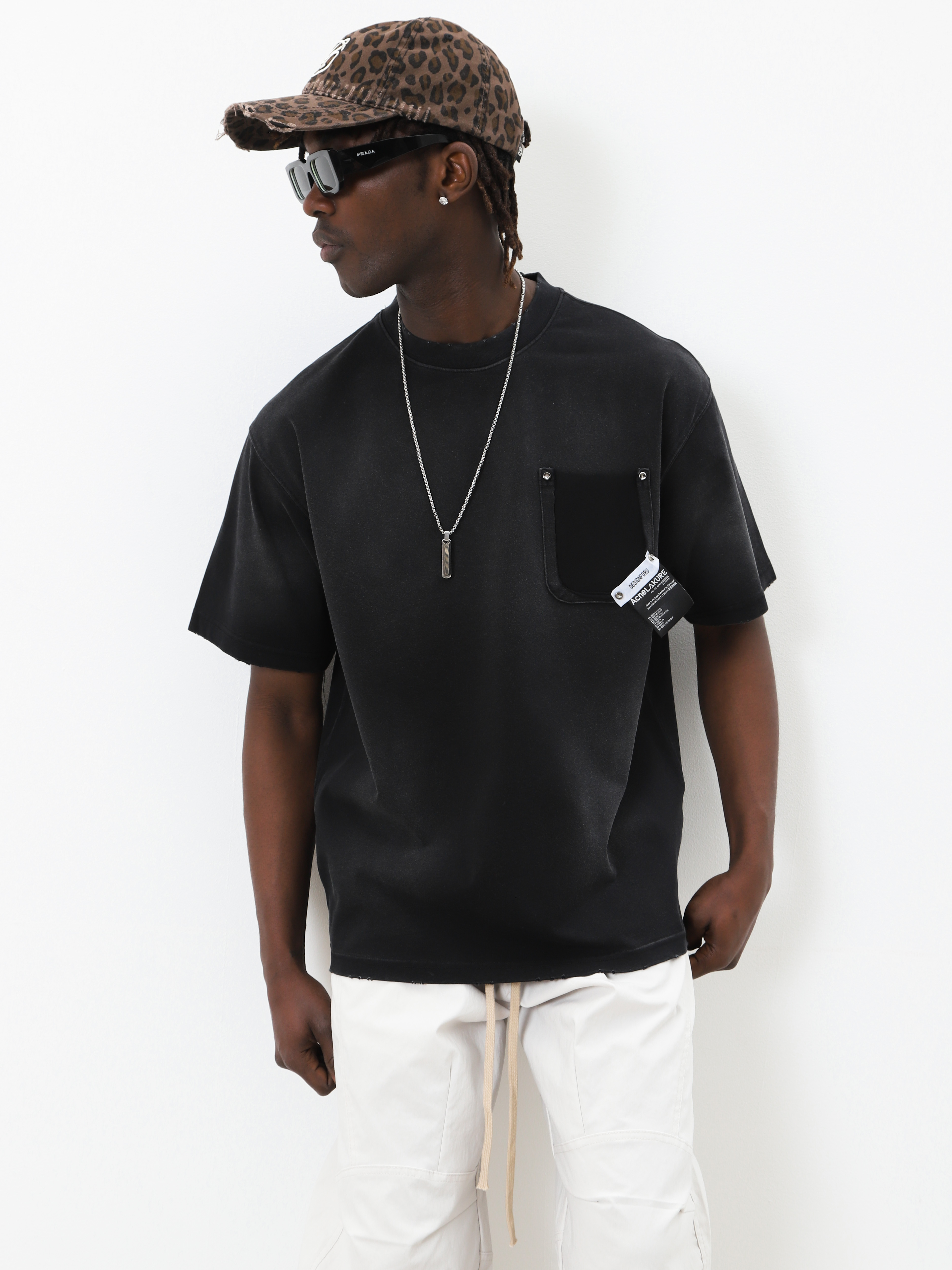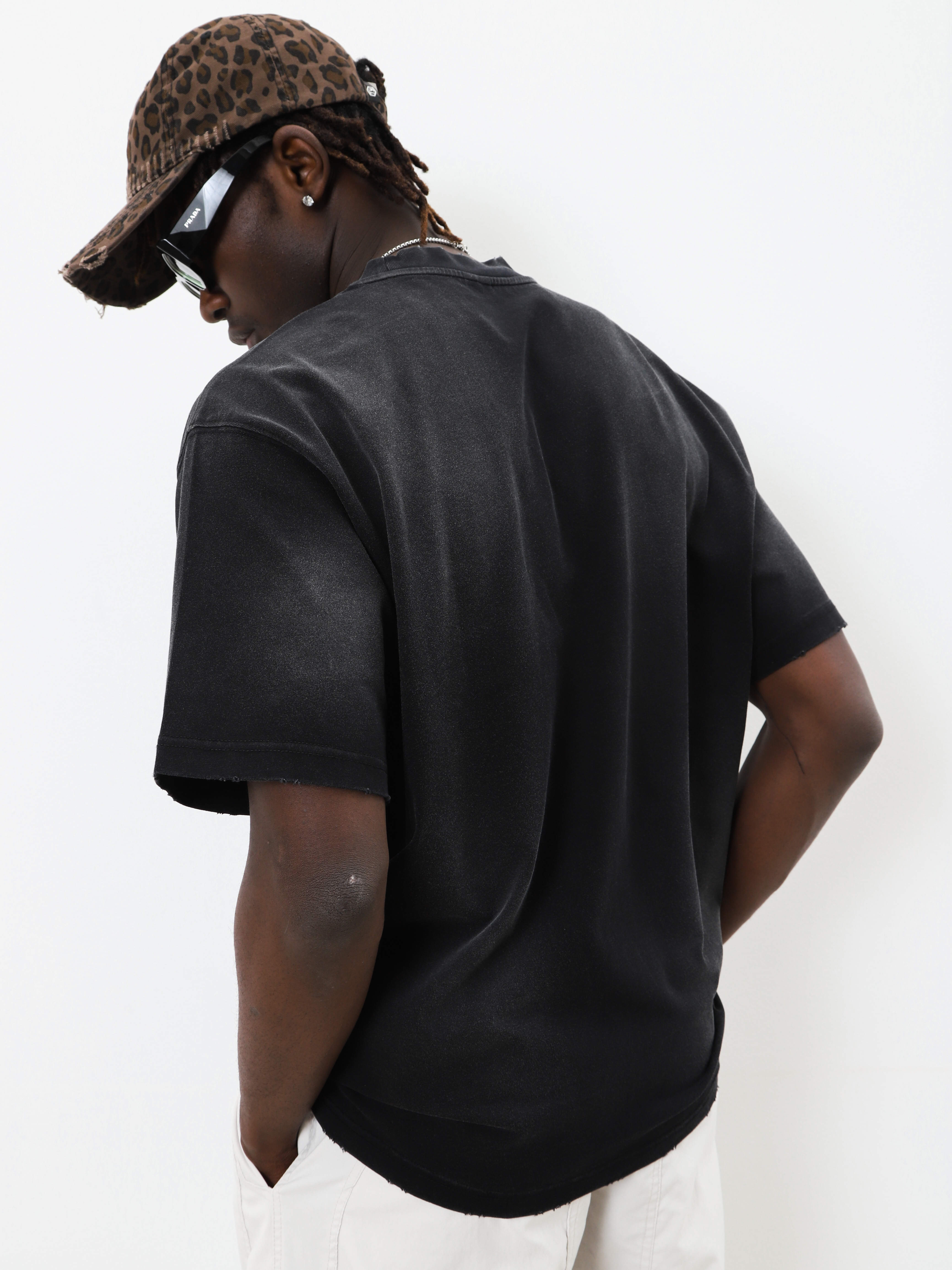 Черная мужская футболка оверсайз. Модель с декором и эффектом выцветшей ткани для создания стильных look'ов.