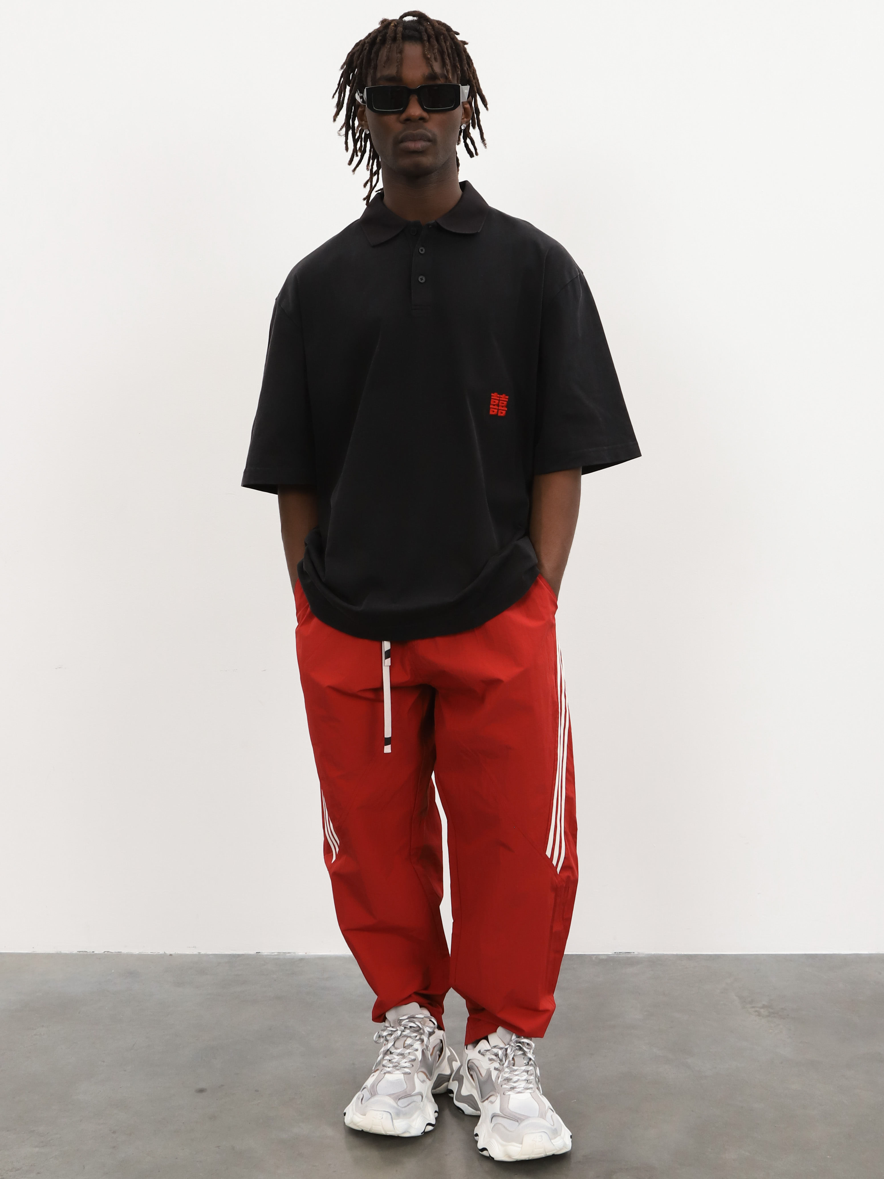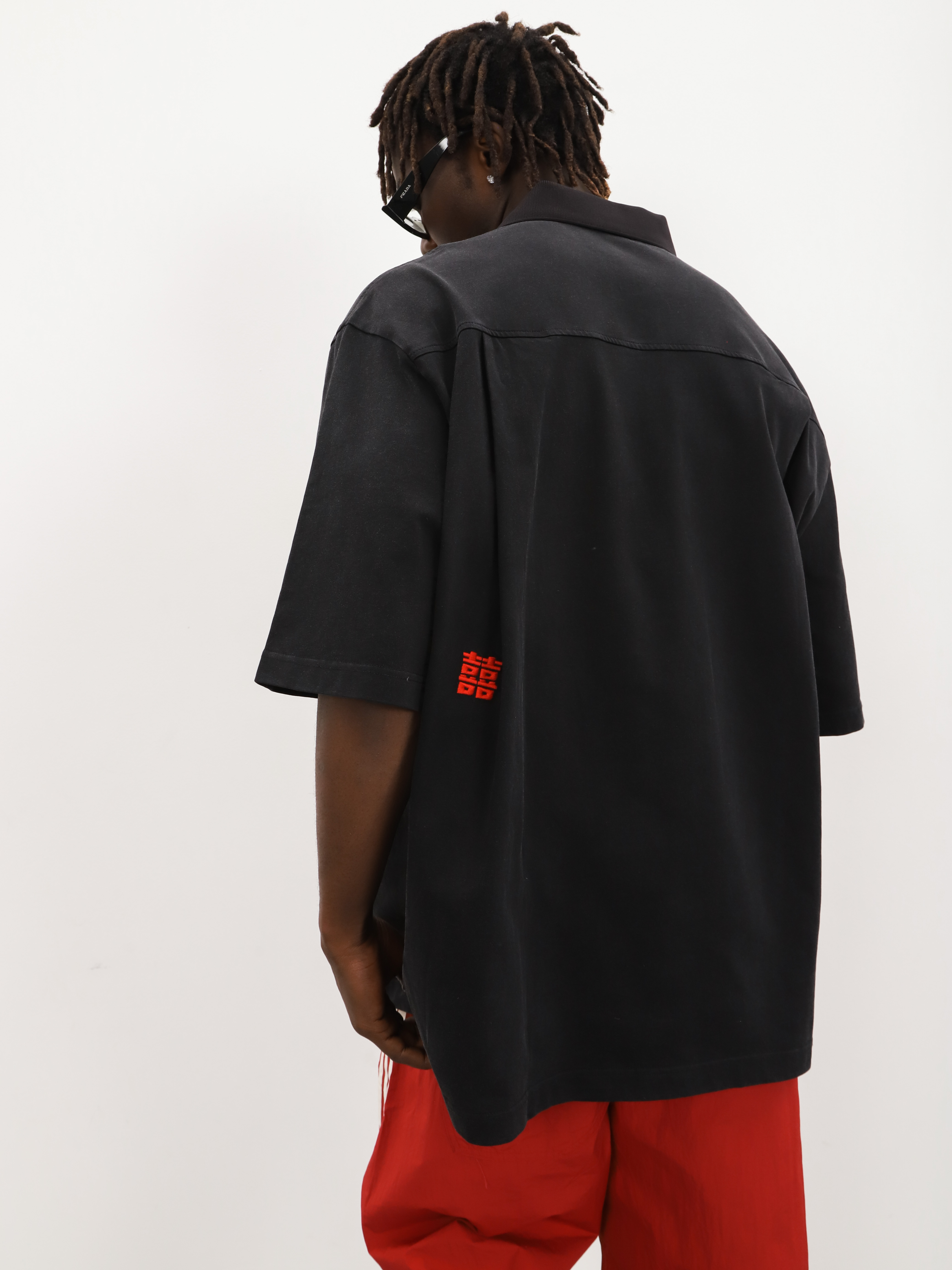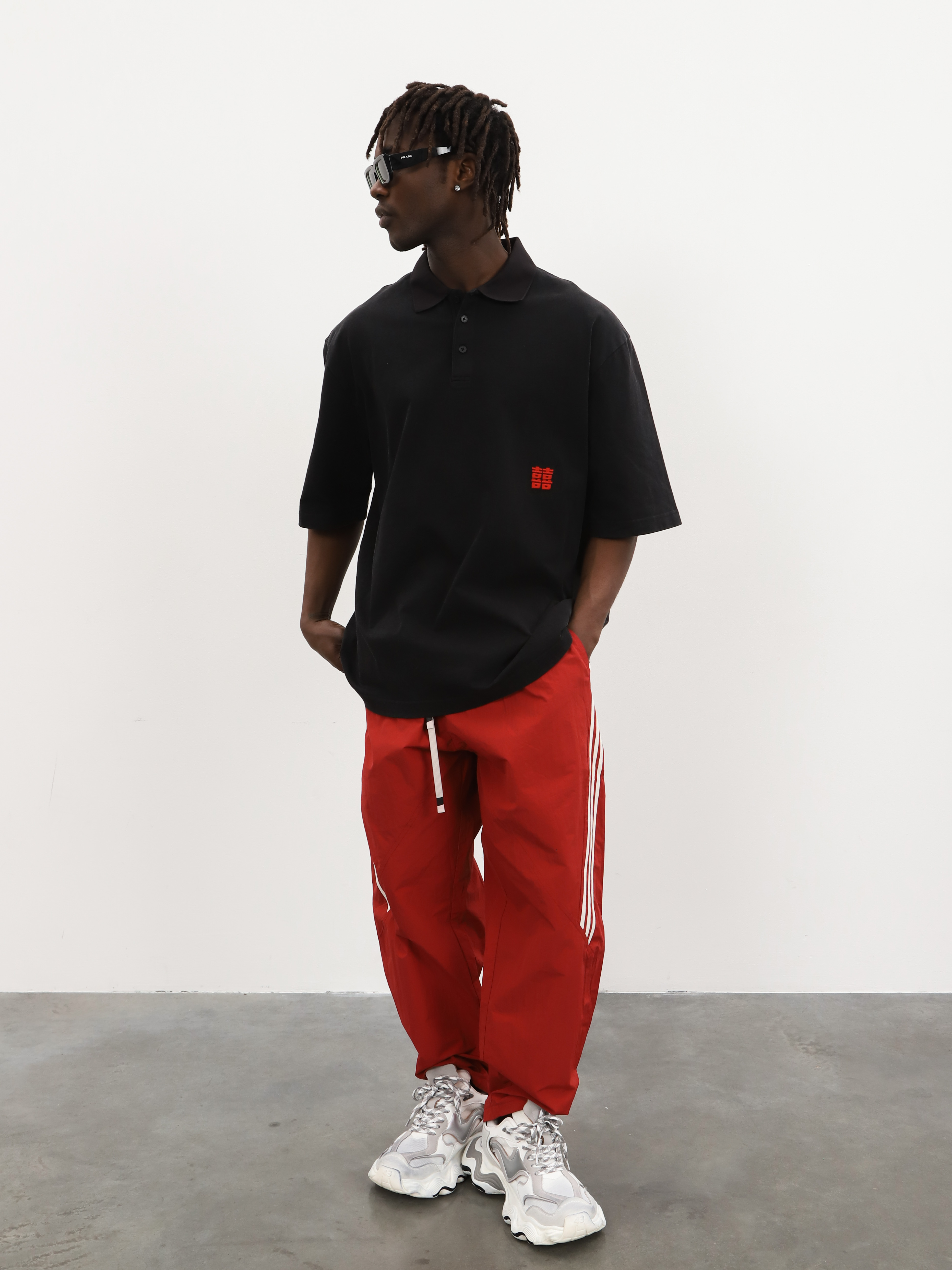 Черная мужская футболка поло с контрастной вышивкой для модных образов в стиле casual.