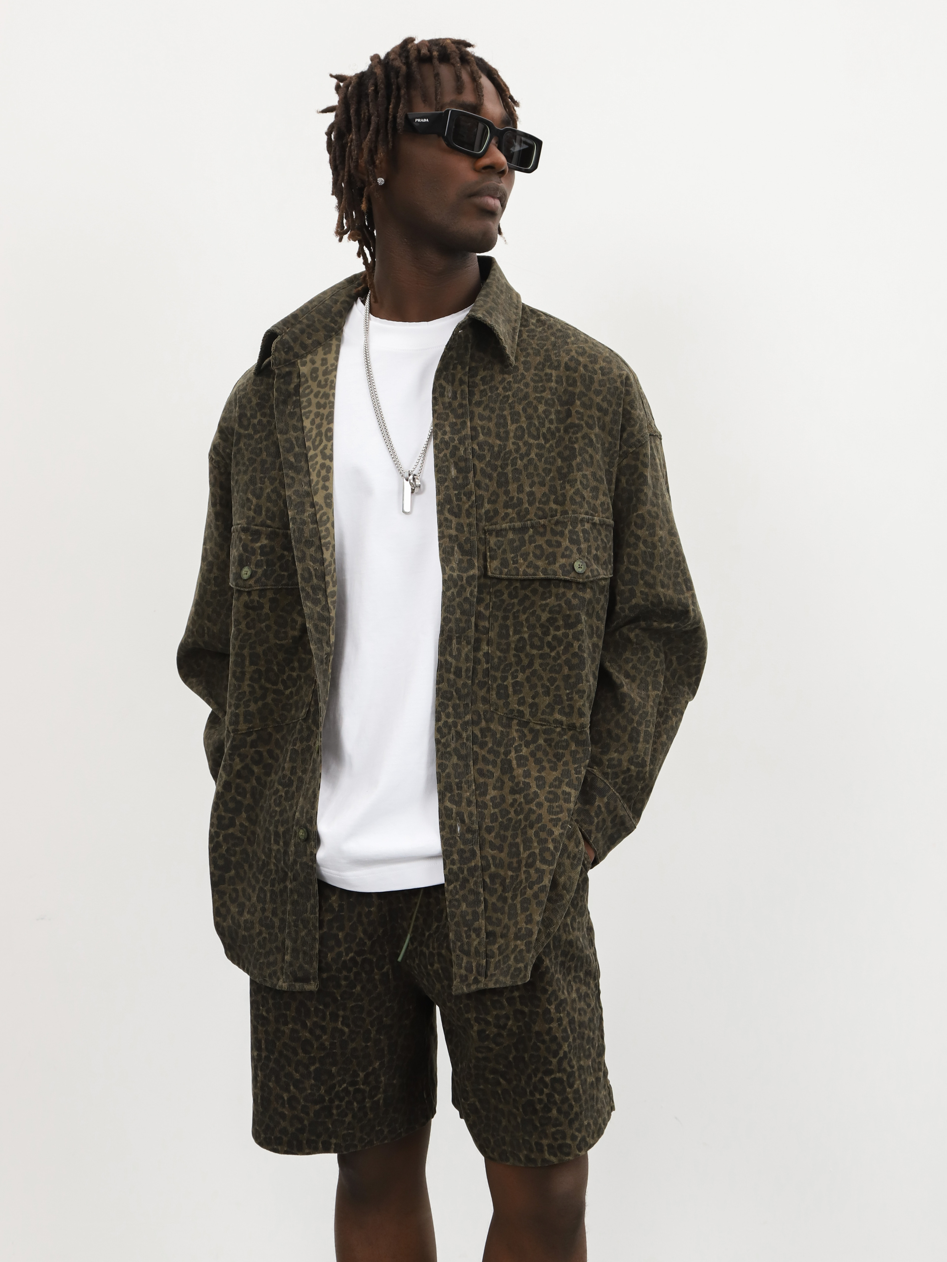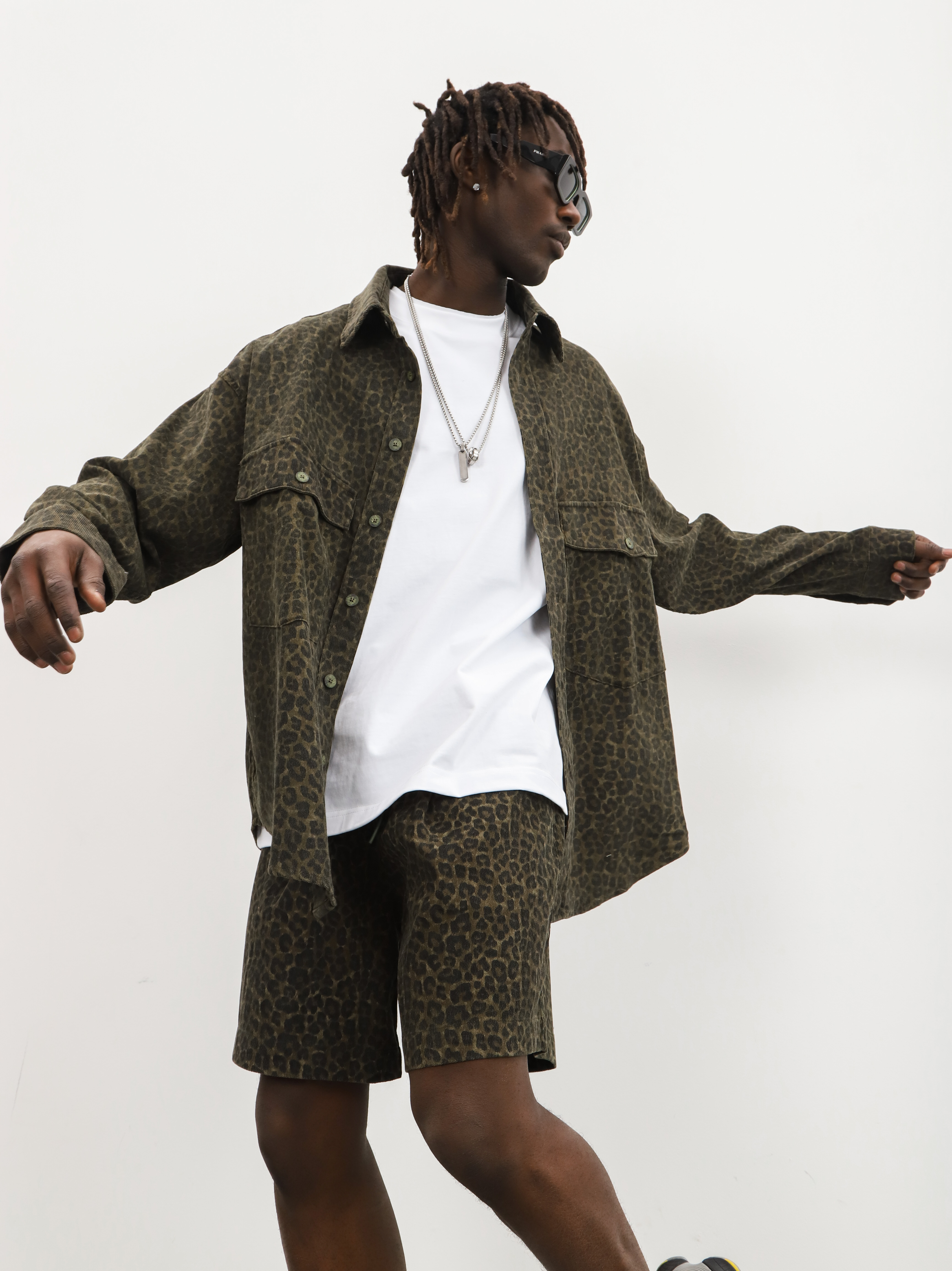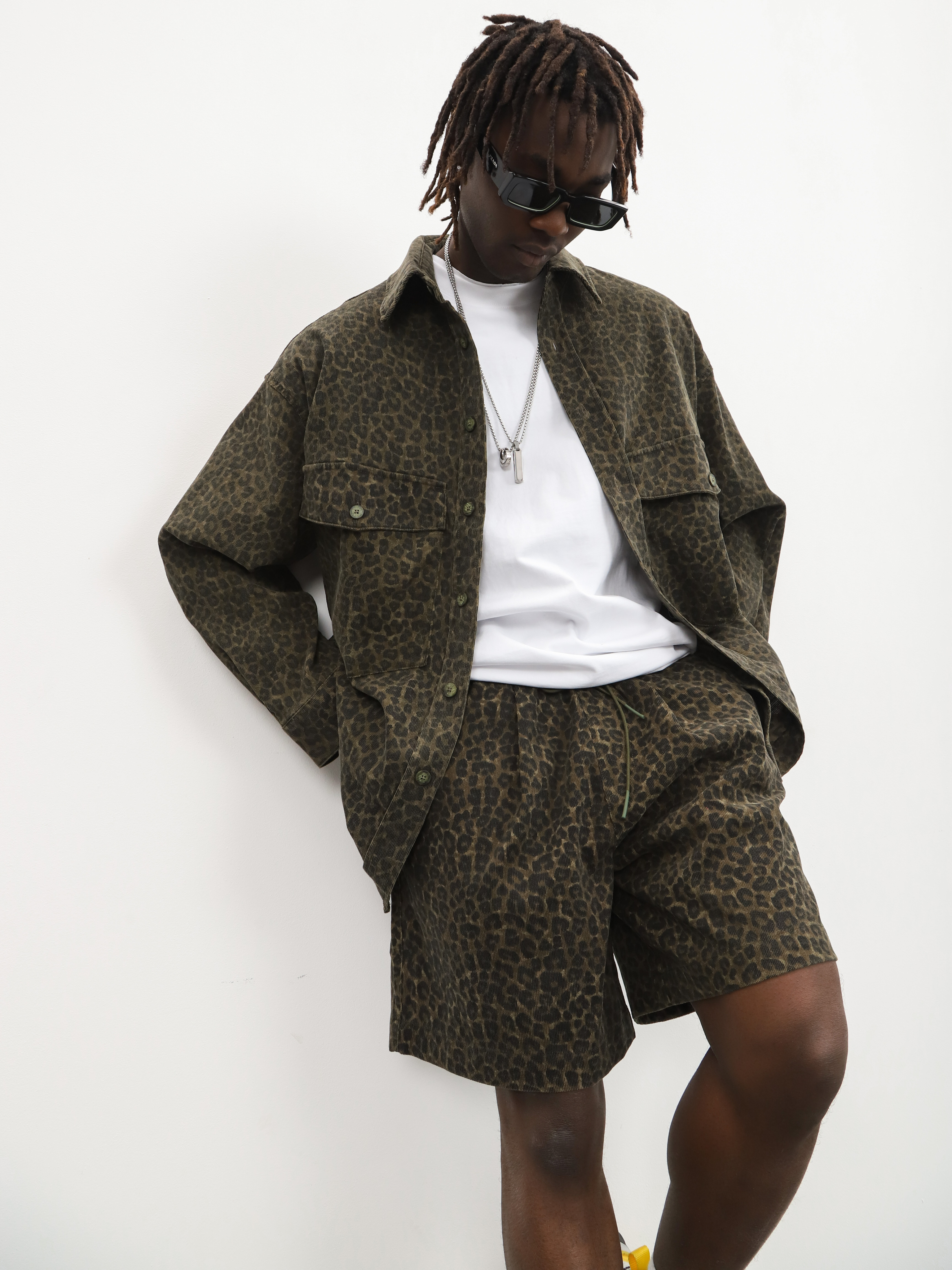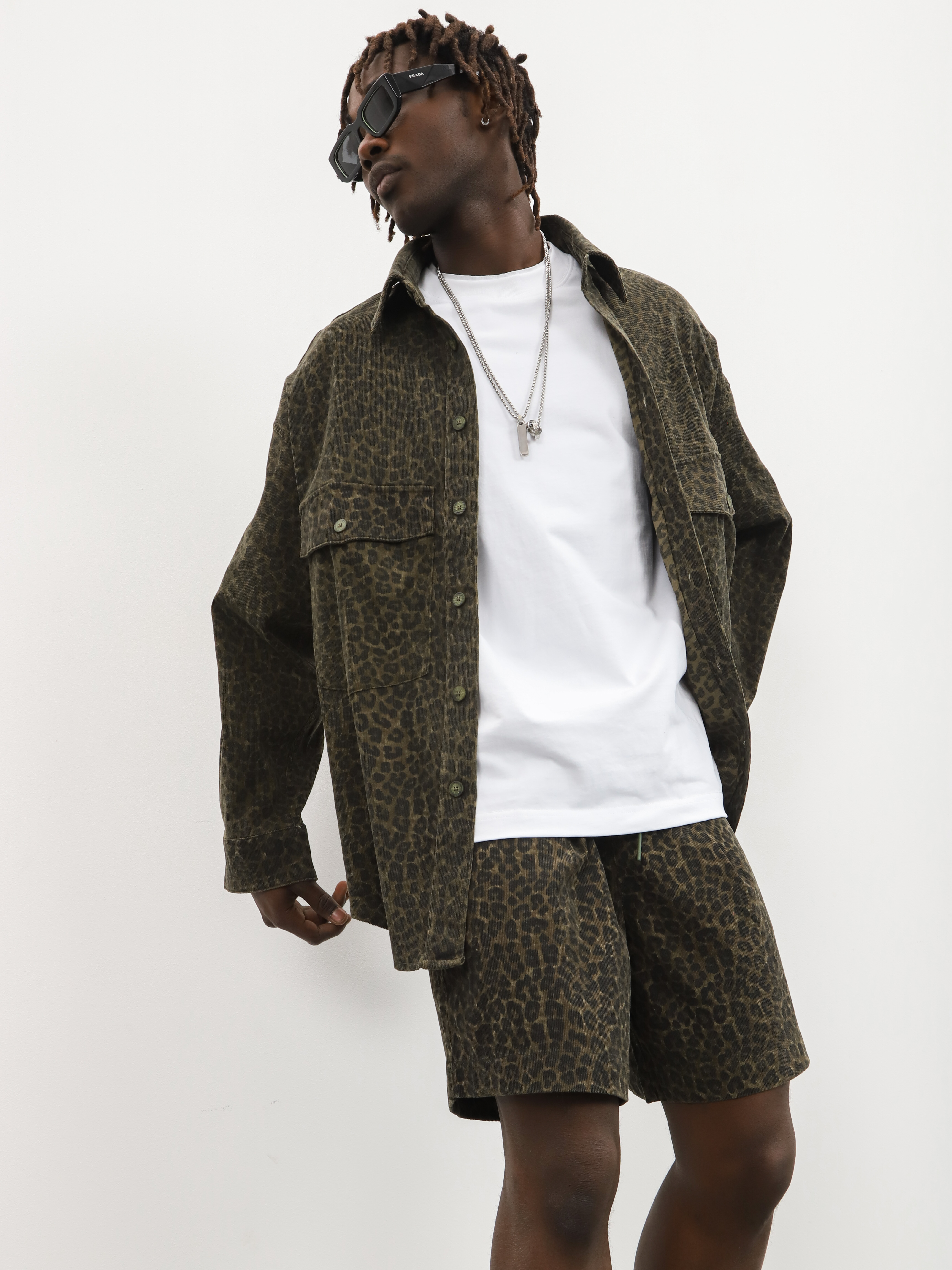 Мужской комплект-двойка с леопардовым принтом. Стильный костюм с шортами и рубашкой для ярких образов на теплую весну и лето.