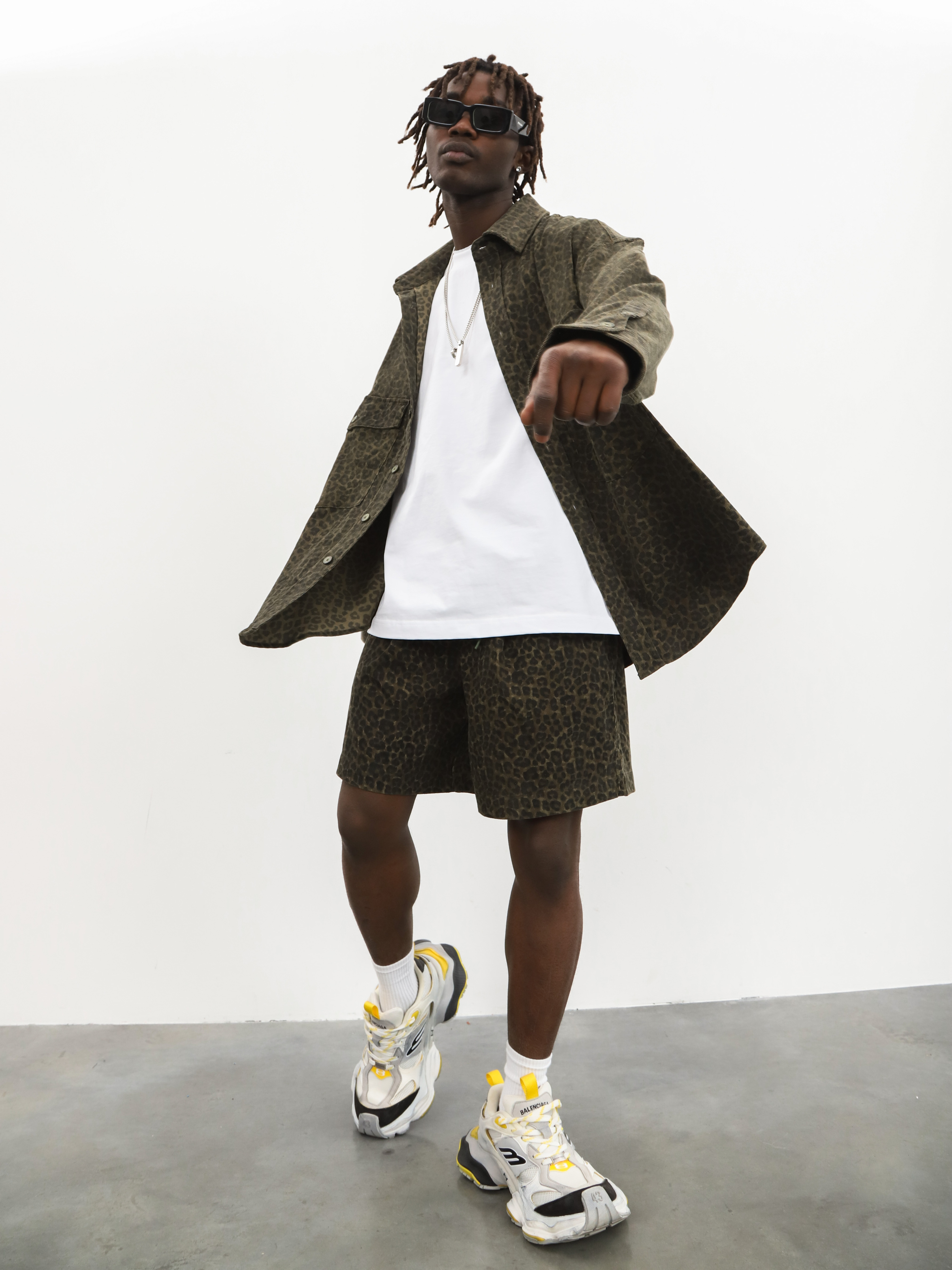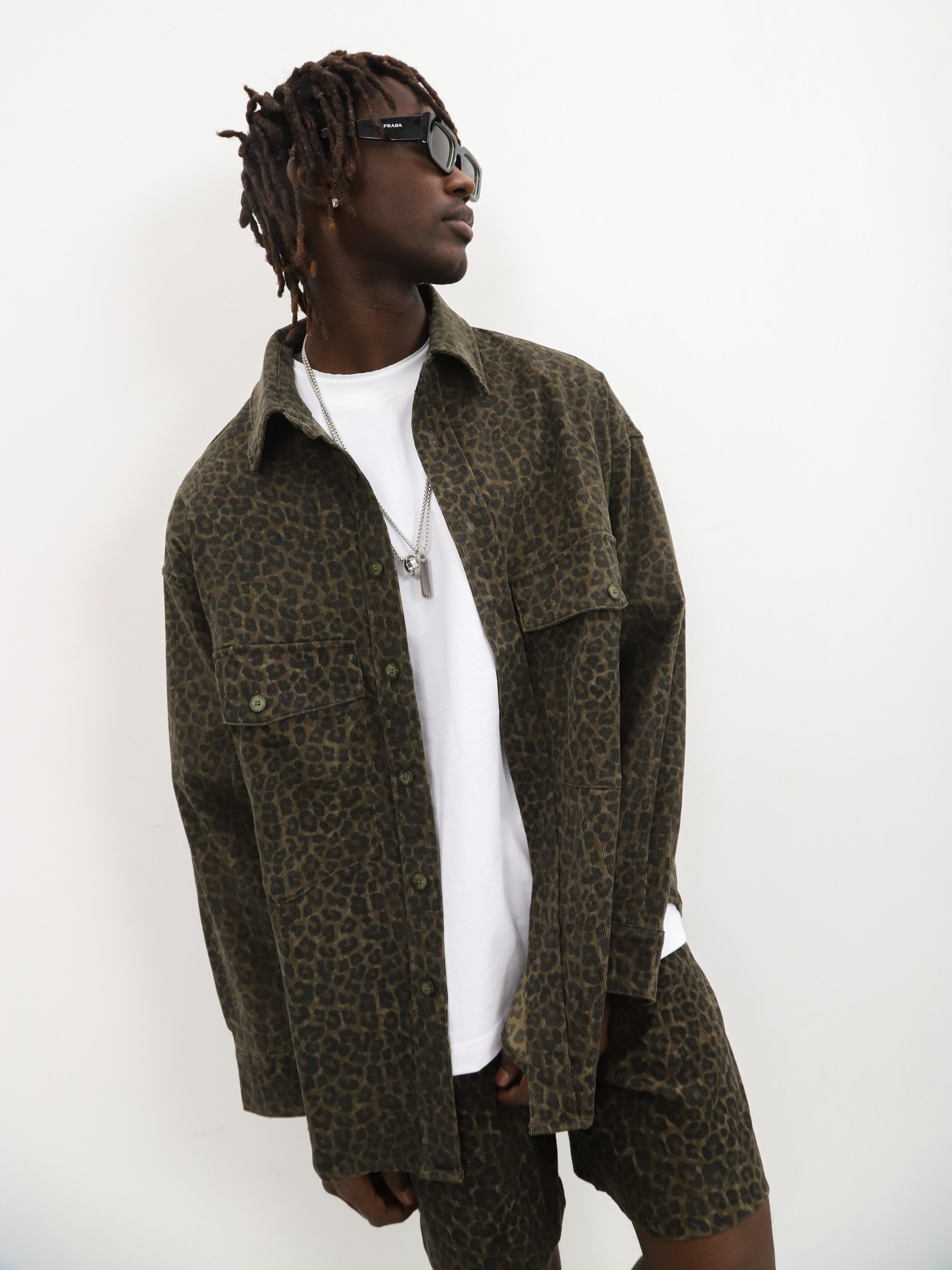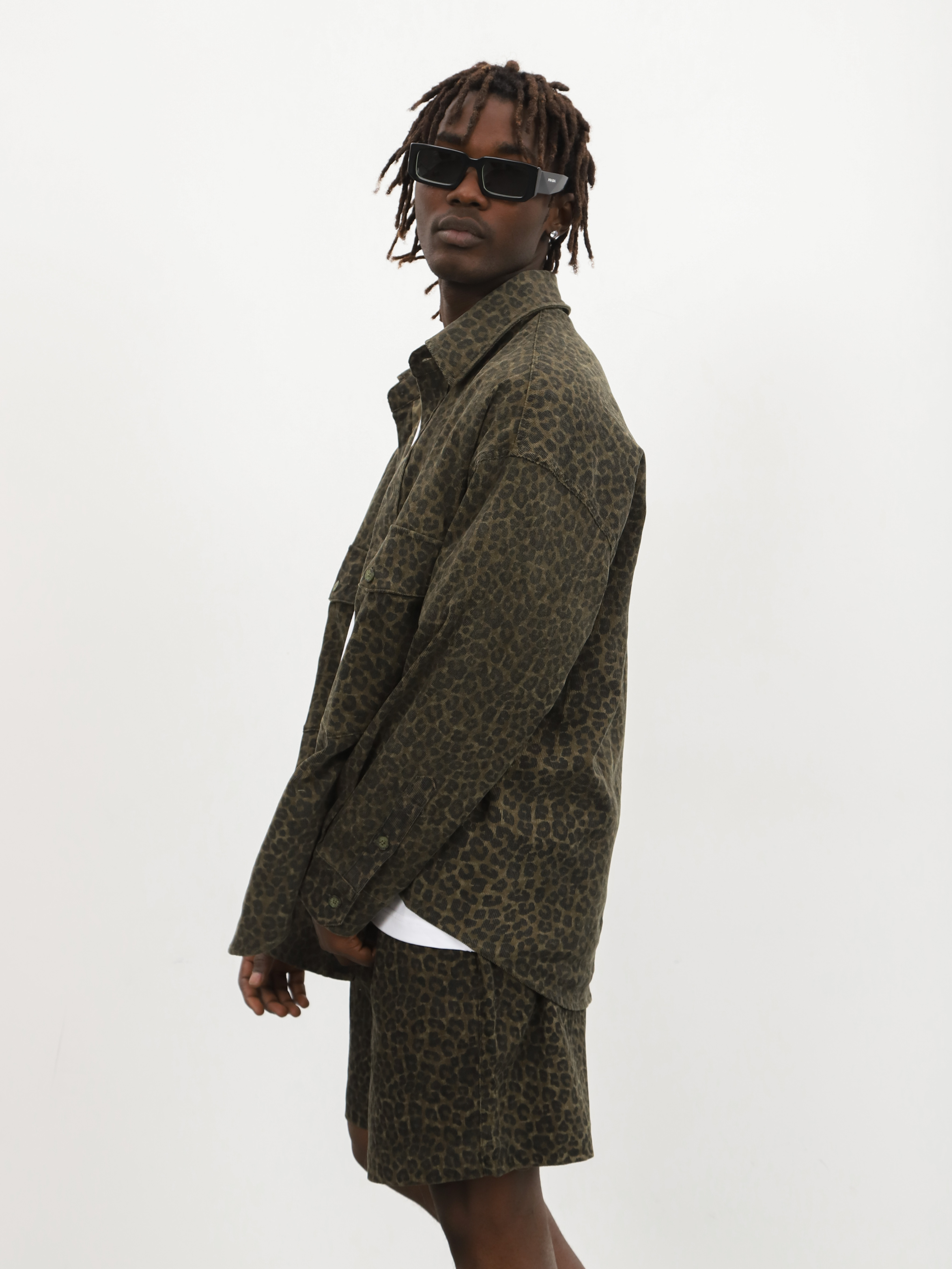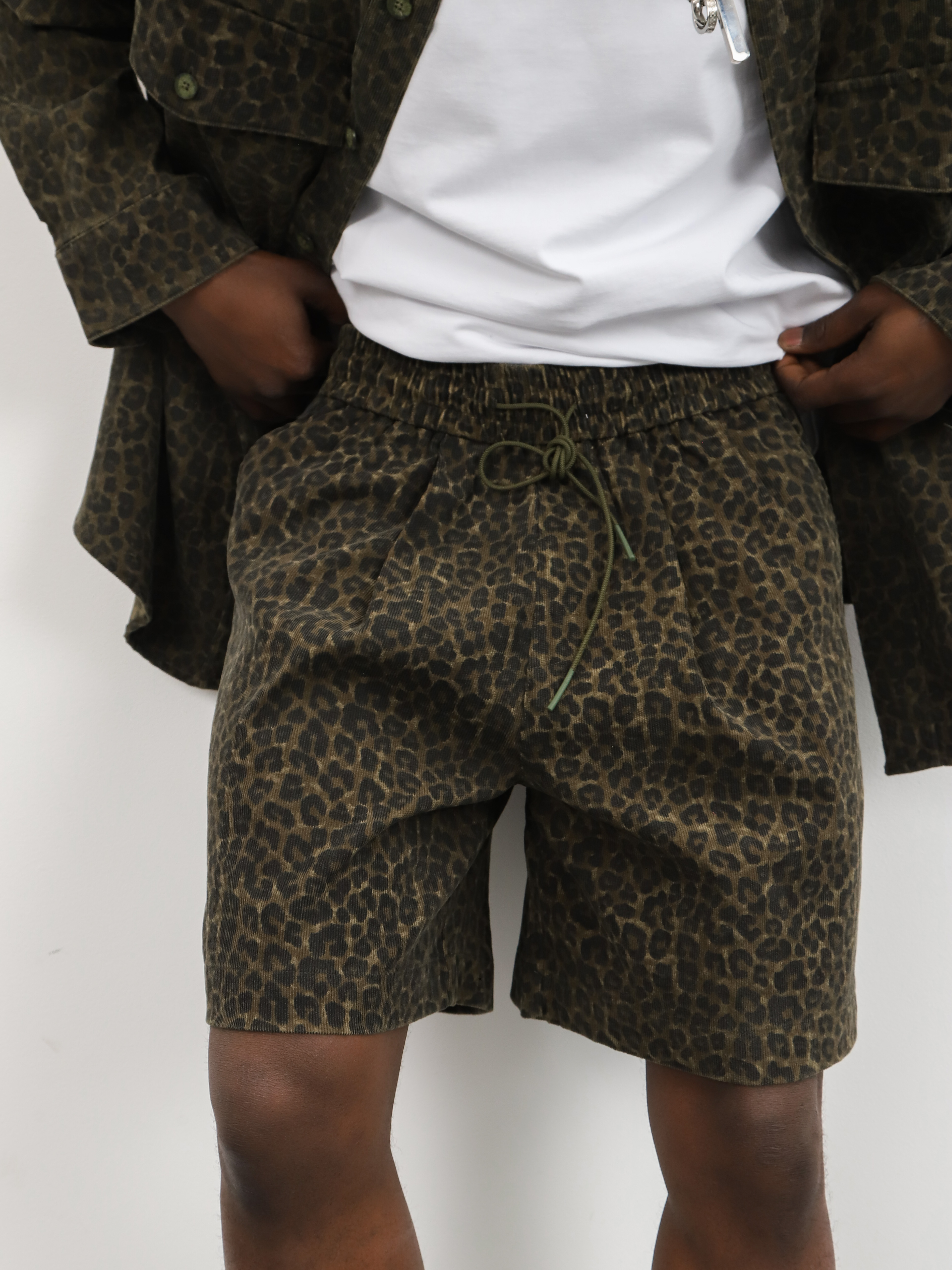 Мужской комплект-двойка с леопардовым принтом. Стильный костюм с шортами и рубашкой для ярких образов на теплую весну и лето.