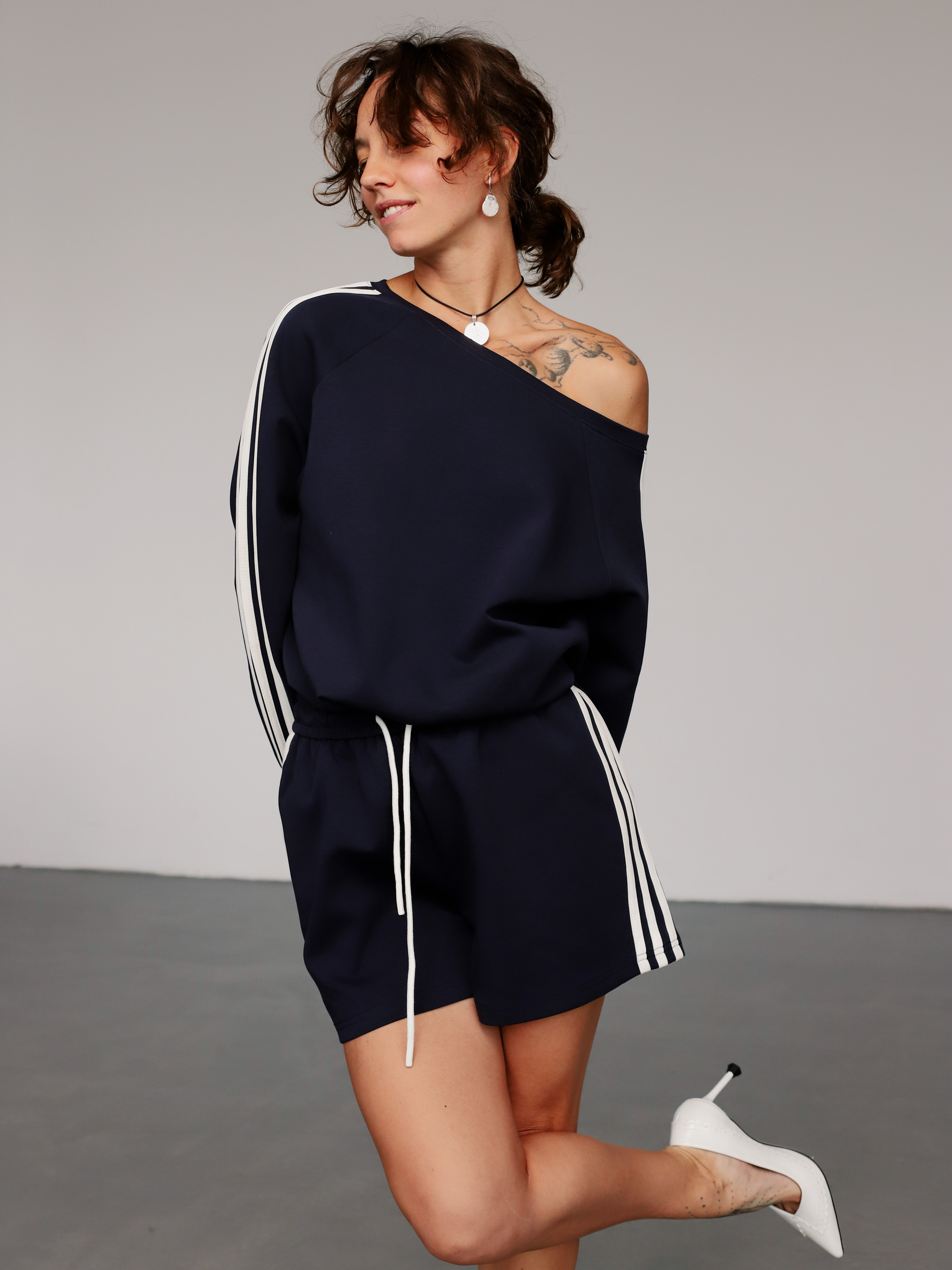Женский спортивный костюм с шортами. Идеальный вариант для создания летнего образа в стиле «кэжуал-спорт».