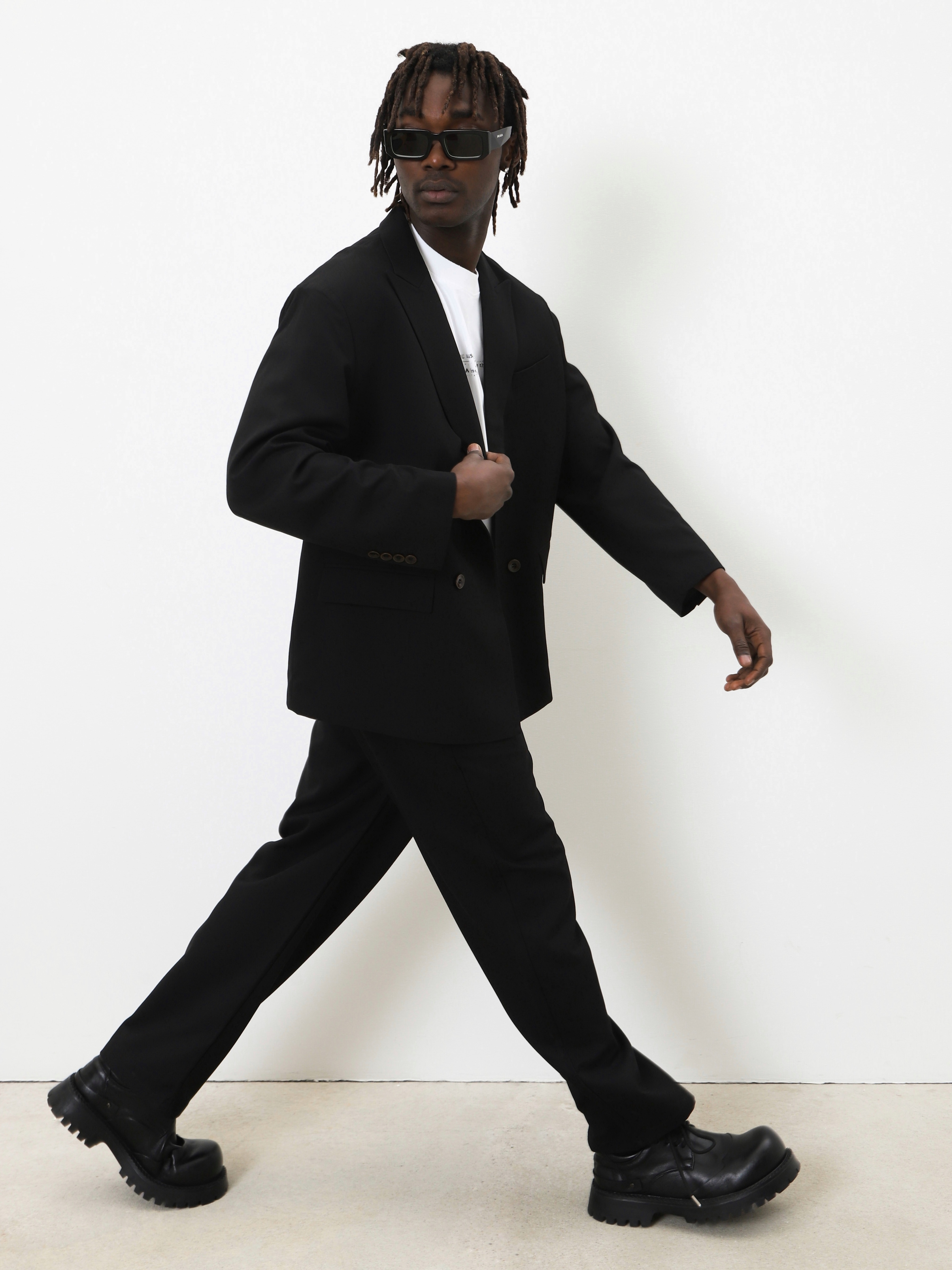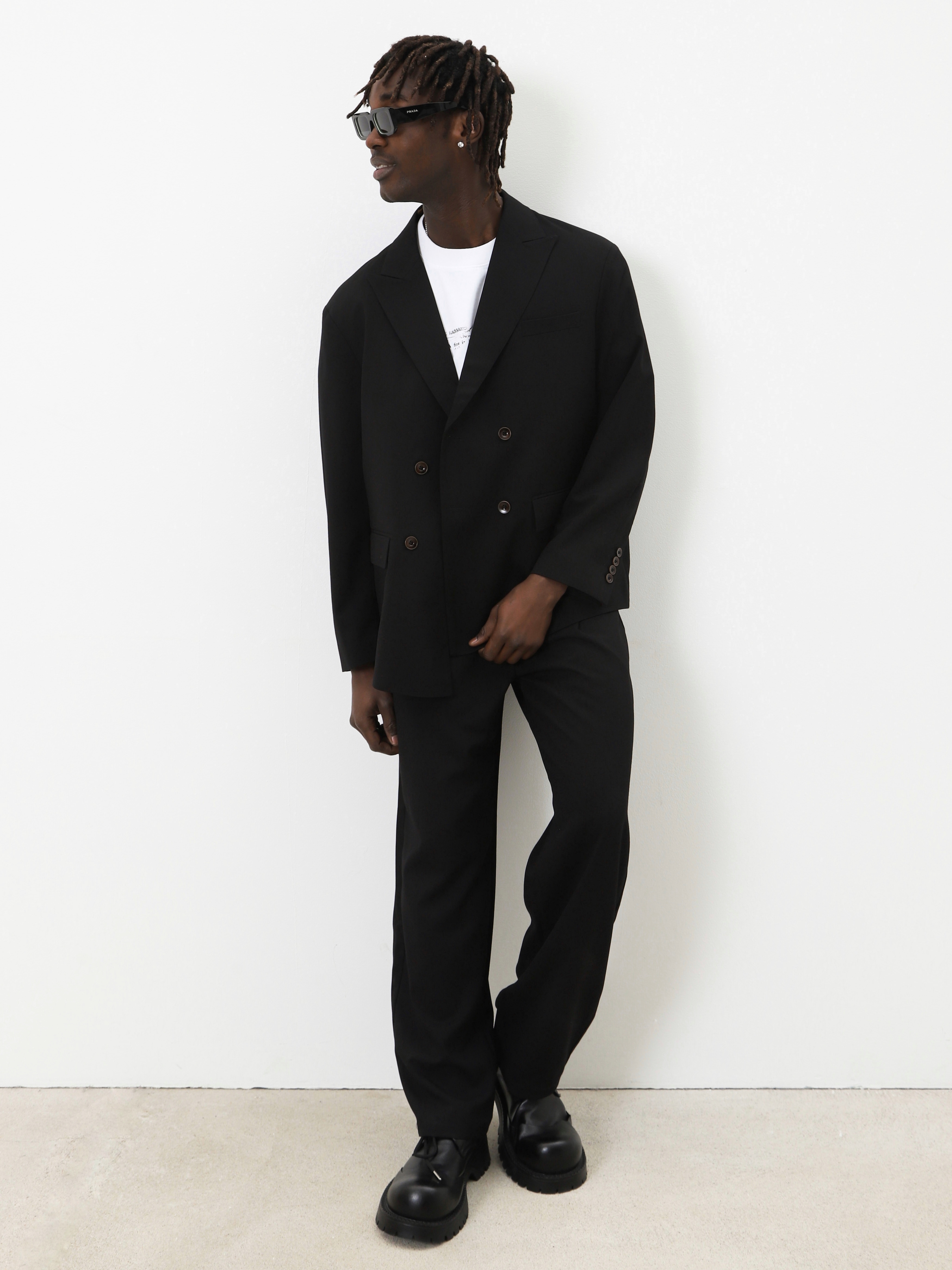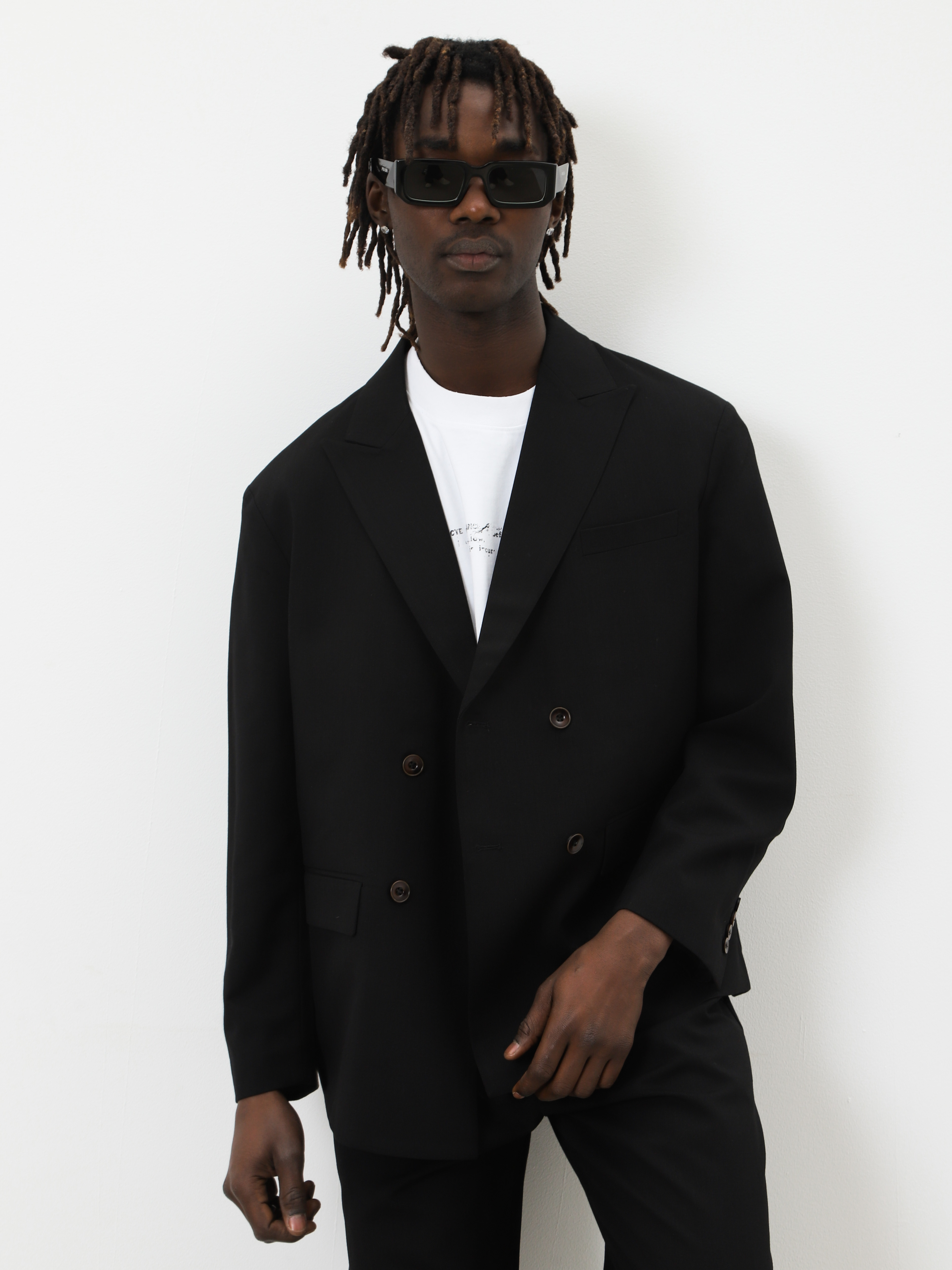 Мужской костюм-двойка черного цвета. Костюм с двуботным пиджаком для создания стильного делового образа.