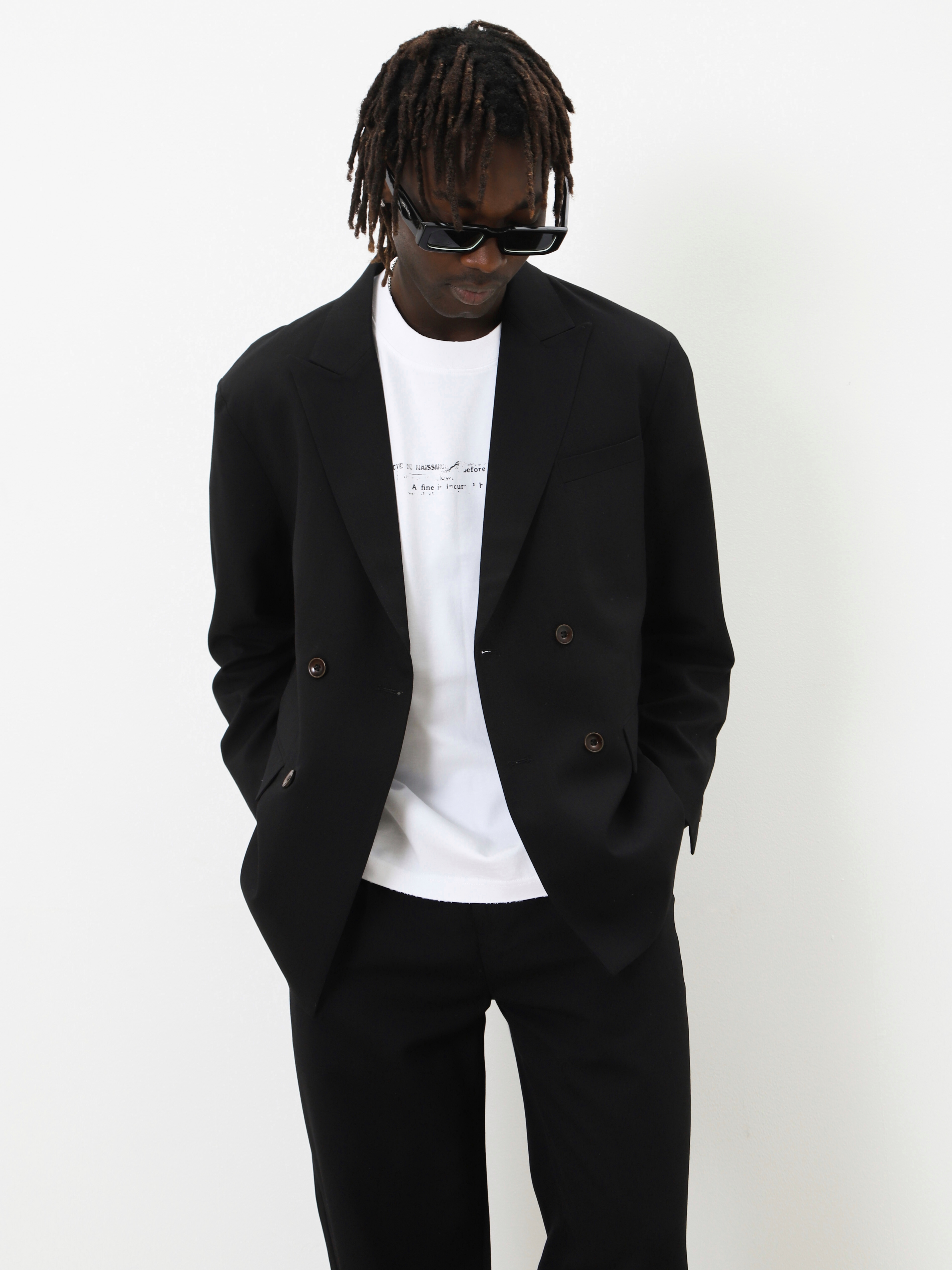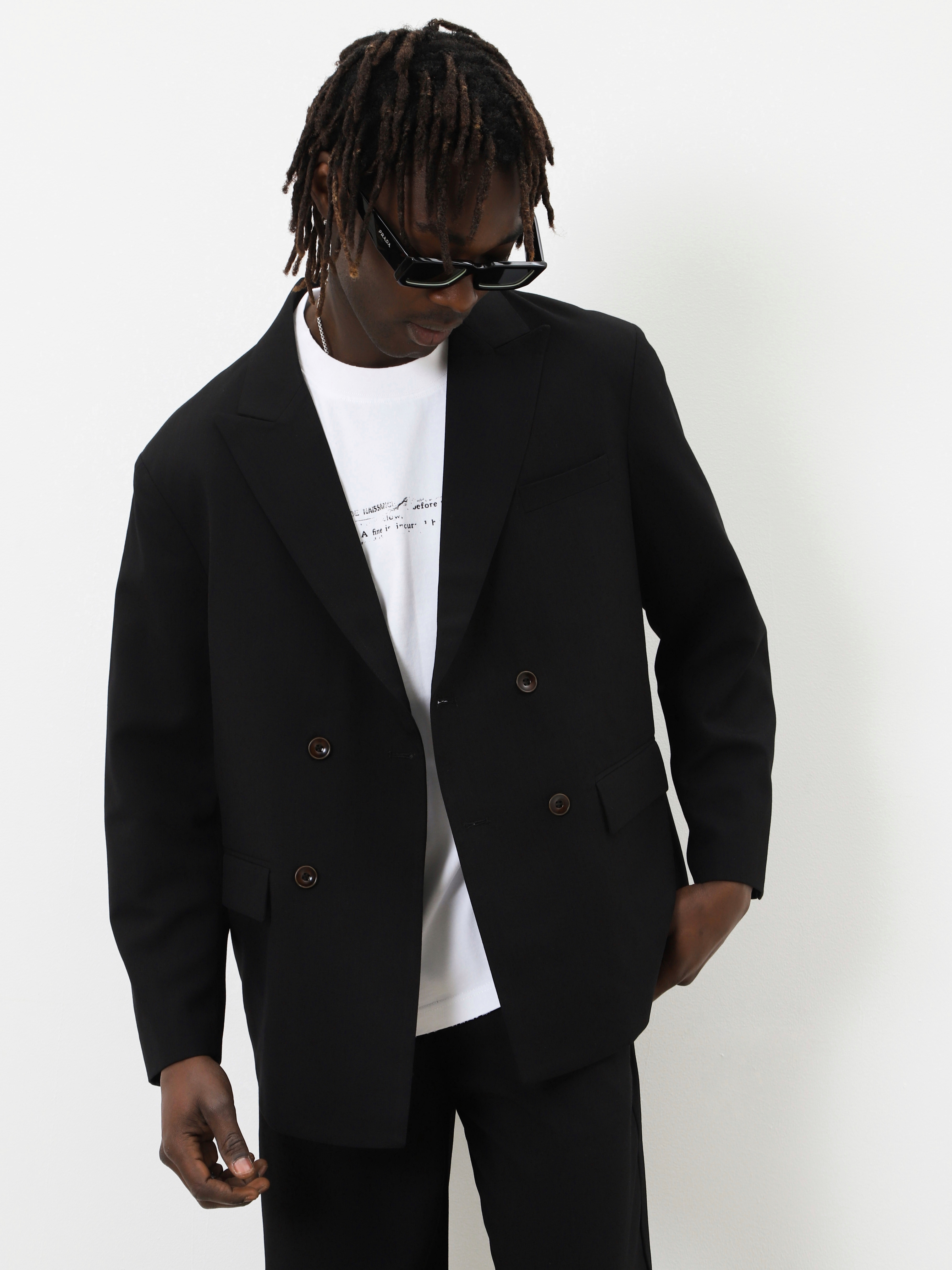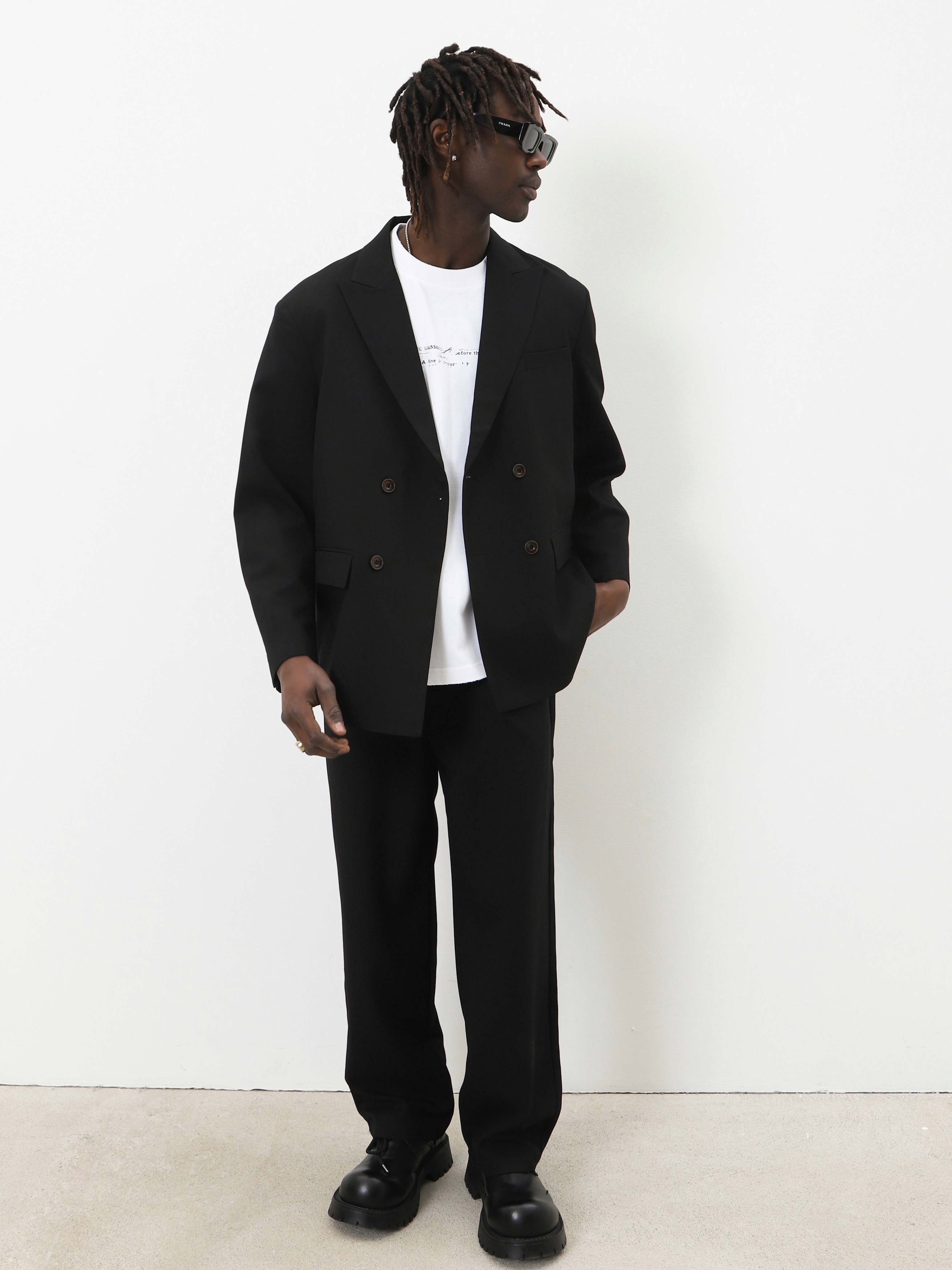 Мужской костюм-двойка черного цвета. Костюм с двуботным пиджаком для создания стильного делового образа.