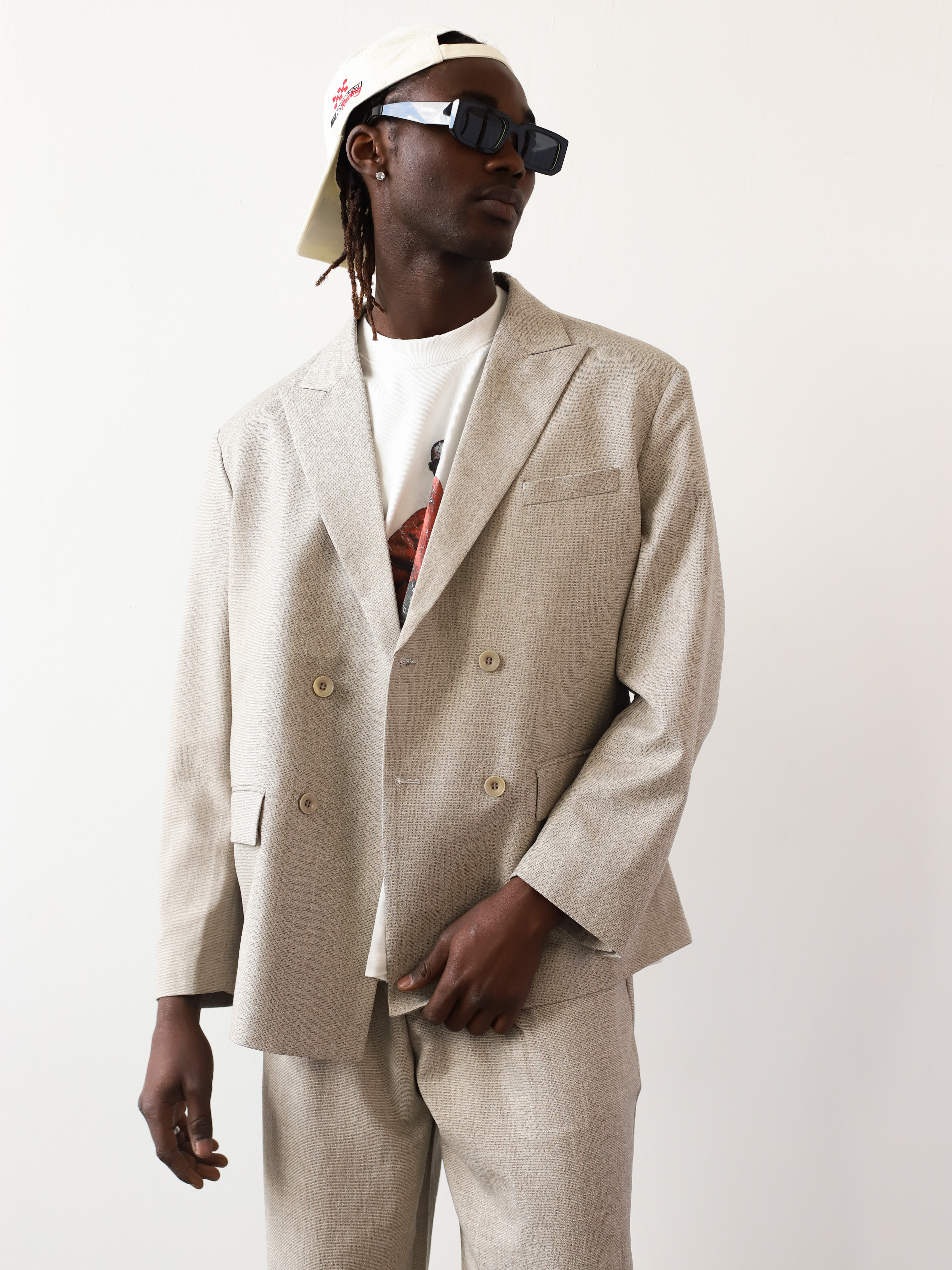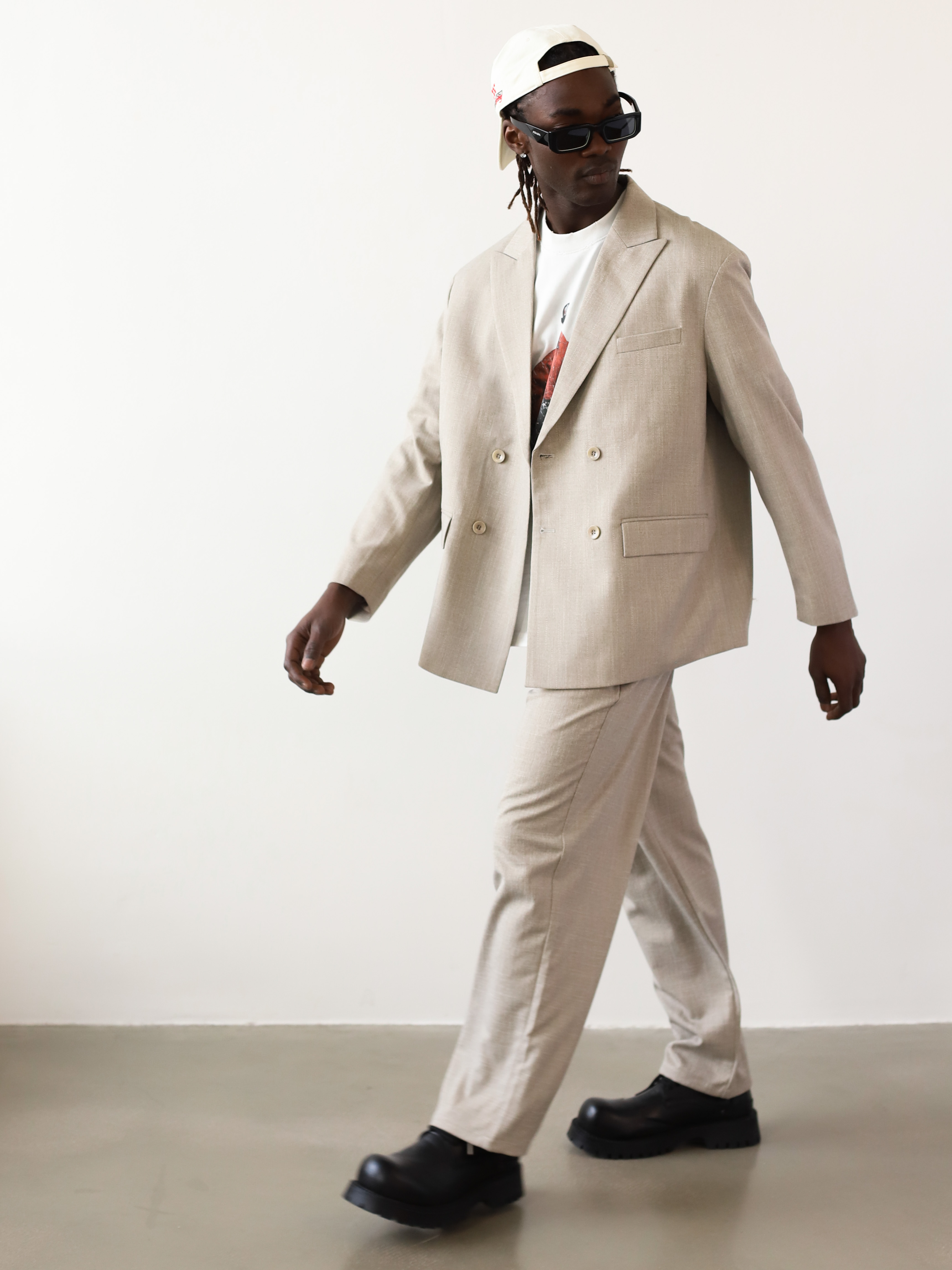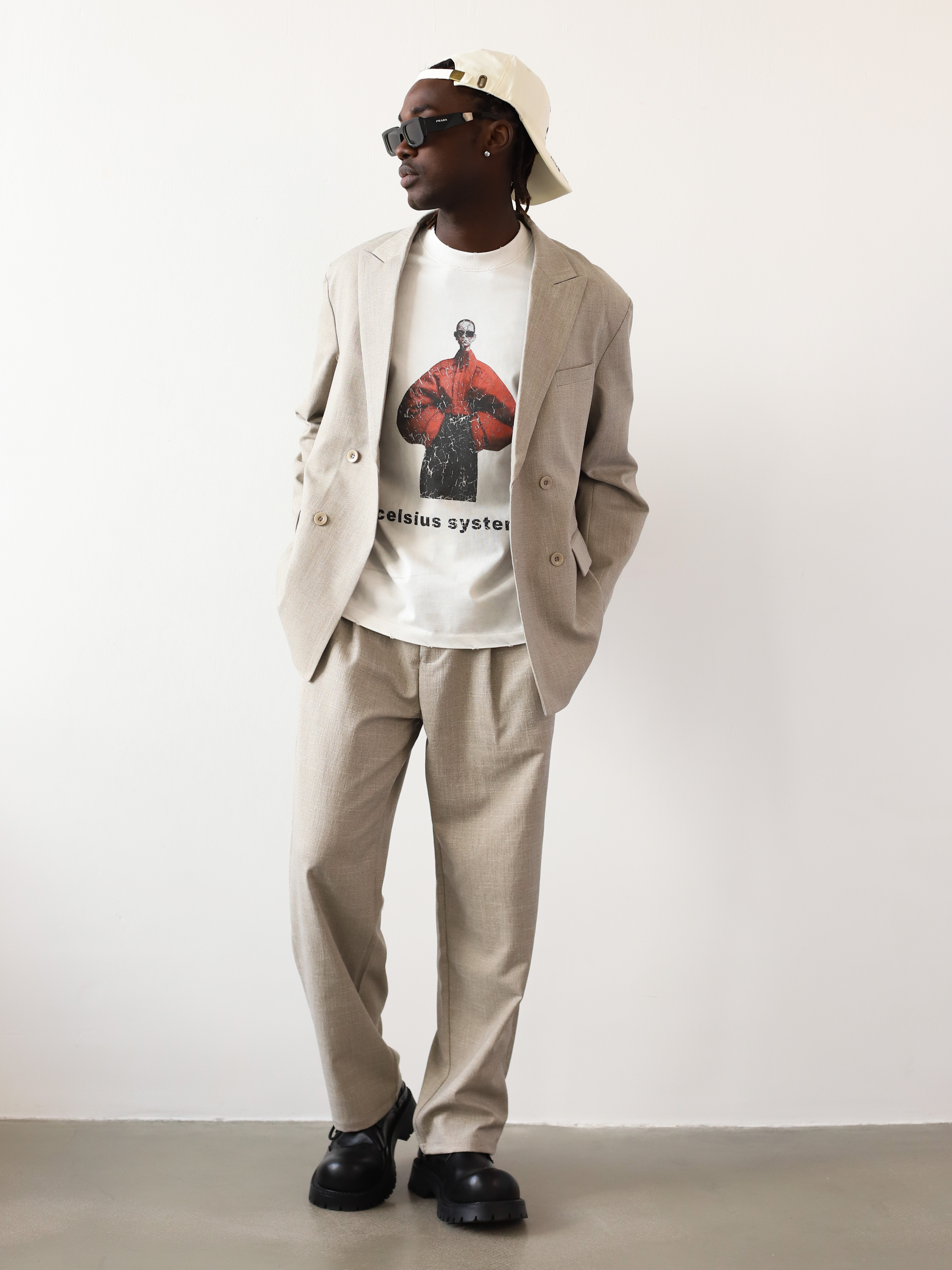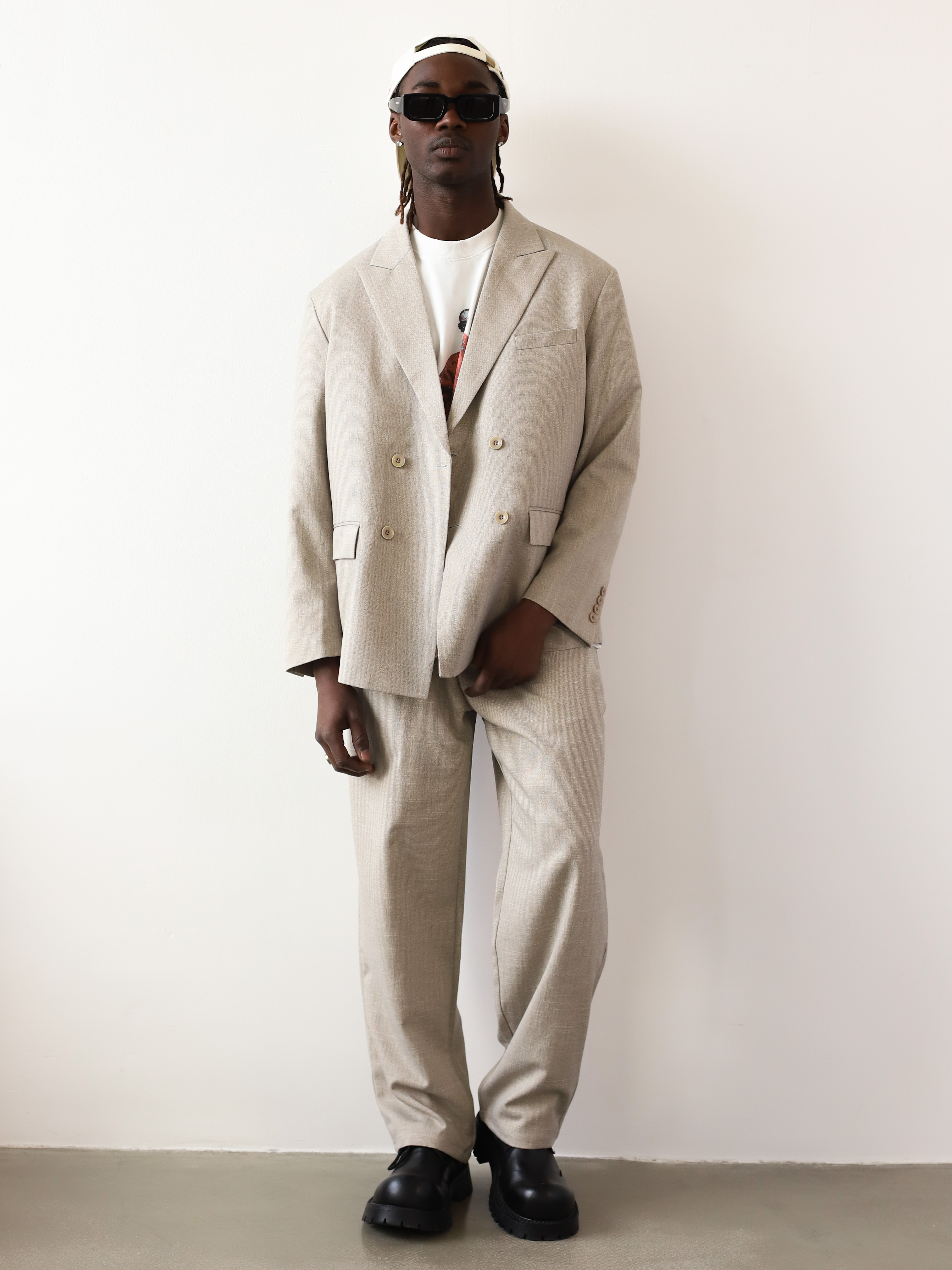 Мужской костюм-двойка бежевого цвета. Костюм с двуботным пиджаком для создания стильного делового образа.
