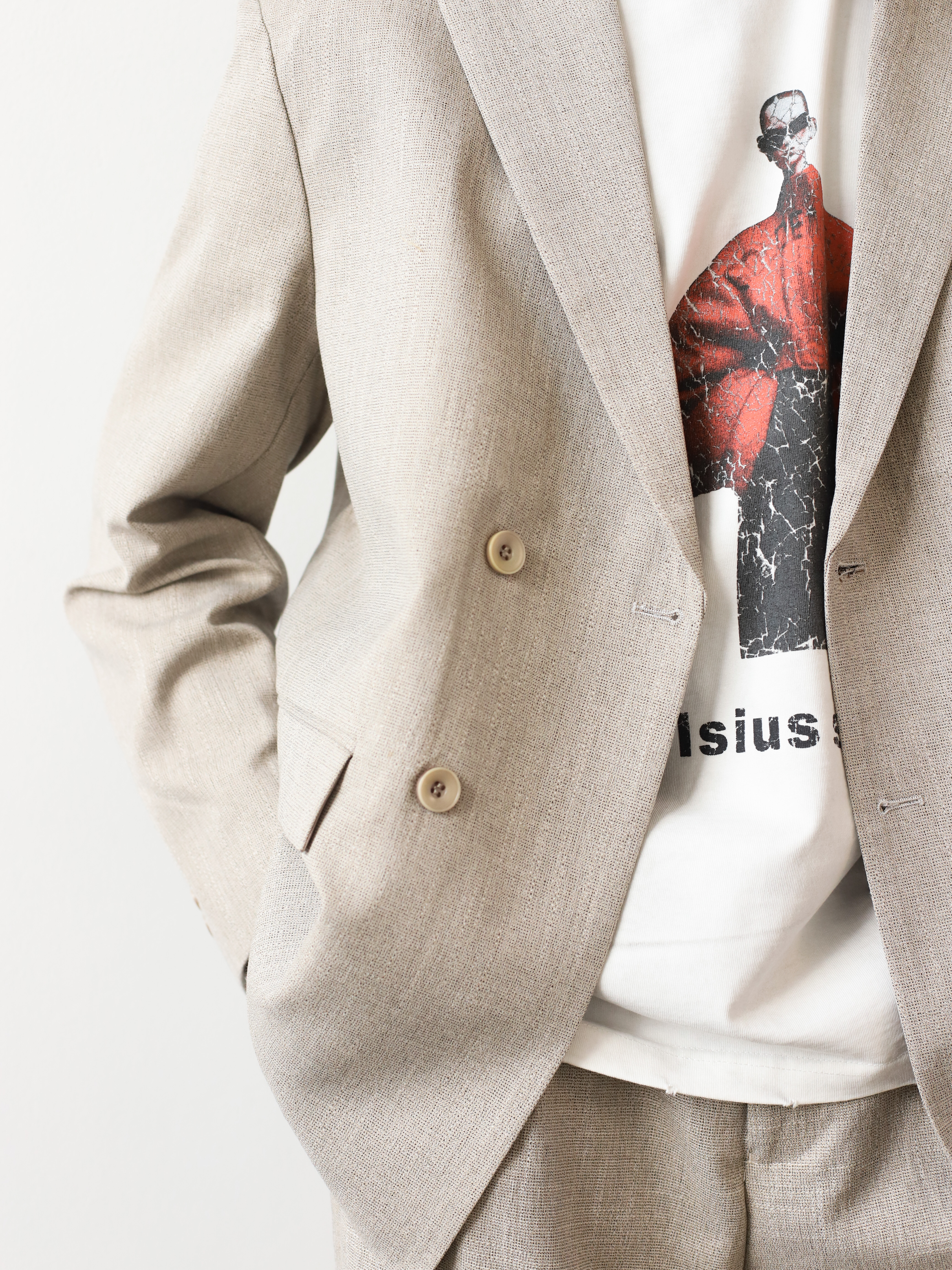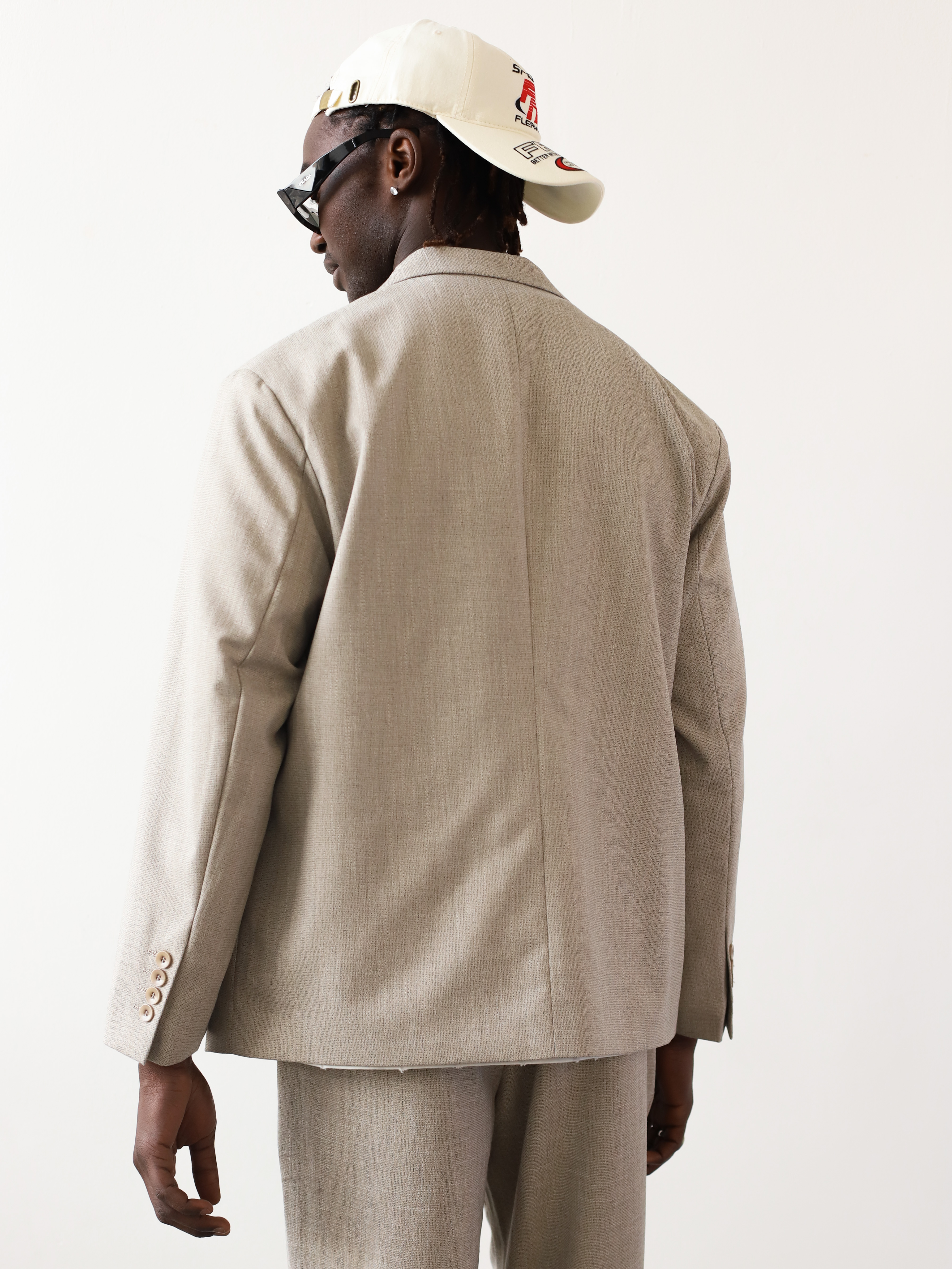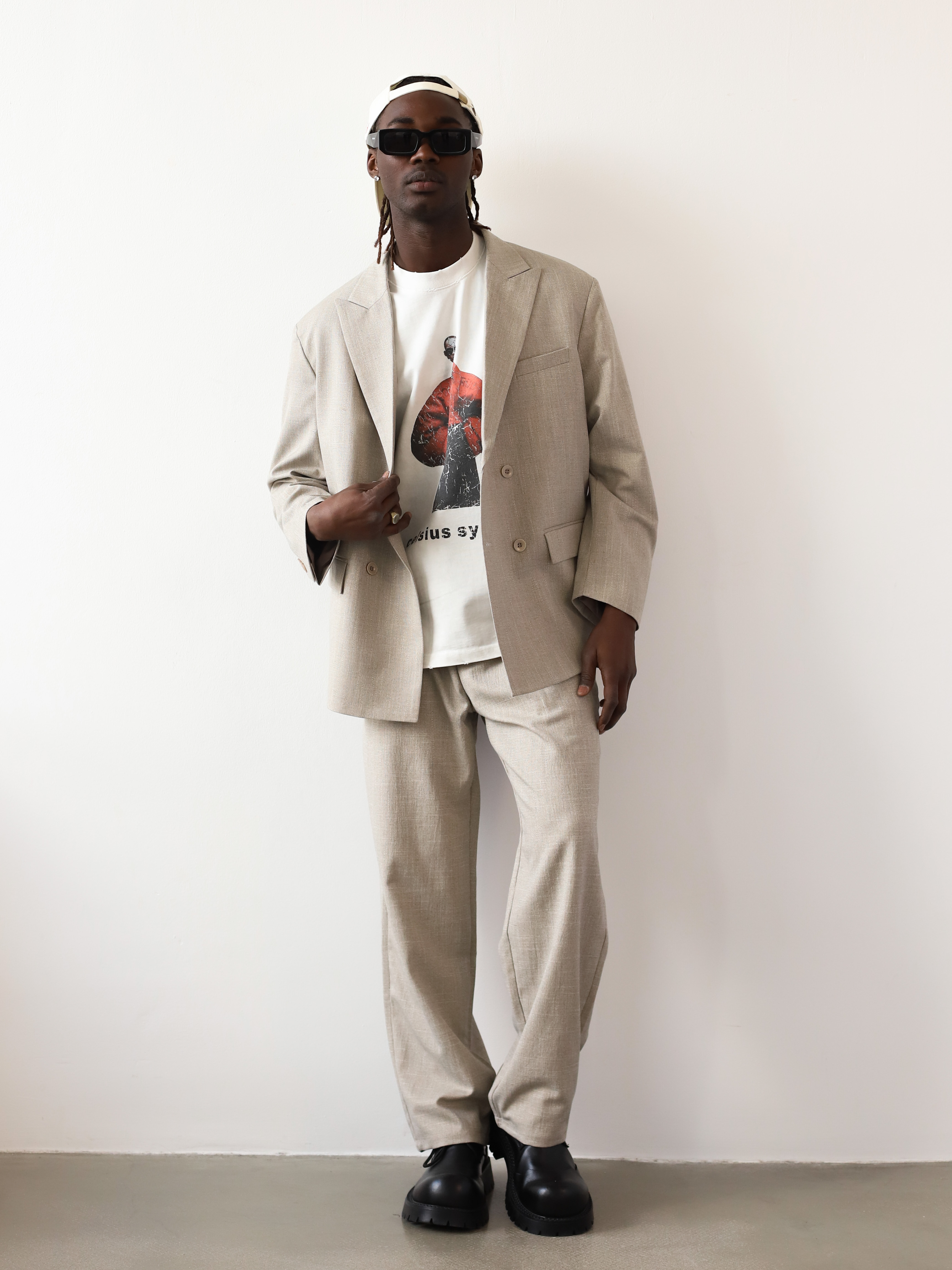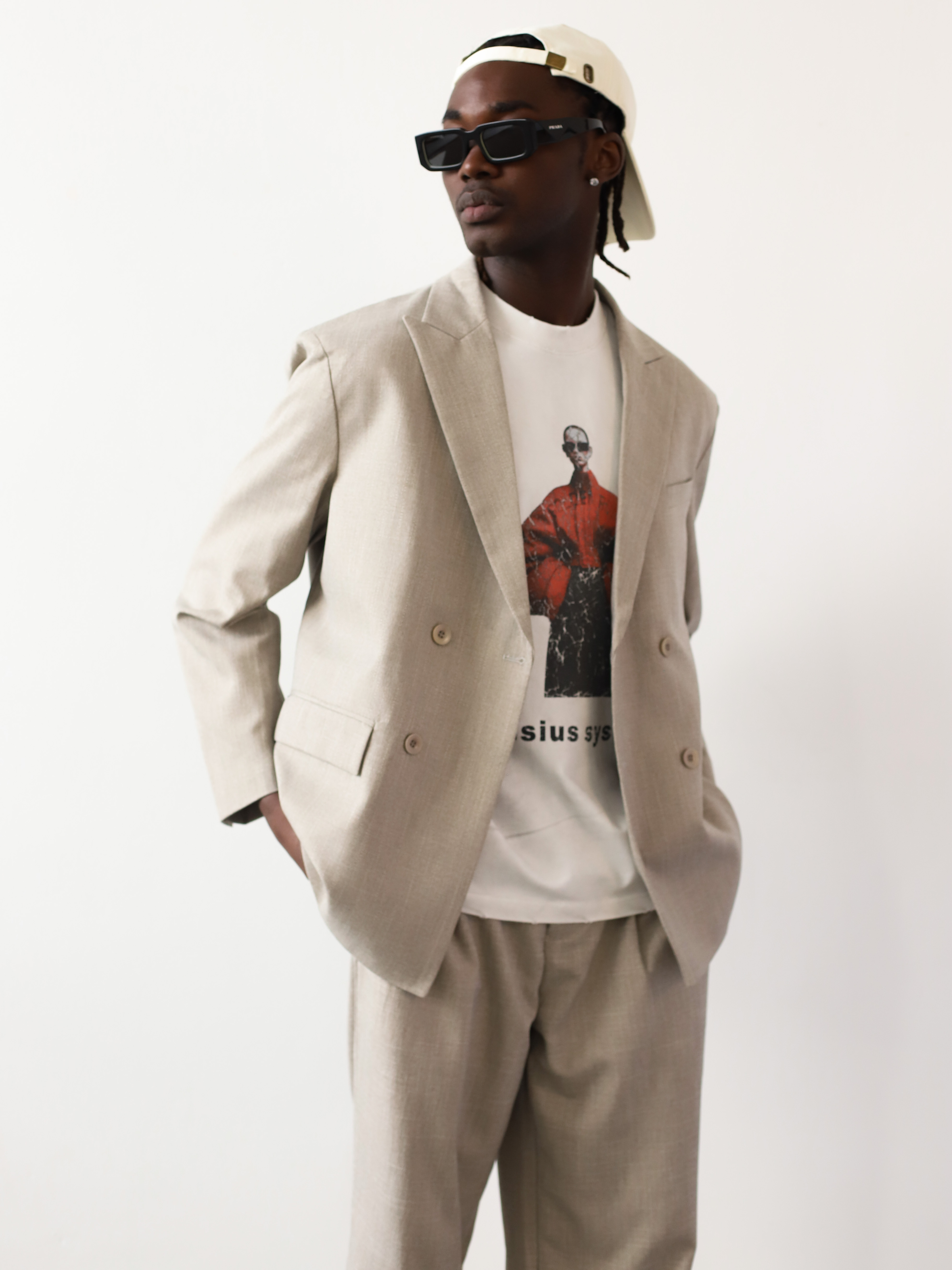 Мужской костюм-двойка бежевого цвета. Костюм с двуботным пиджаком для создания стильного делового образа.