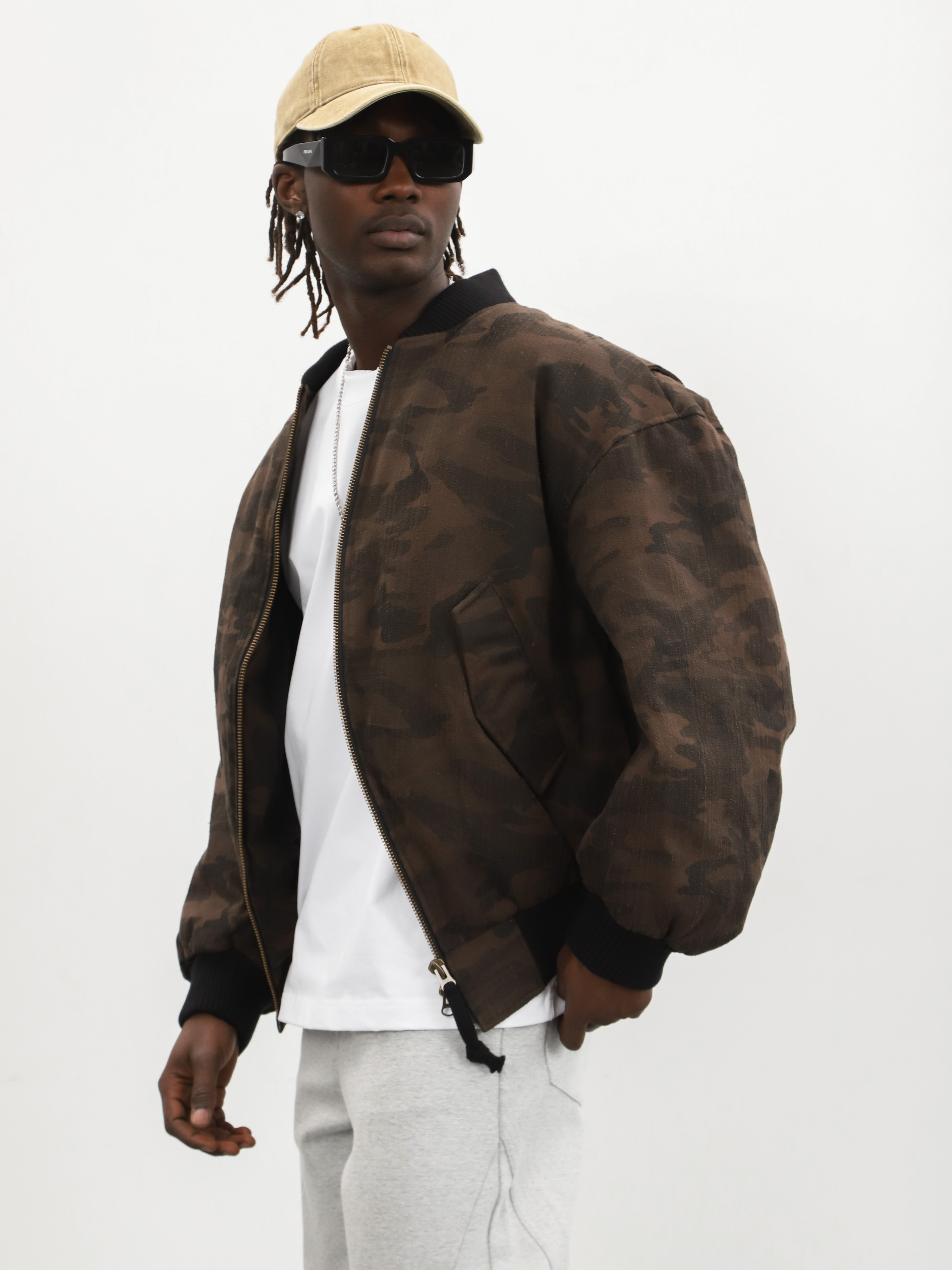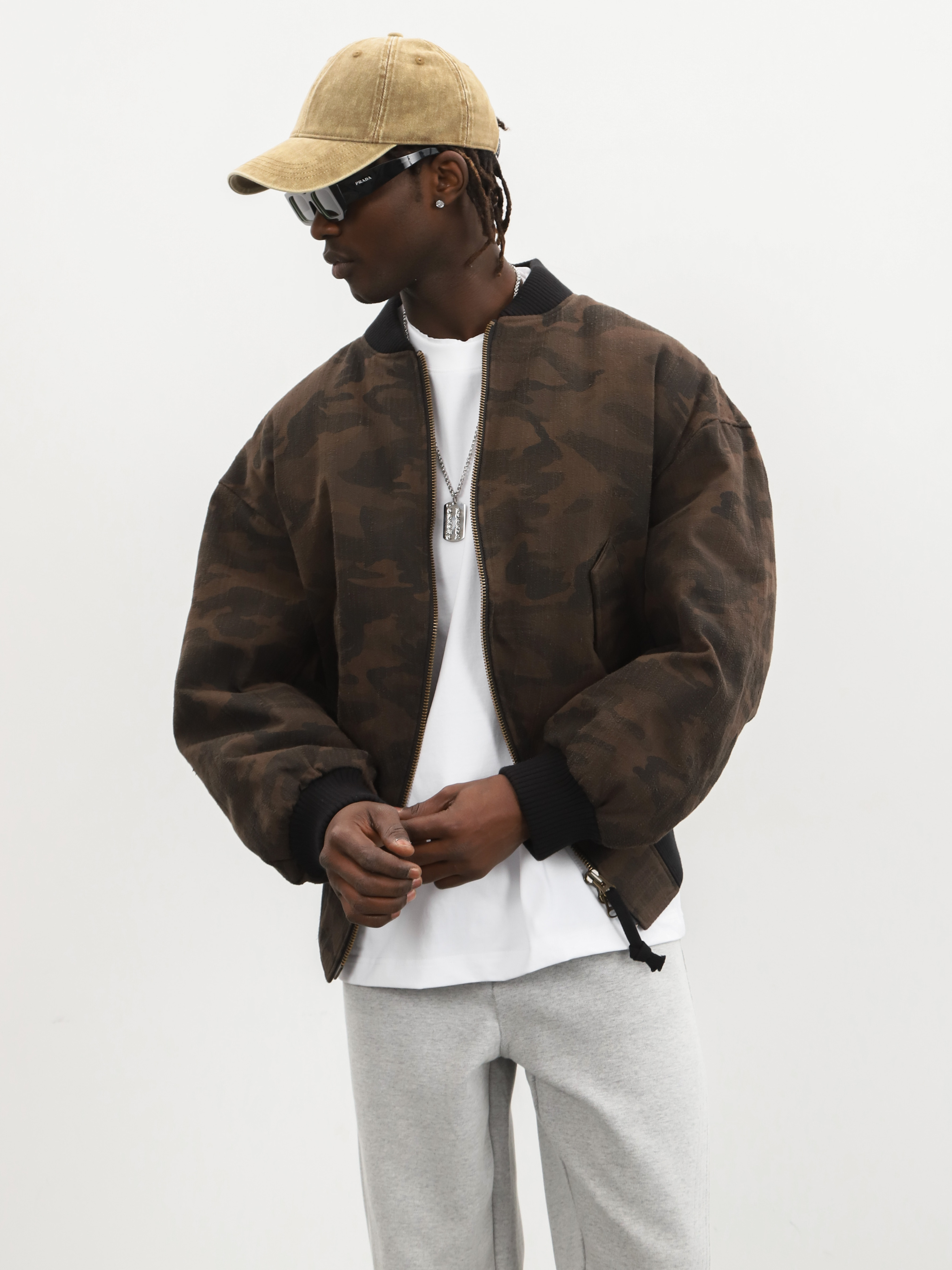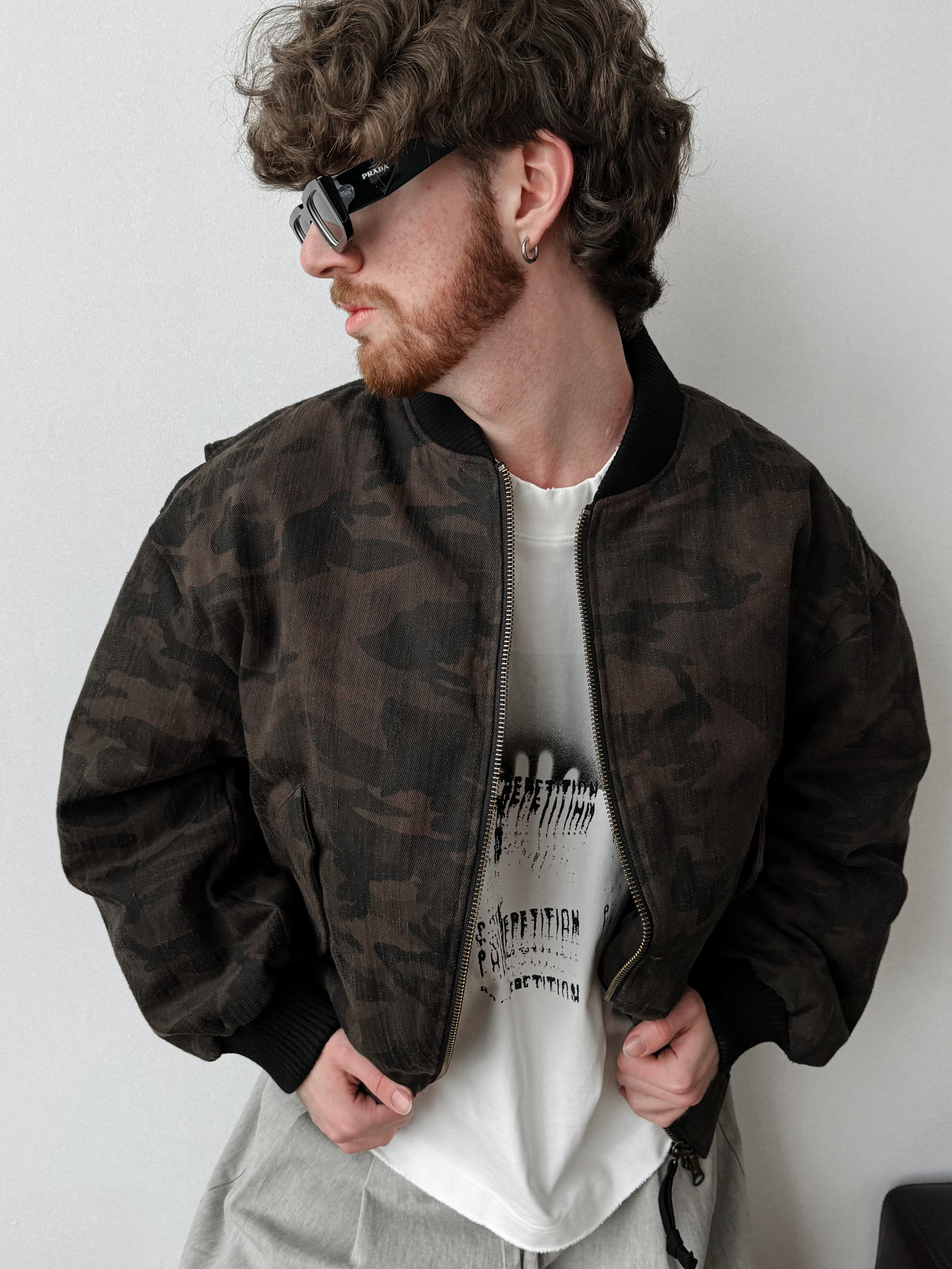 Укороченный мужской бомбер с камуфляжем для тех, кто любит выделяться из толпы.
