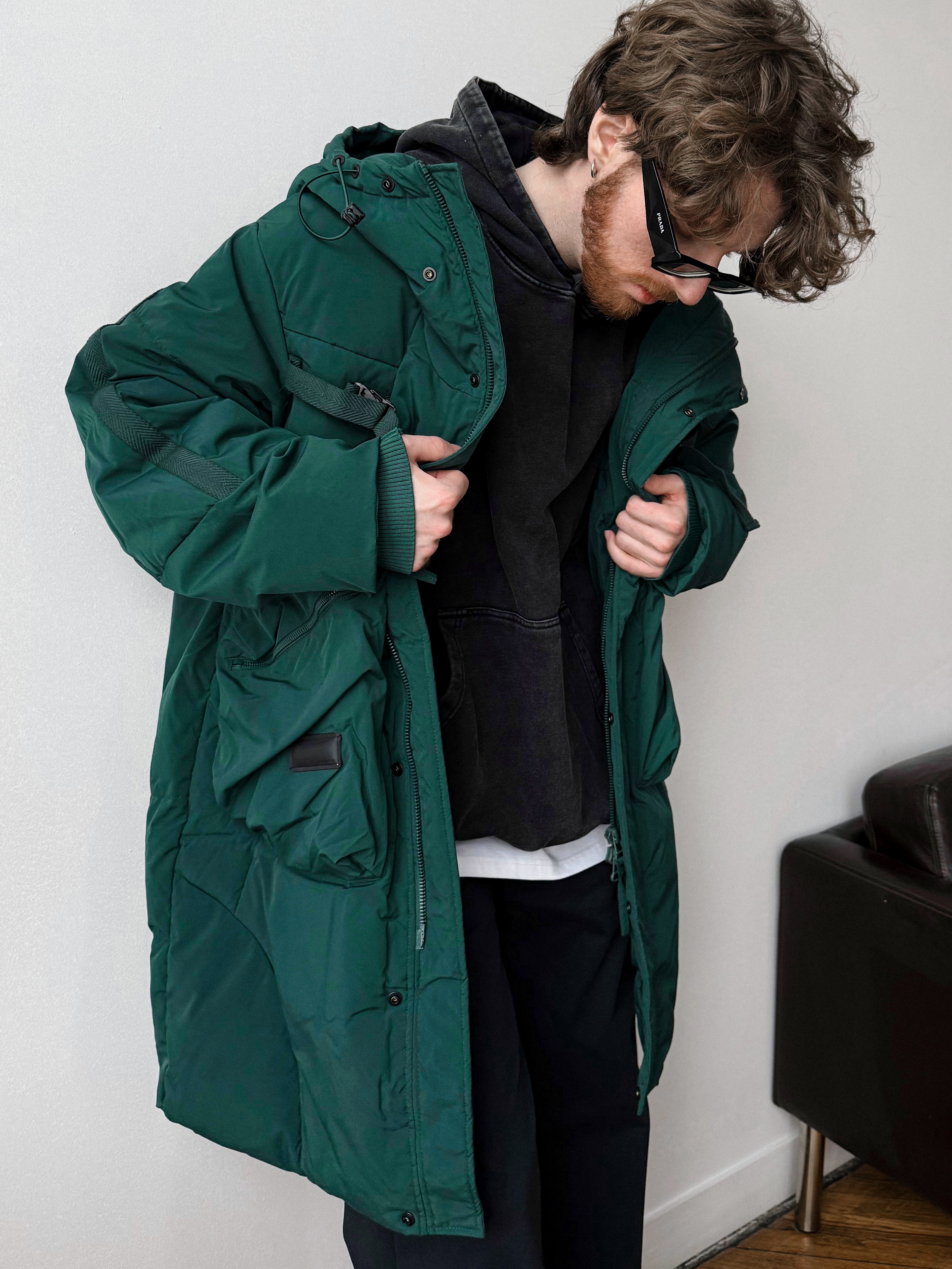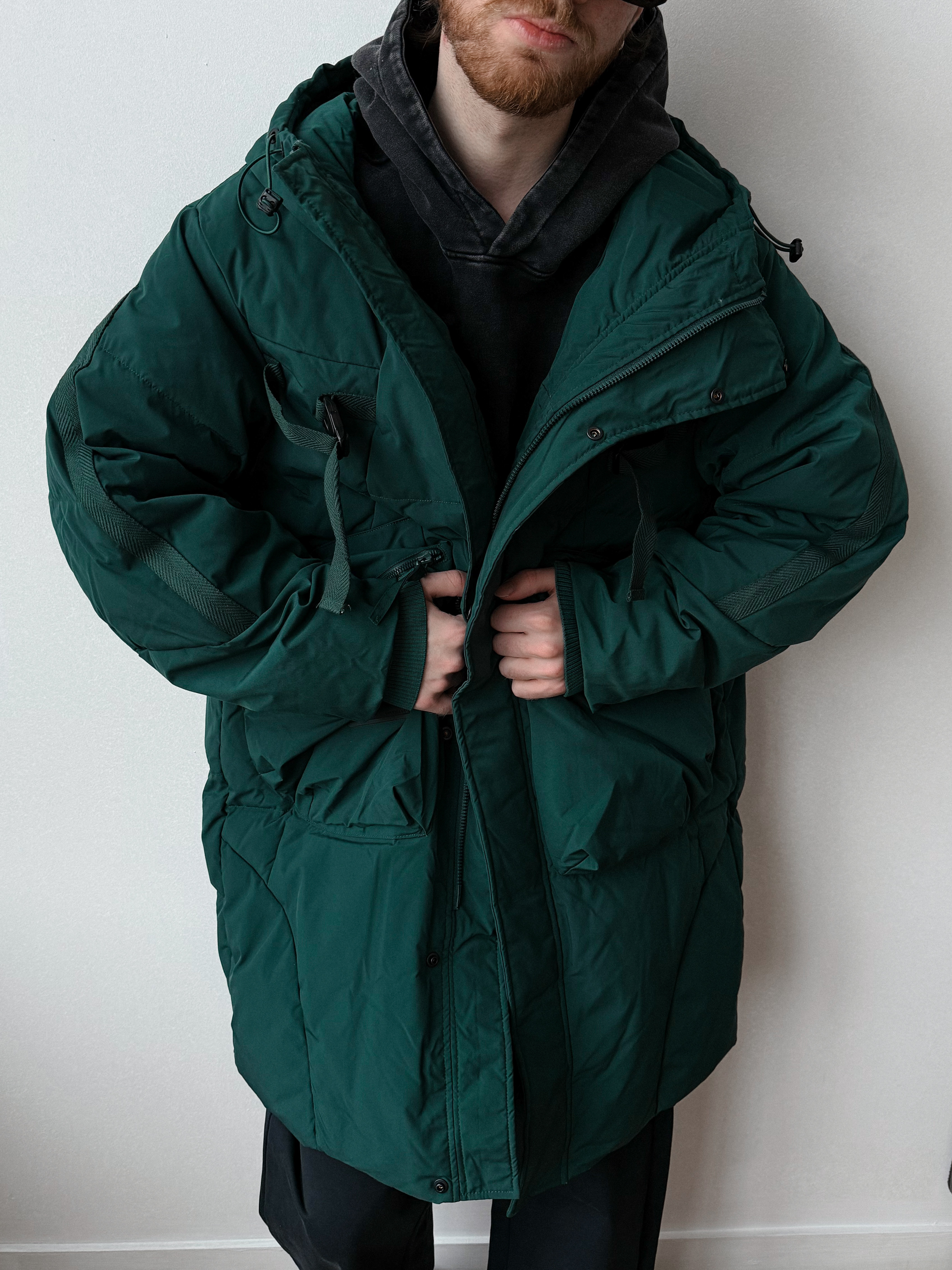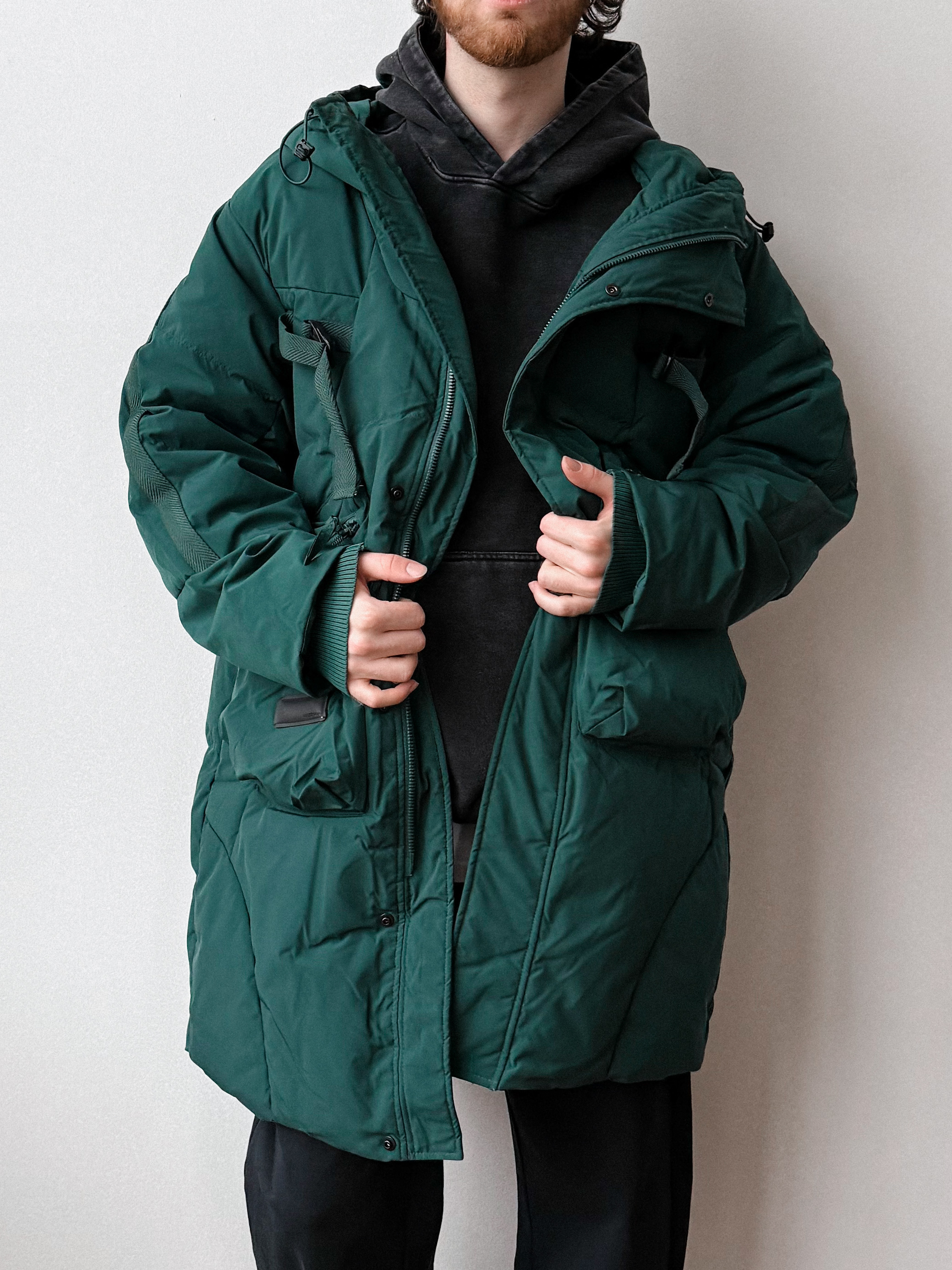 Однотонная мужская куртка с концептуальным дизайном. Отличный вариант для создания стильного зимнего образа.