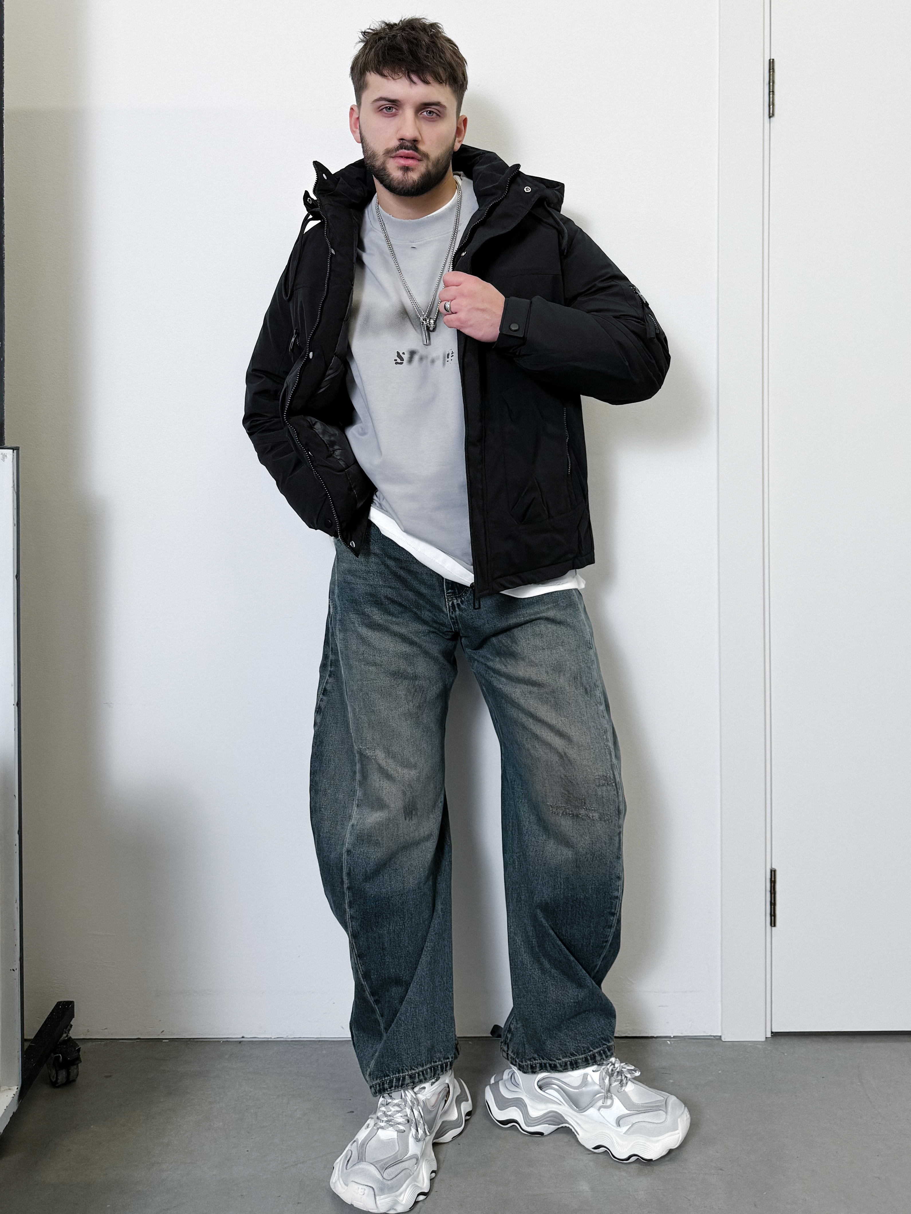 Утепленная черная куртка с капюшоном. Укороченная модель для зимних образов на каждый день.