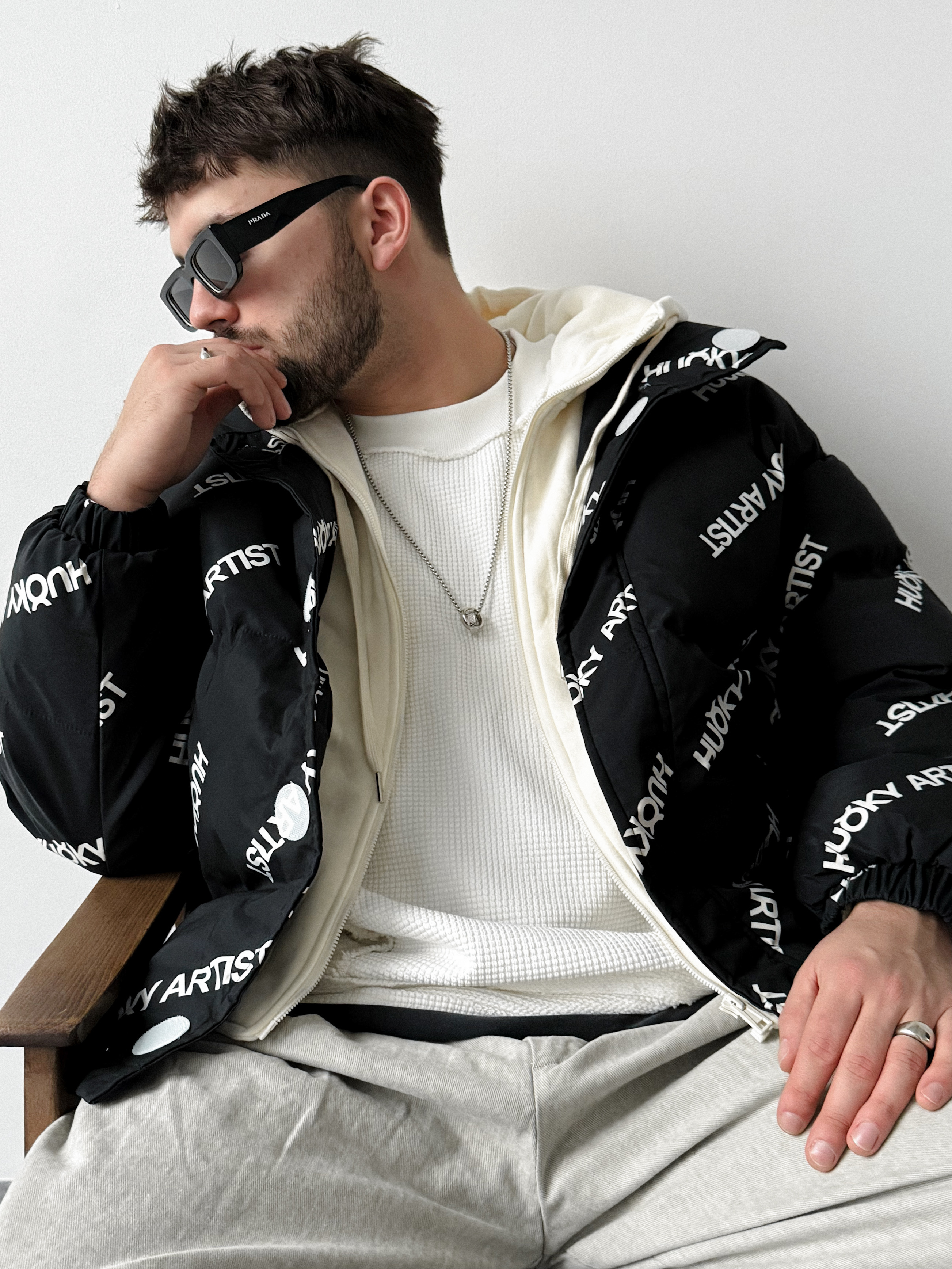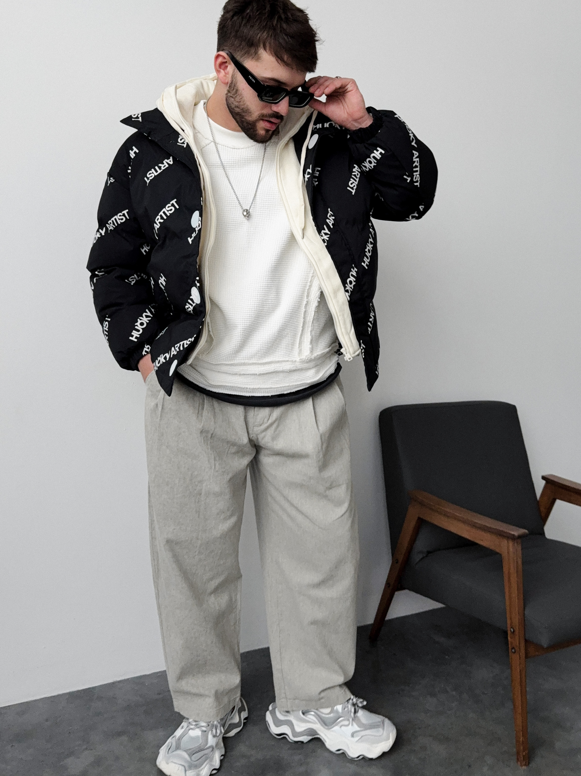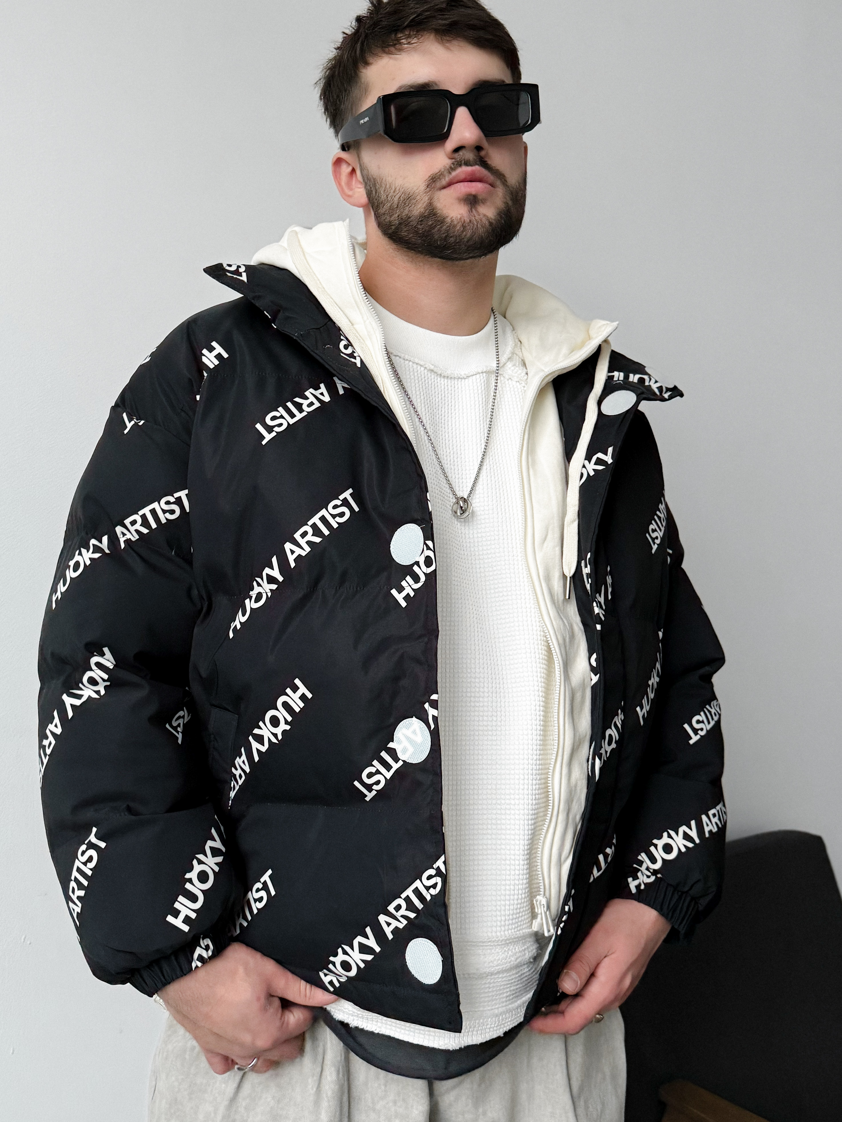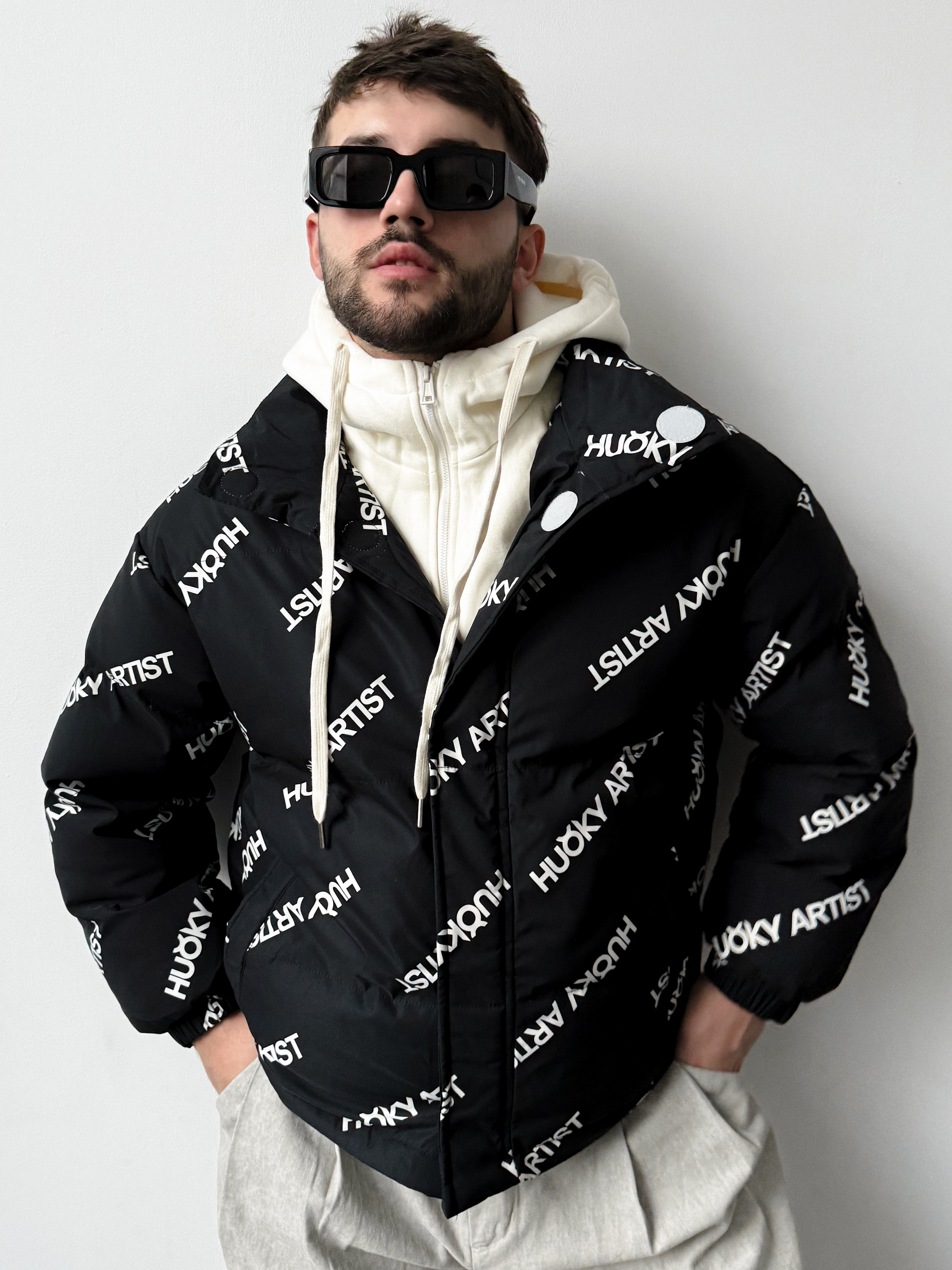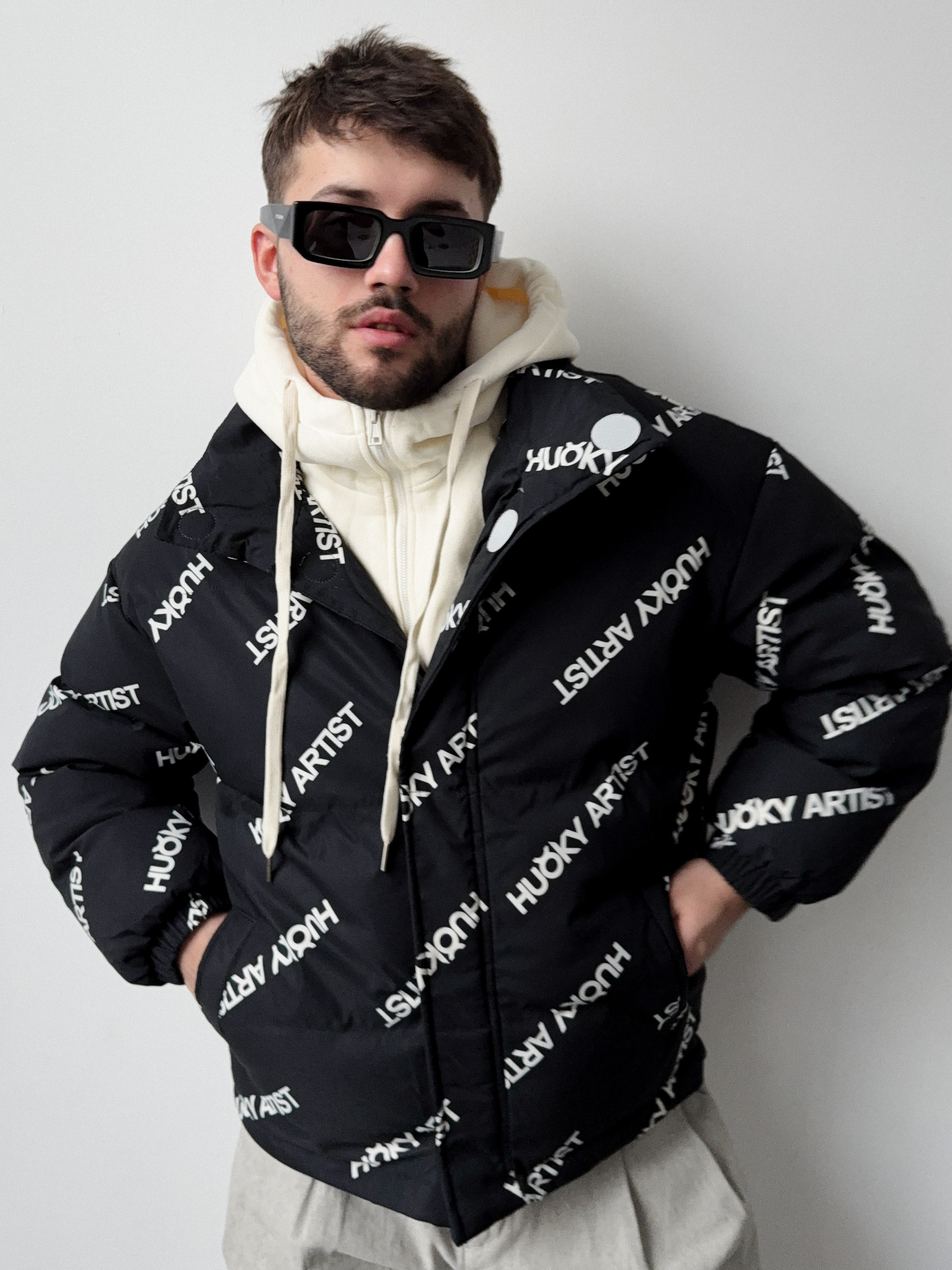 Мужская зимняя укороченная куртка-худи с капюшоном.