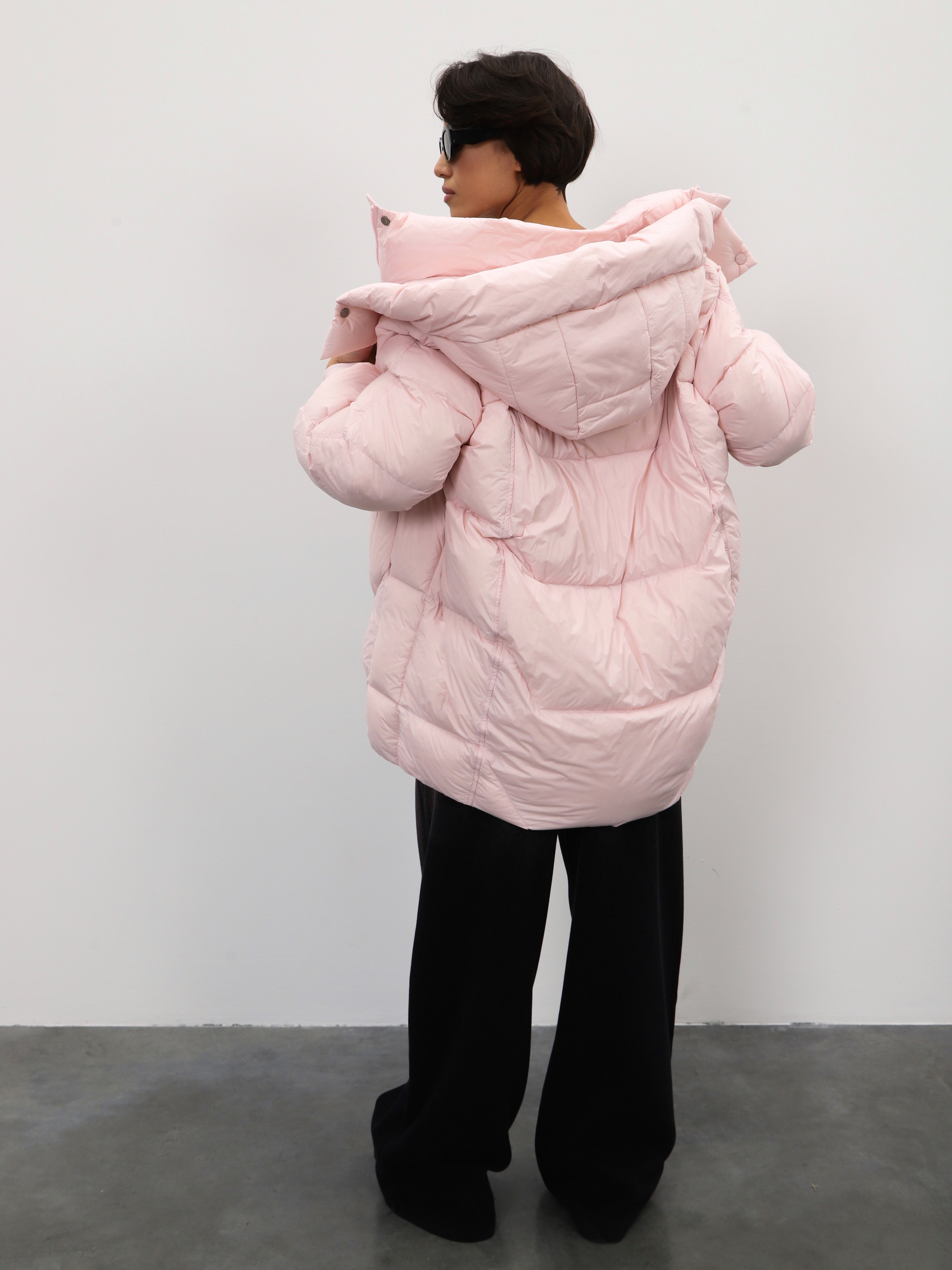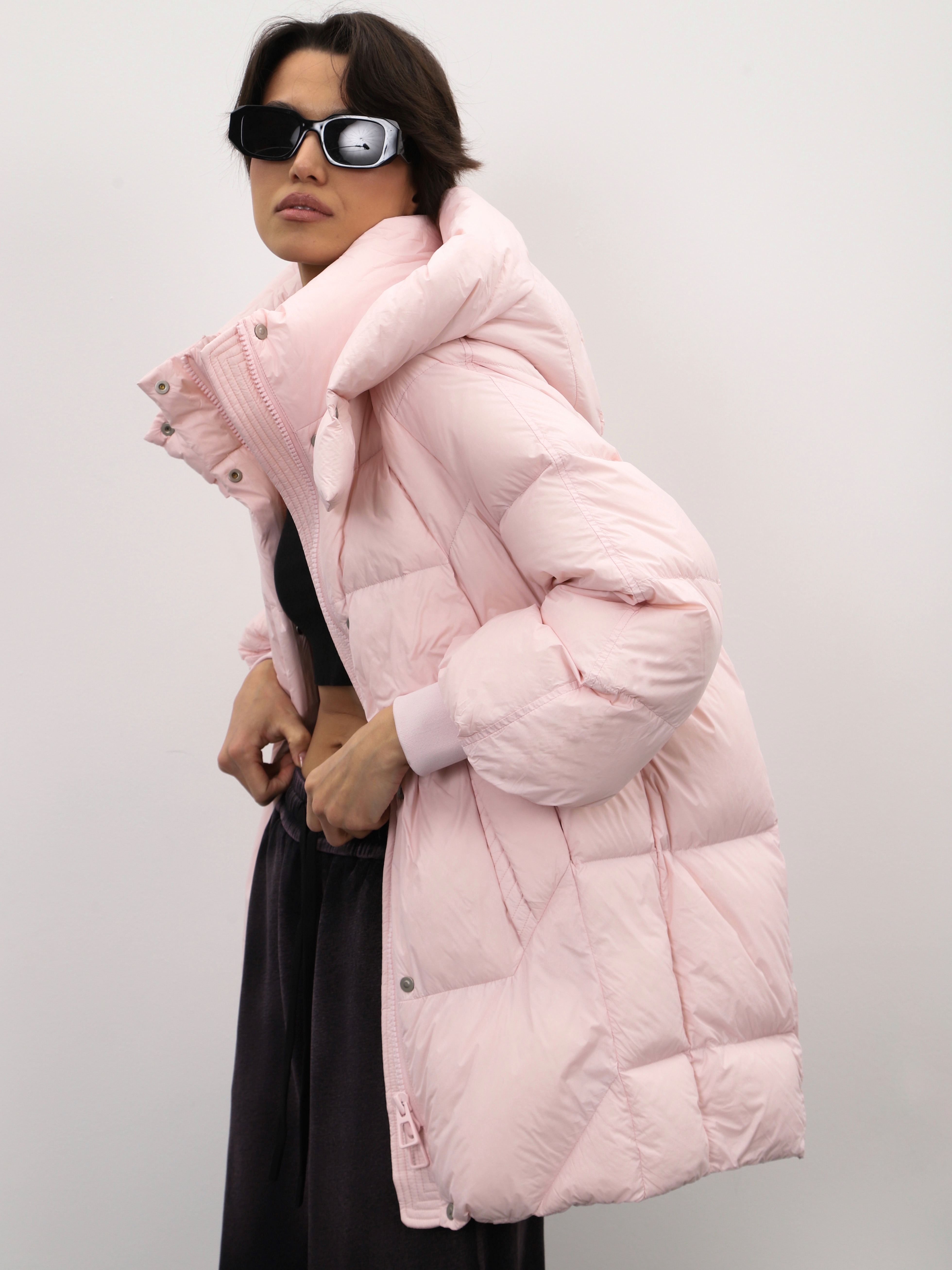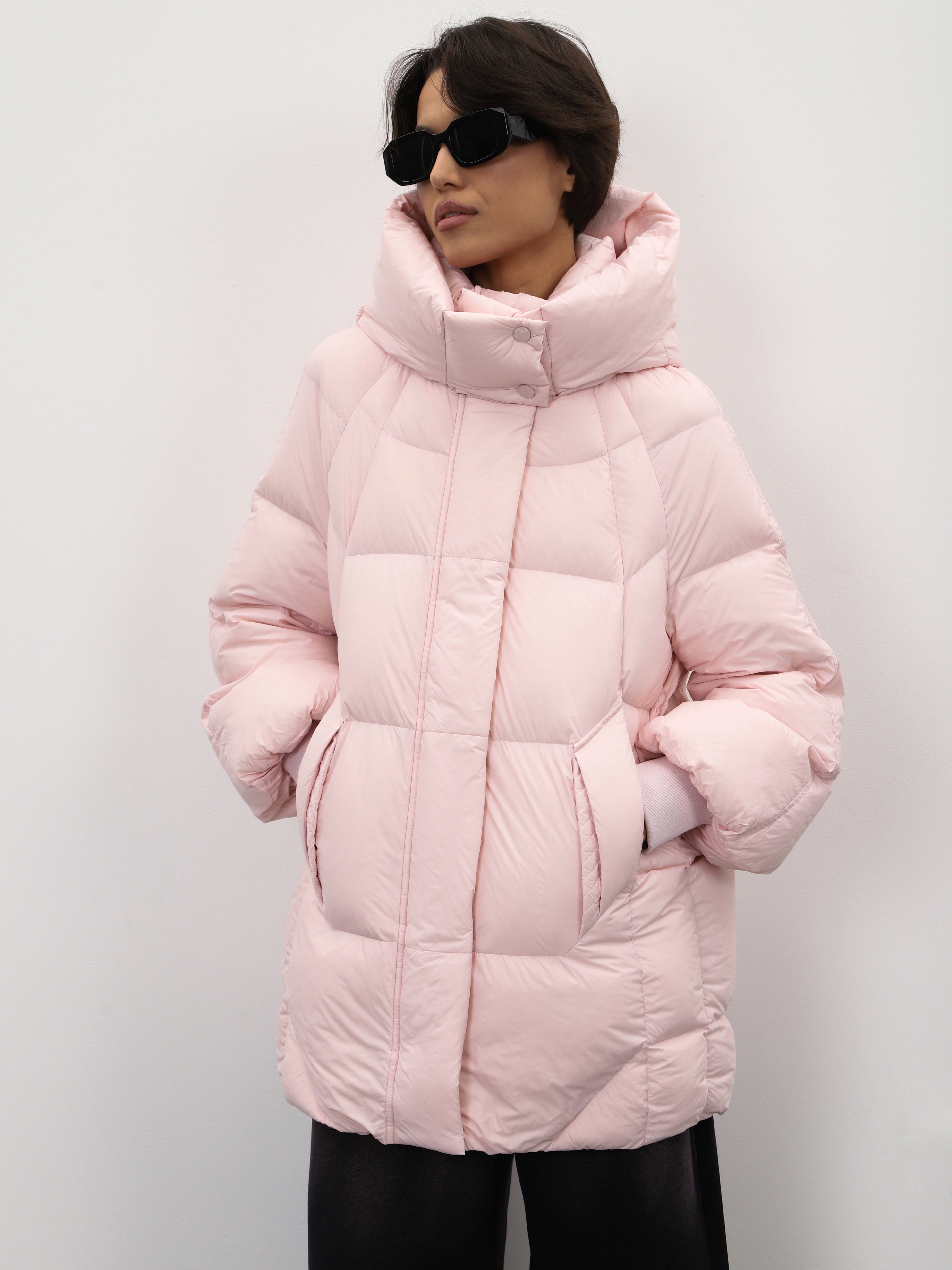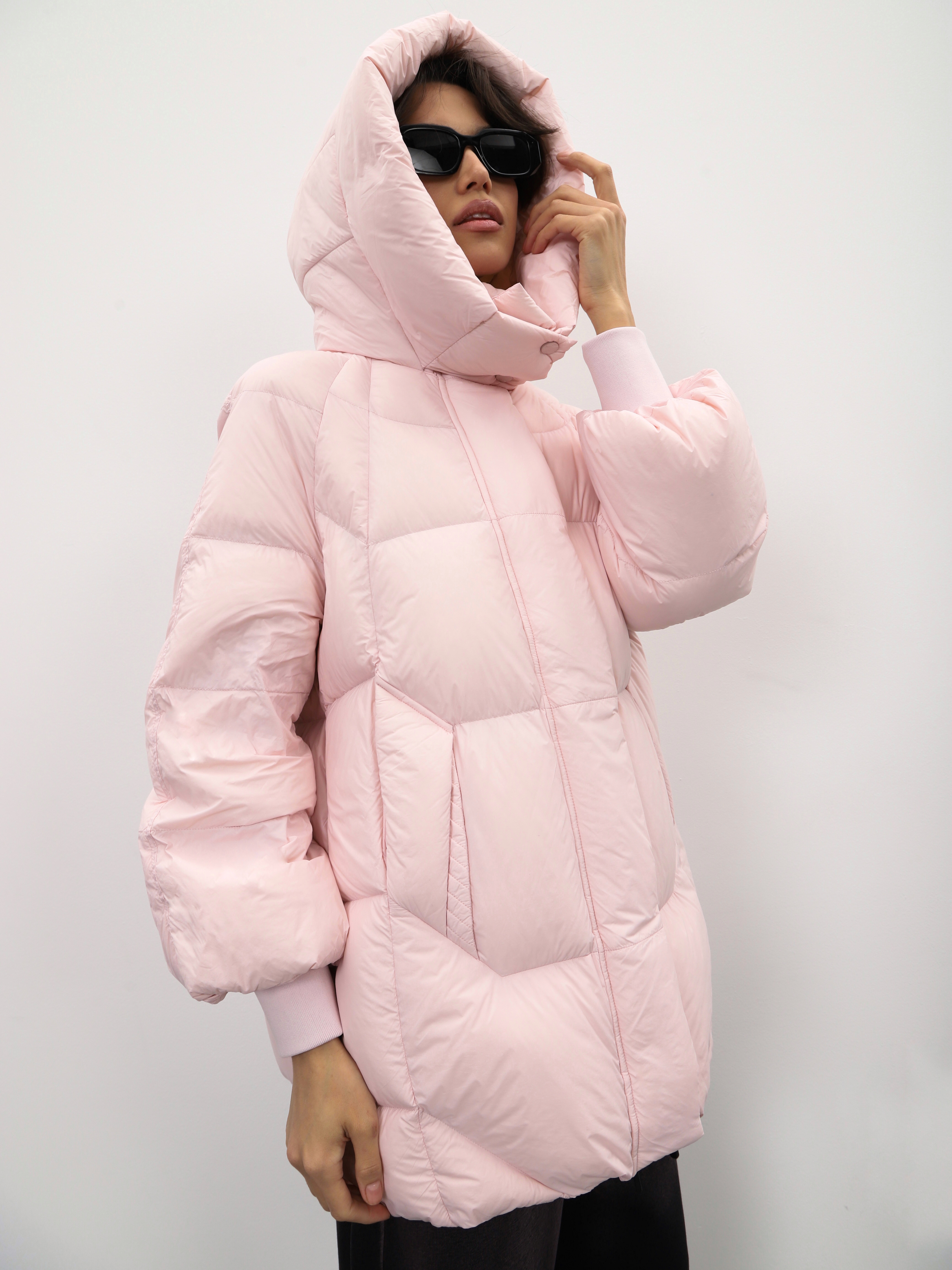Теплая модель женской куртки нежно-розового цвета. Уютный пуховик для создания стильного зимнего образа.