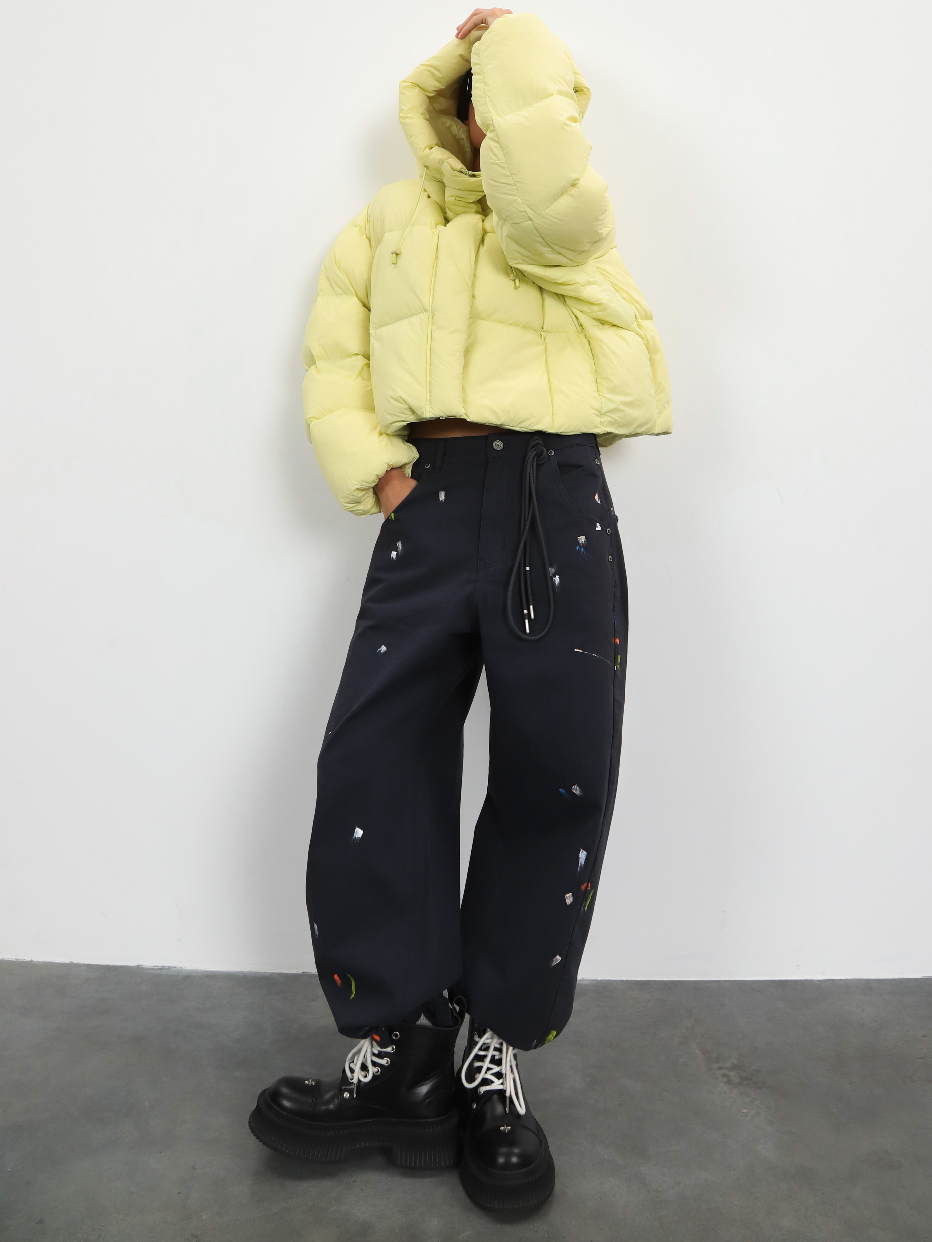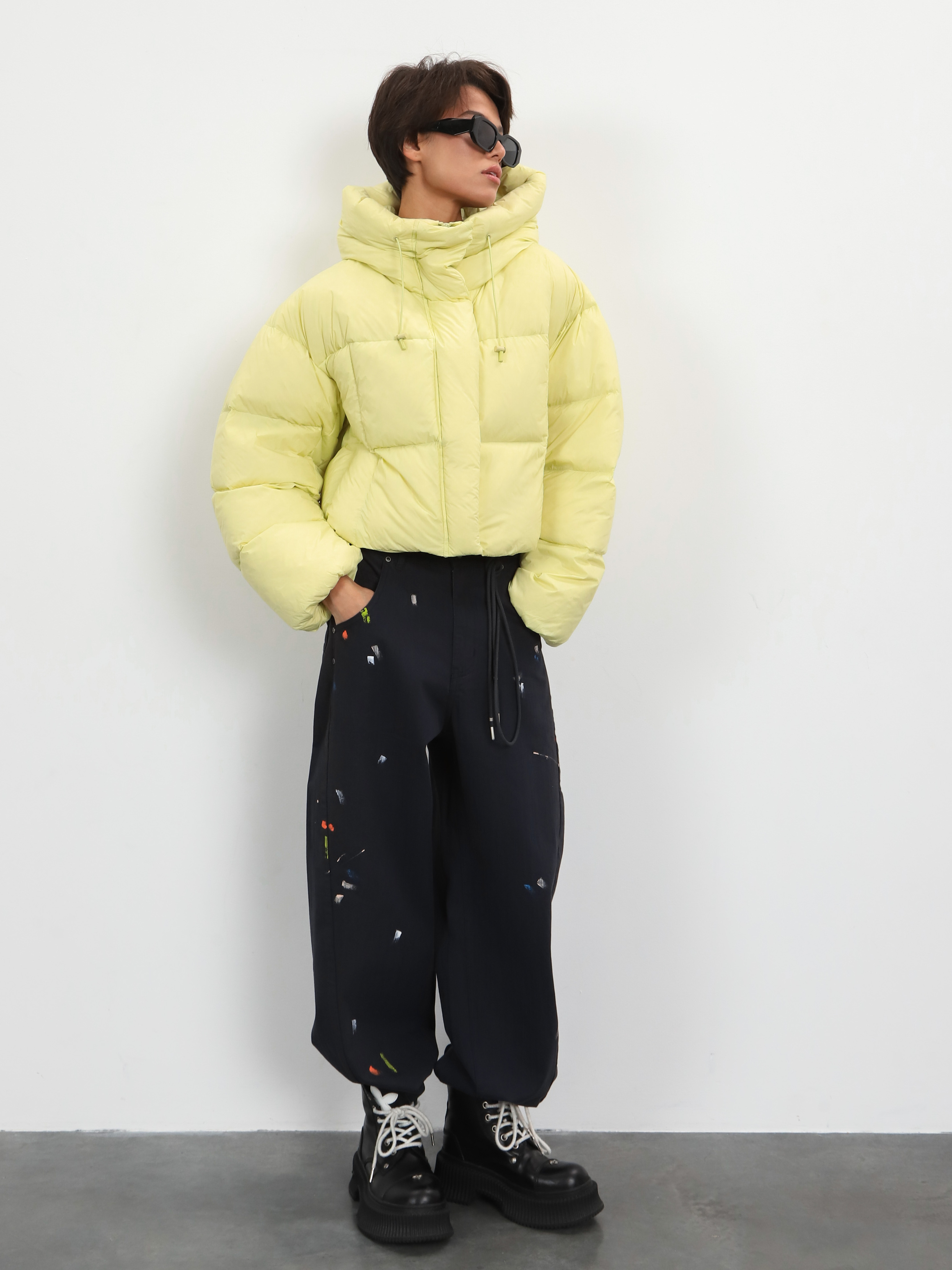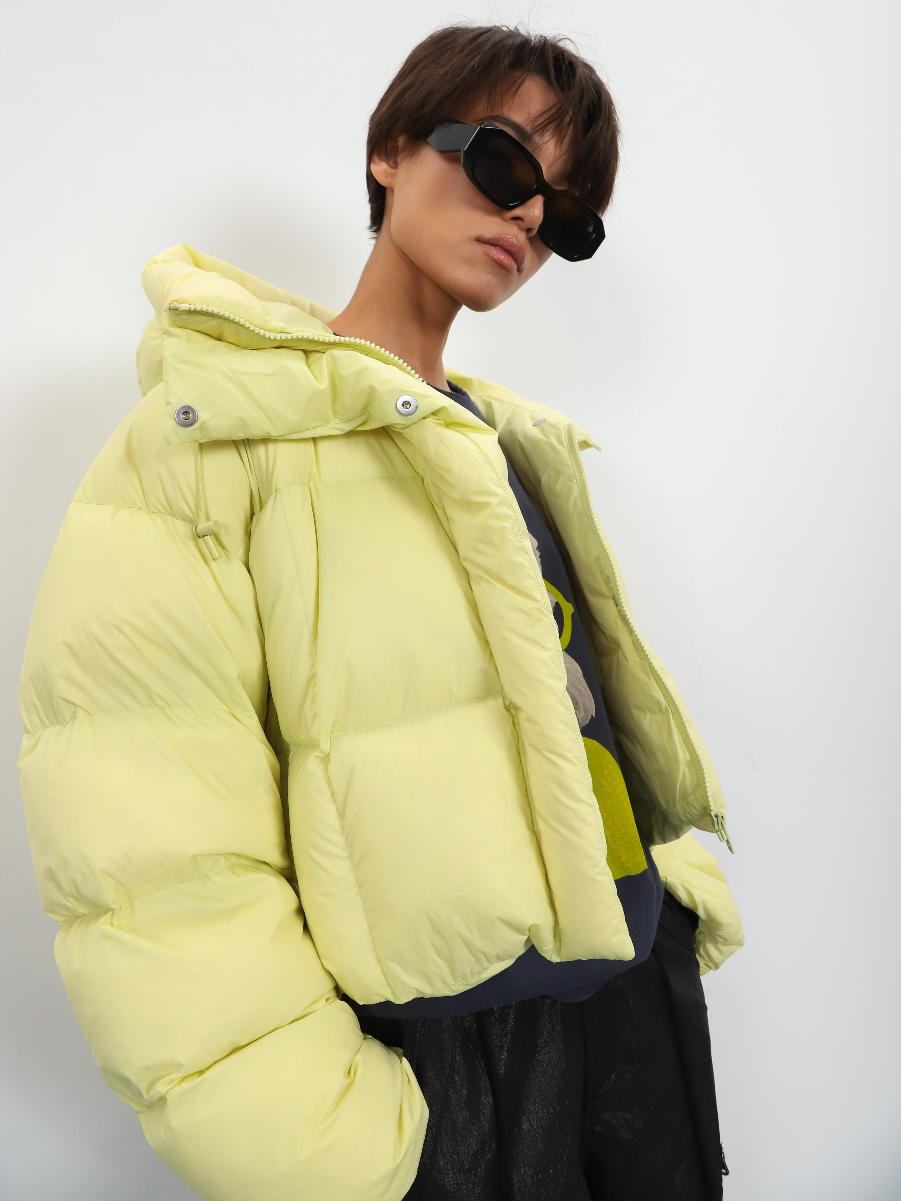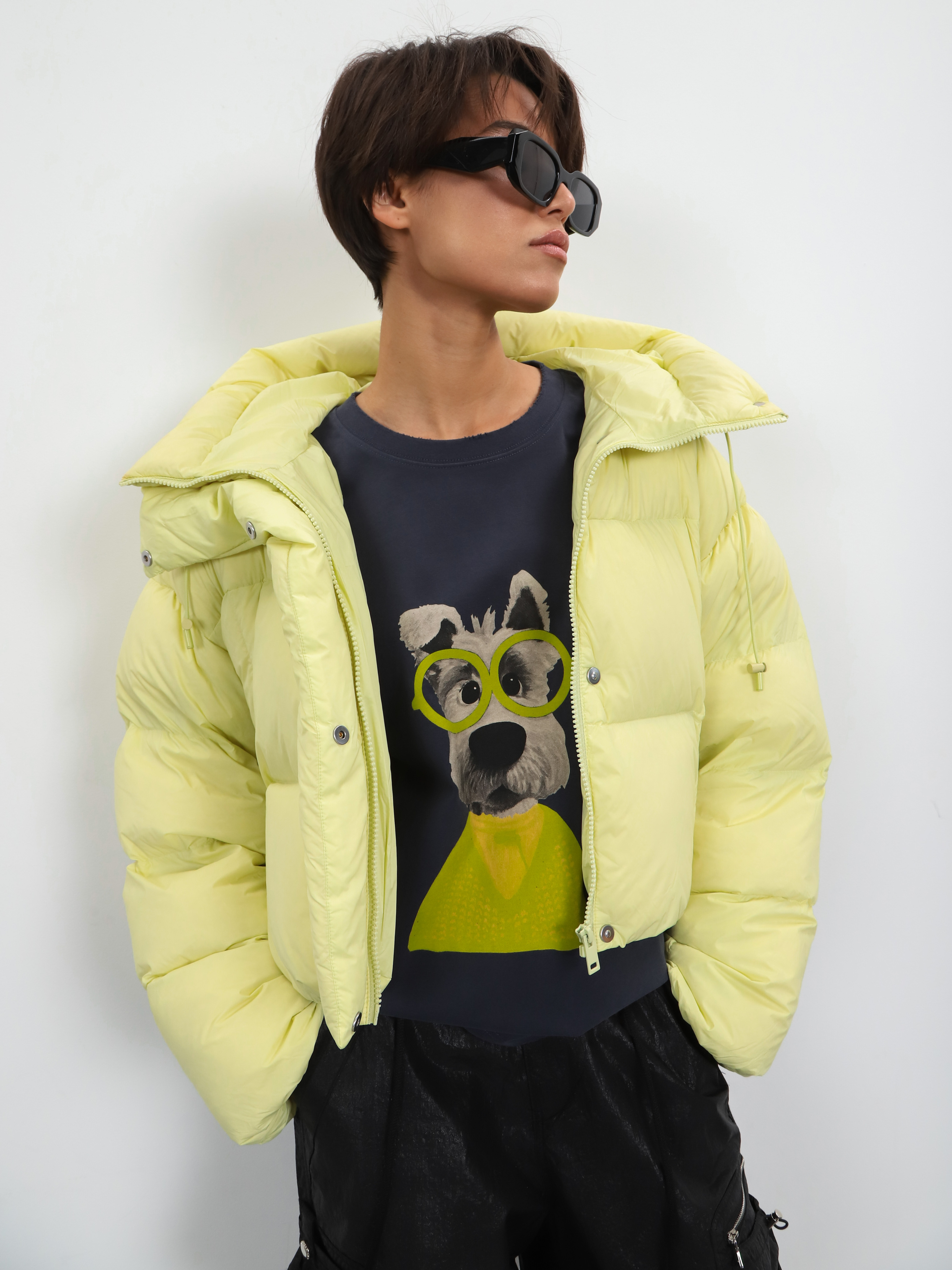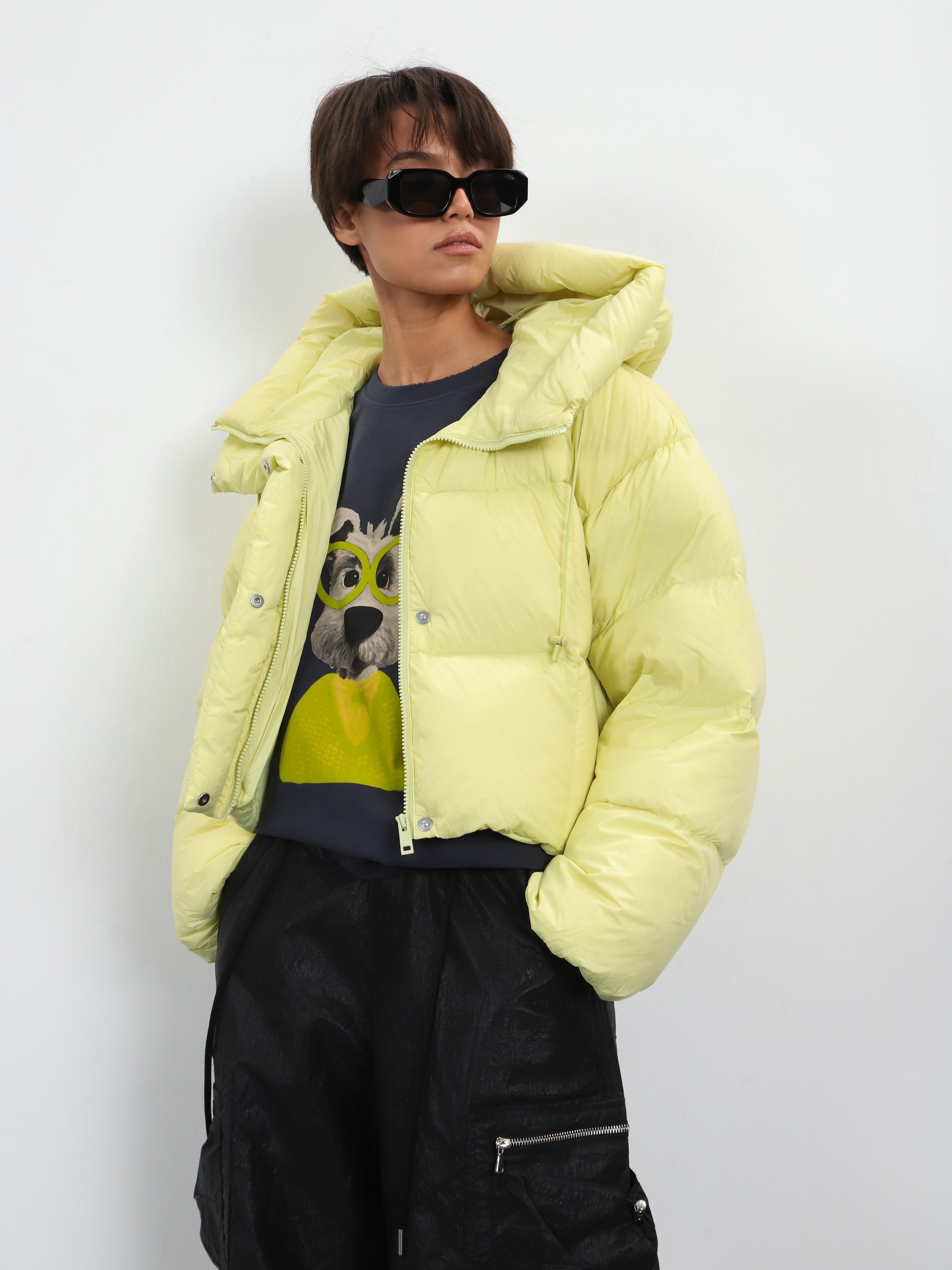 Яркий женский пуховик на молнии для создания стильного зимнего образа. Укороченная модель.