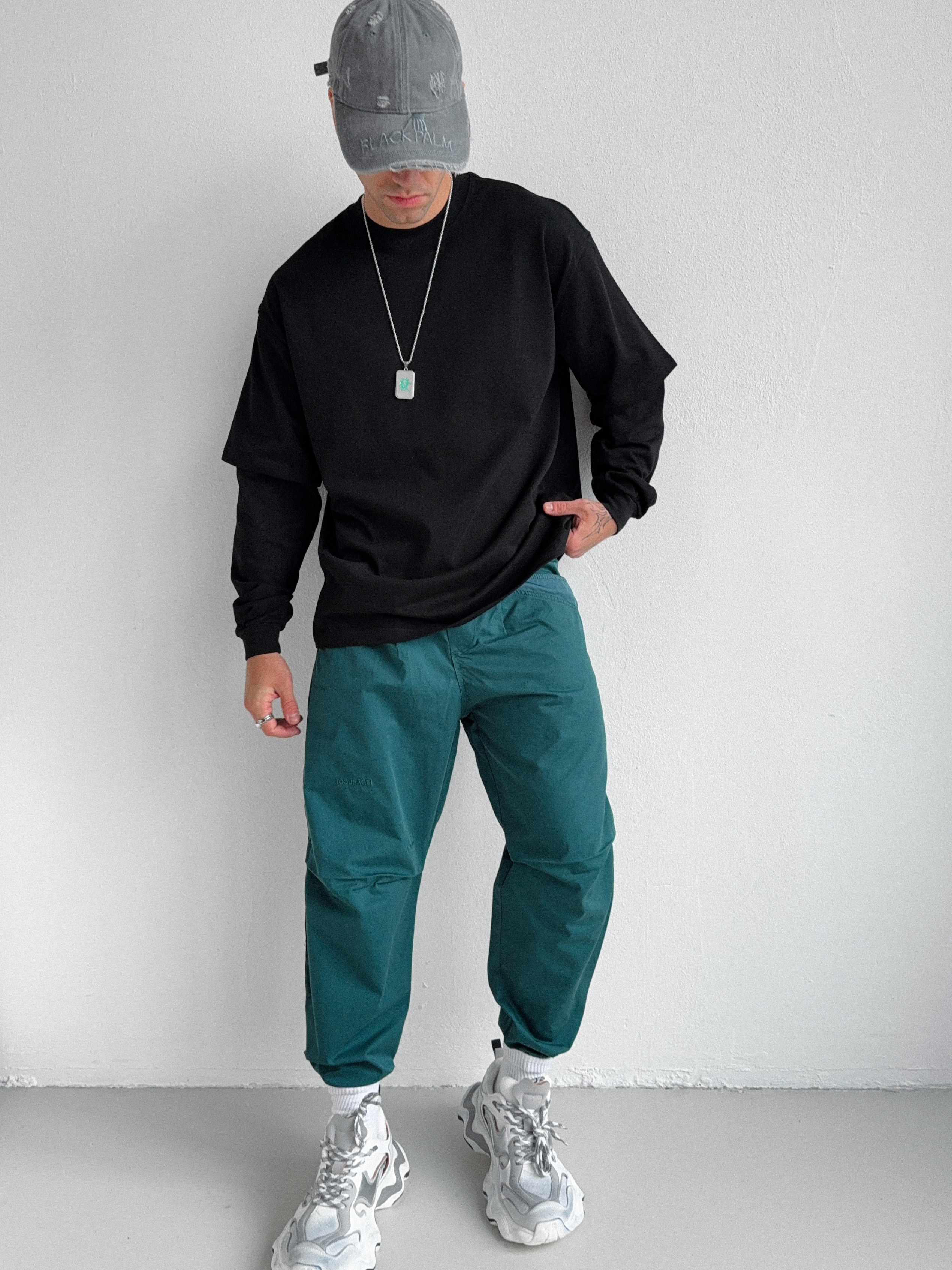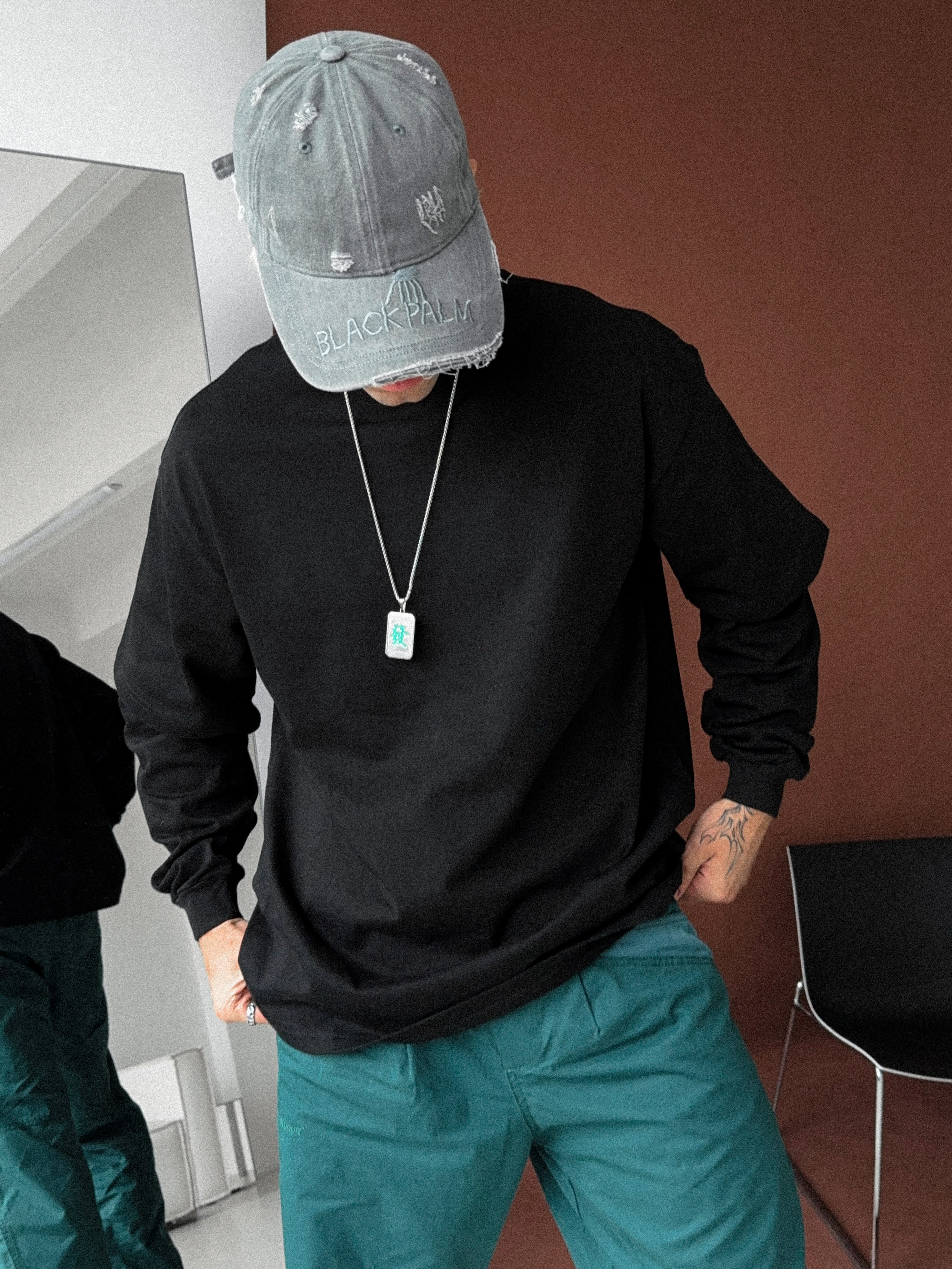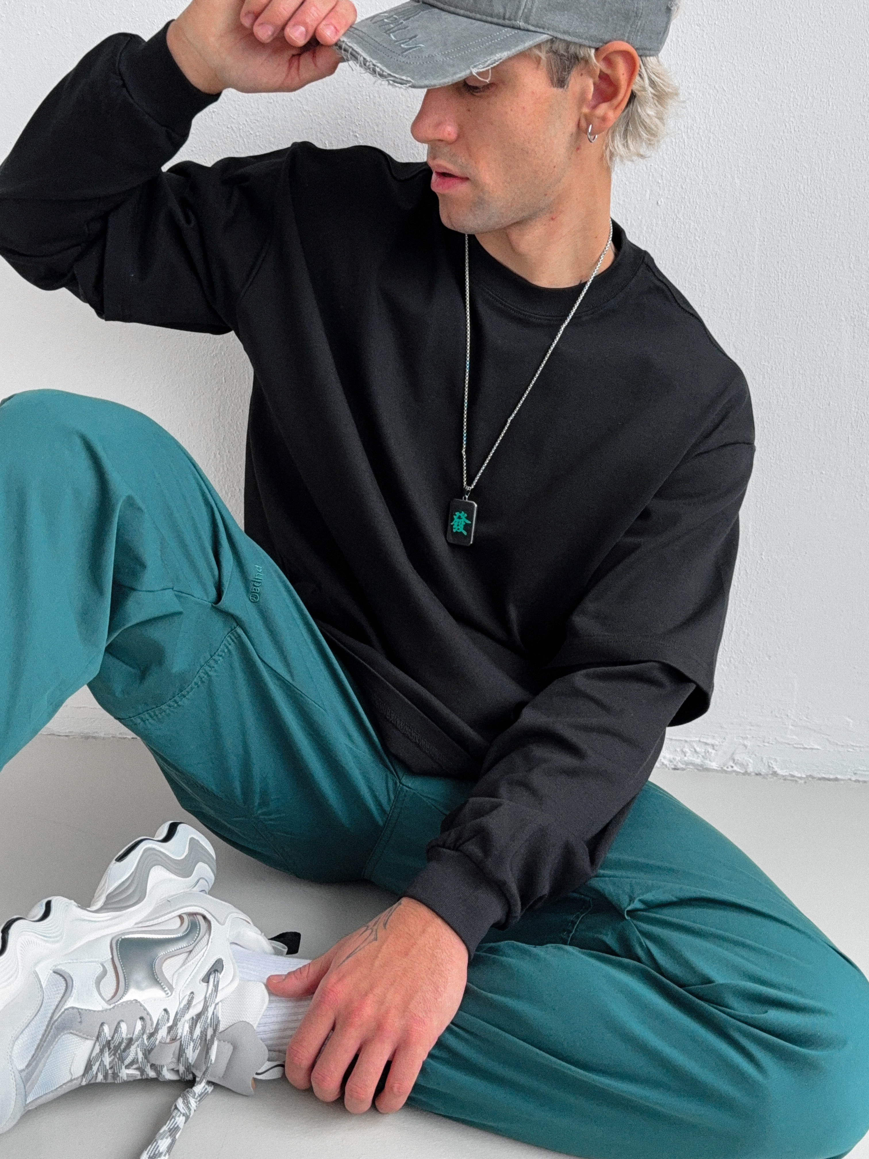 Черный мужской лонгслив-футболка из 100% хлопка. Стильная модель на каждый день.