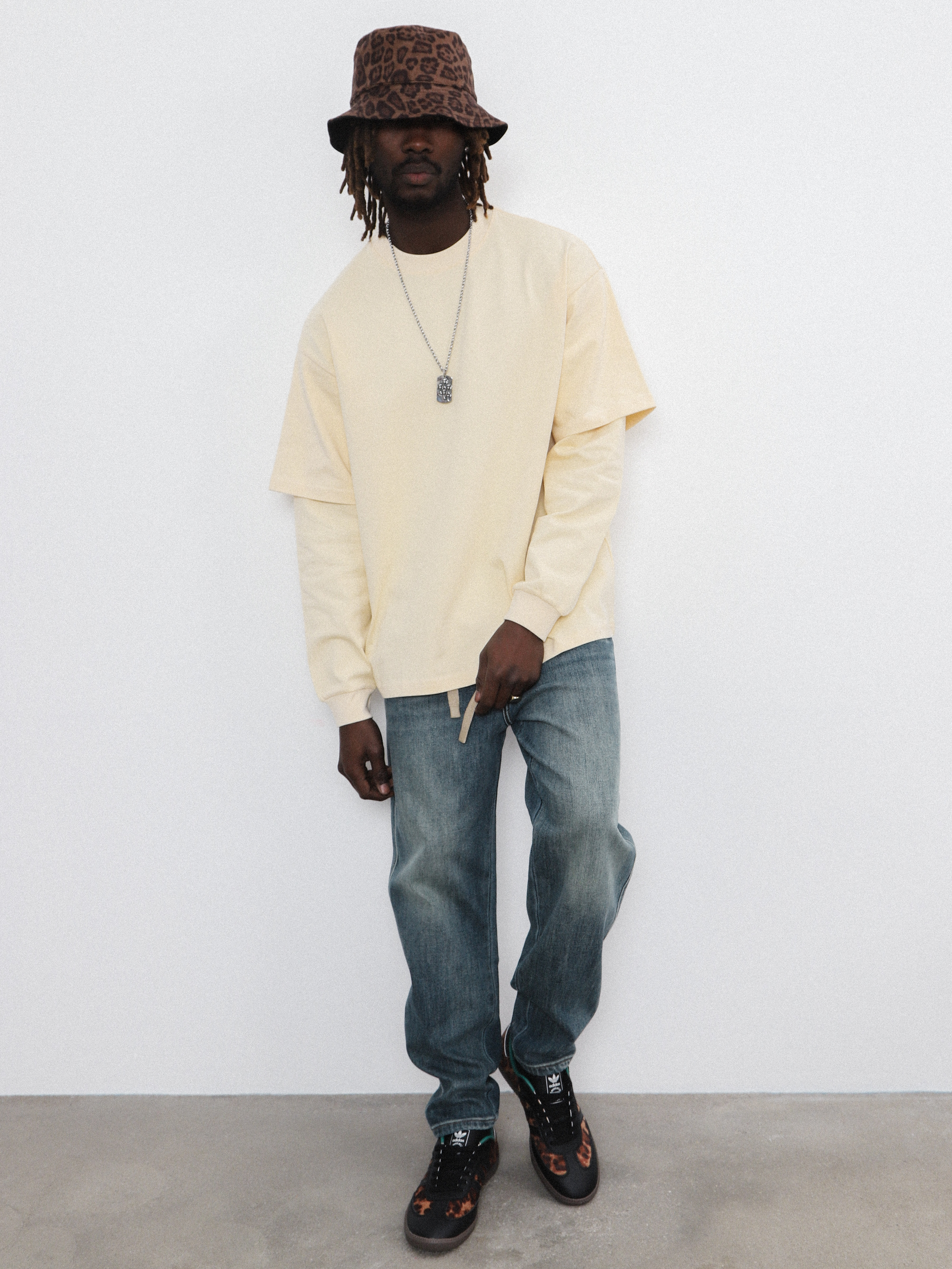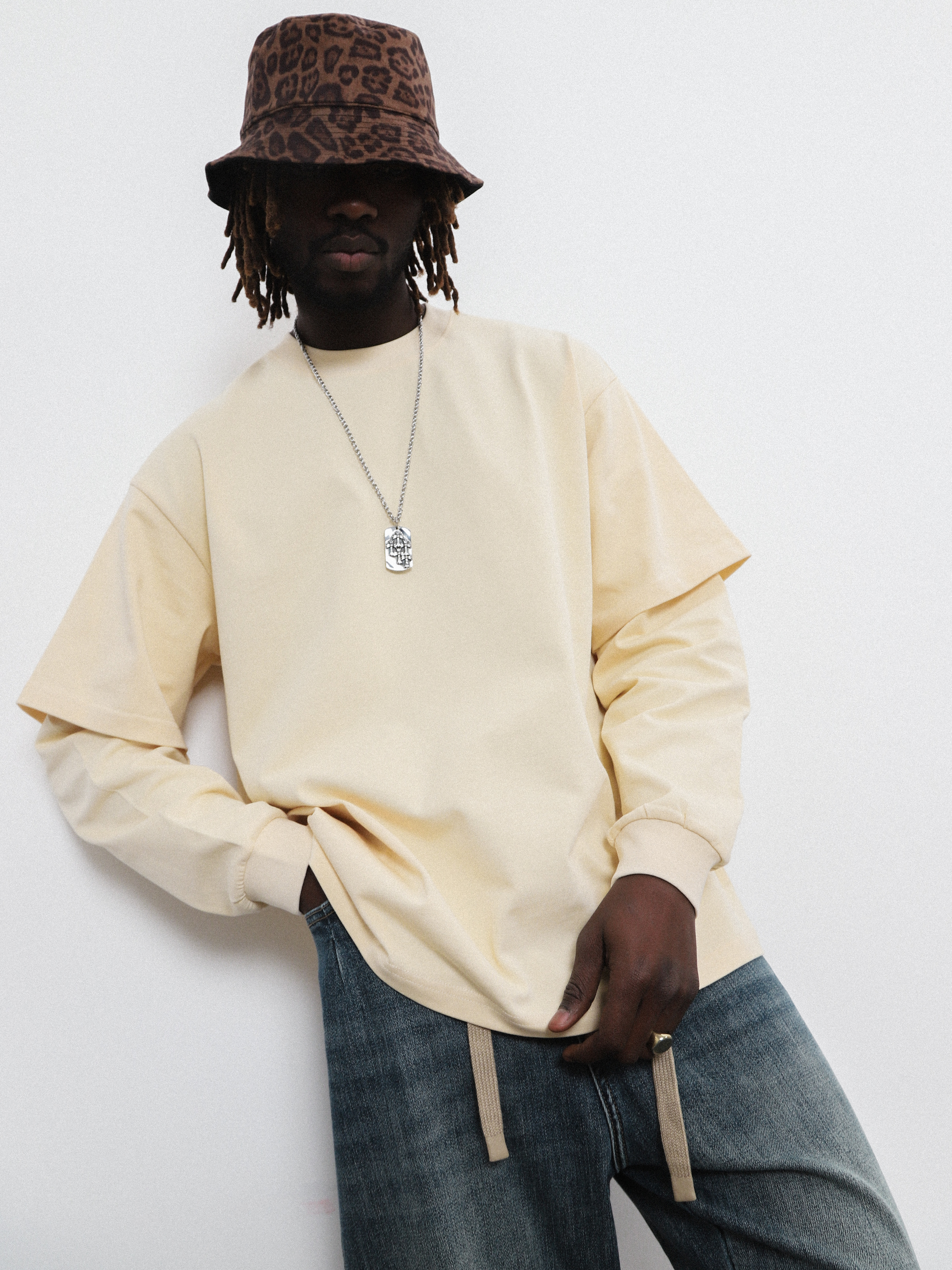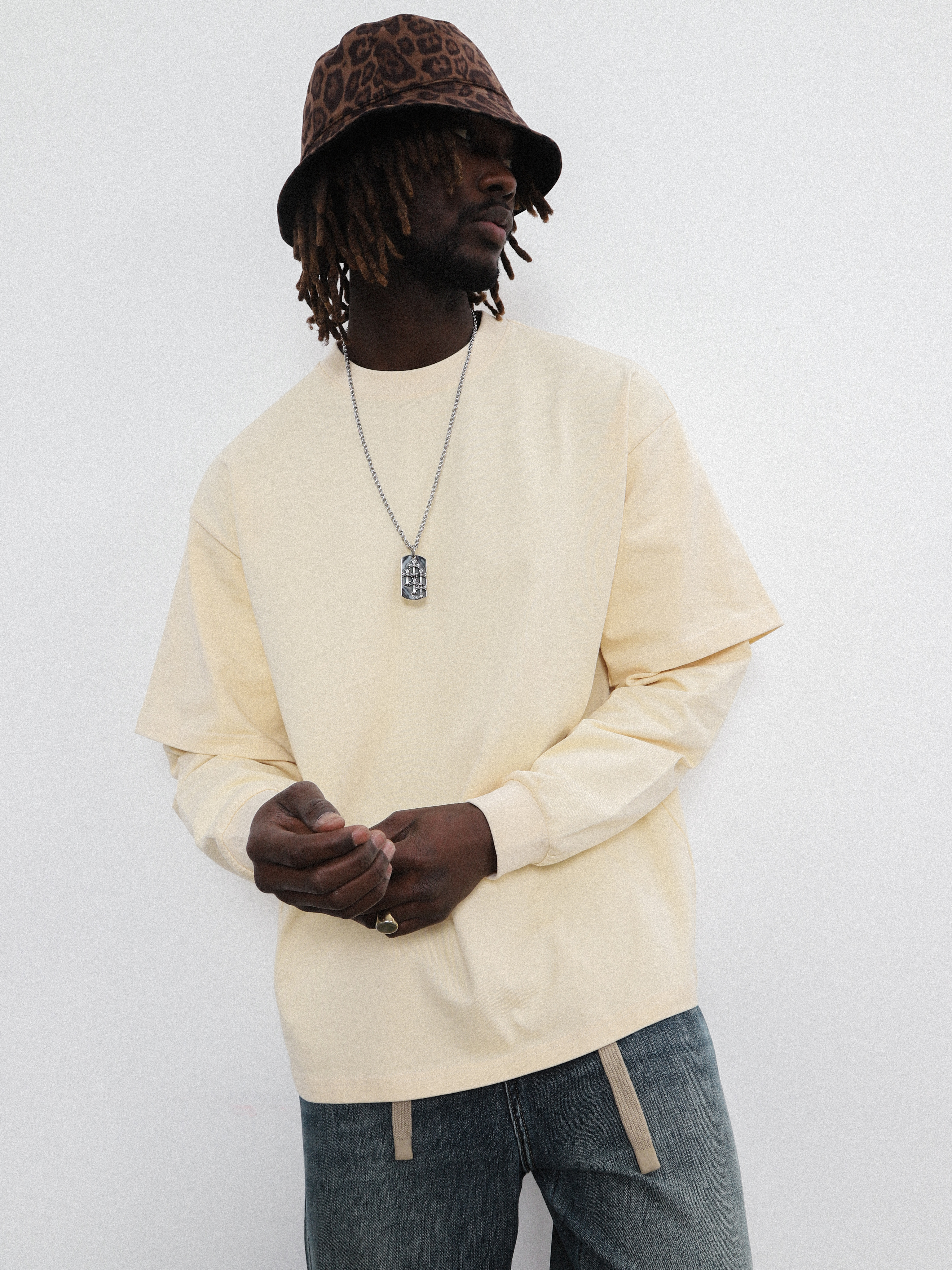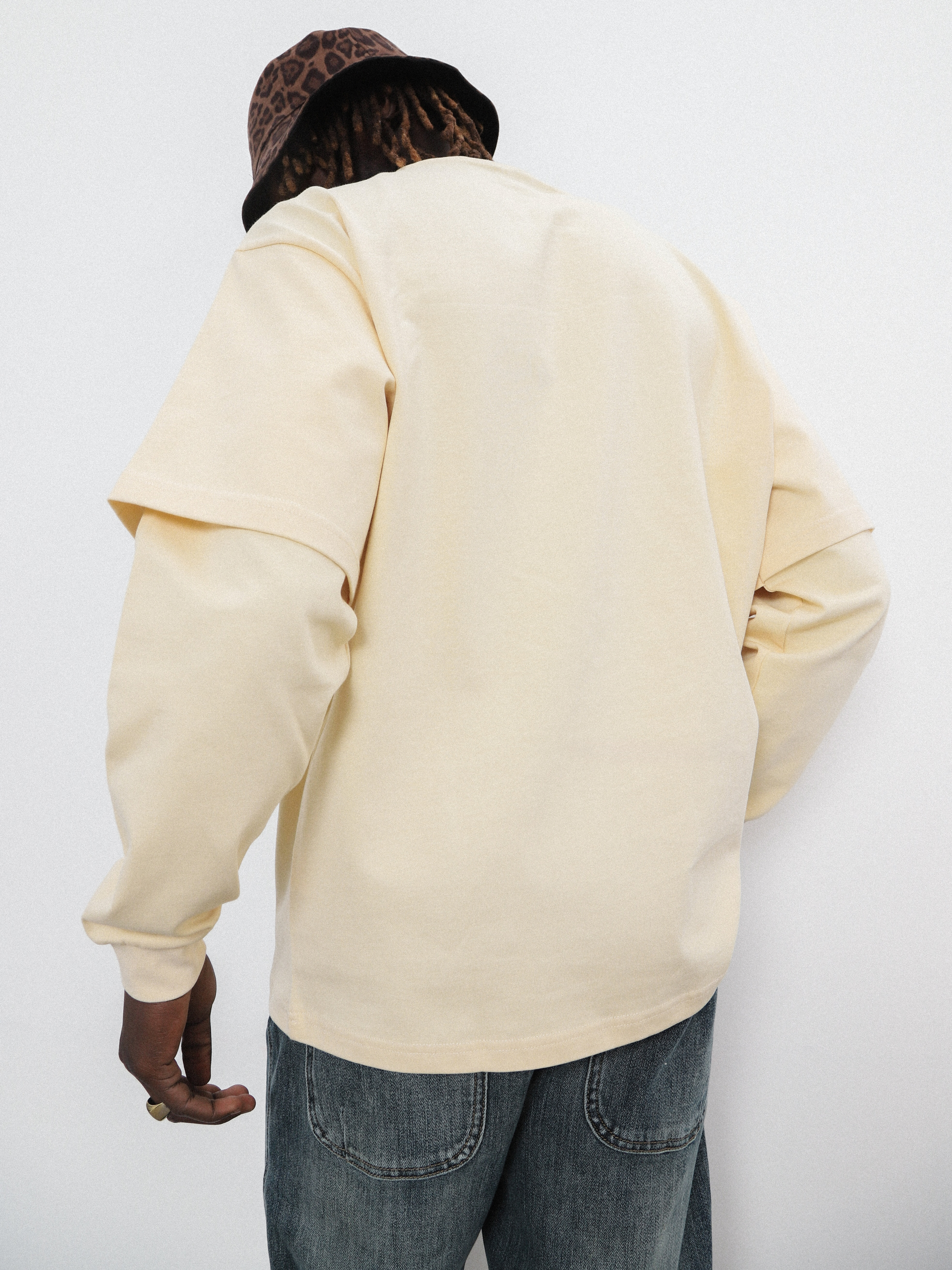 Мужской лонгслив-футболка ванильного цвета. Стильная модель из 100% хлопка на каждый день.