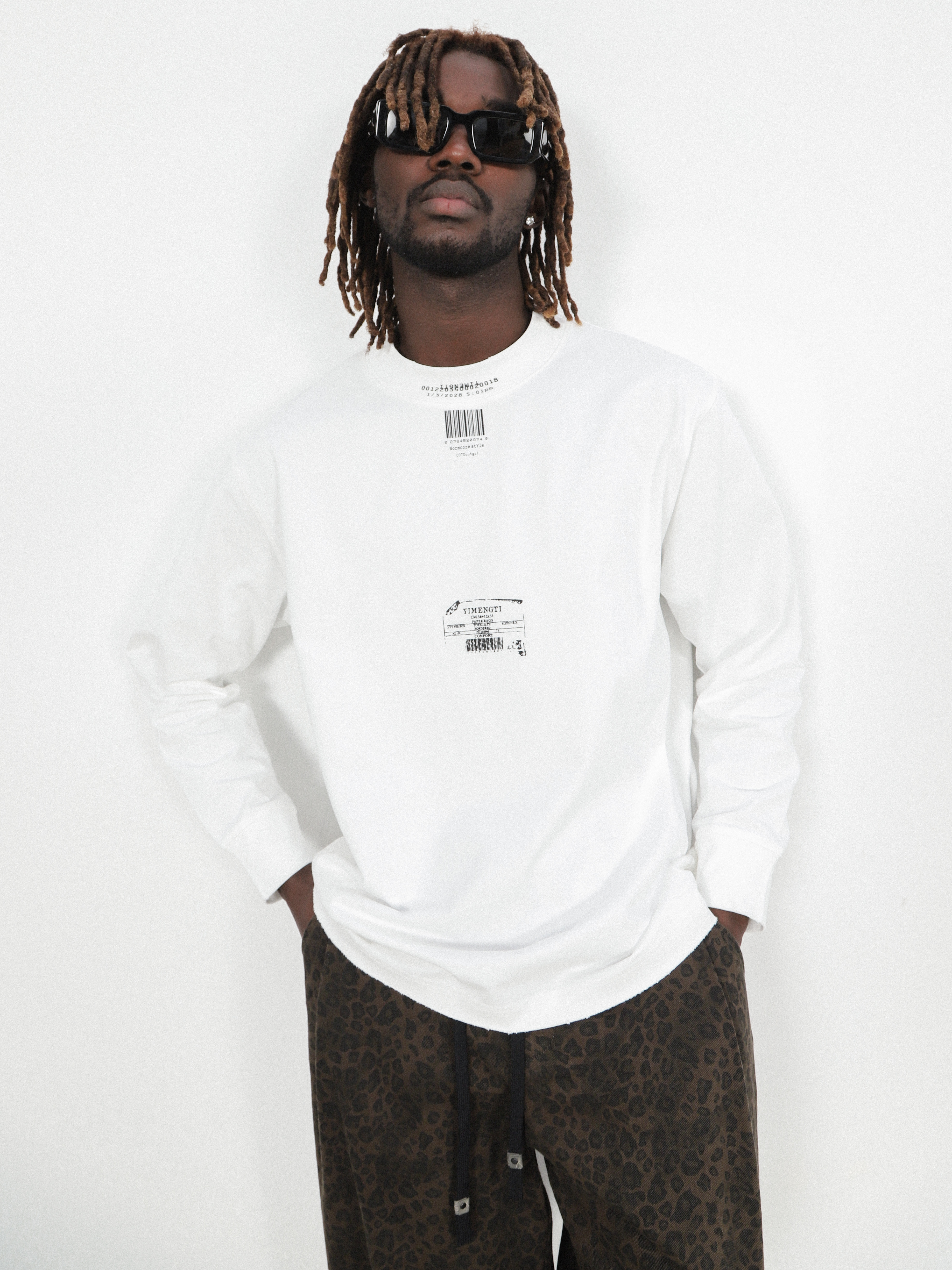 Белый мужской лонгслив с принтом для создания стильных образов на каждый день.
