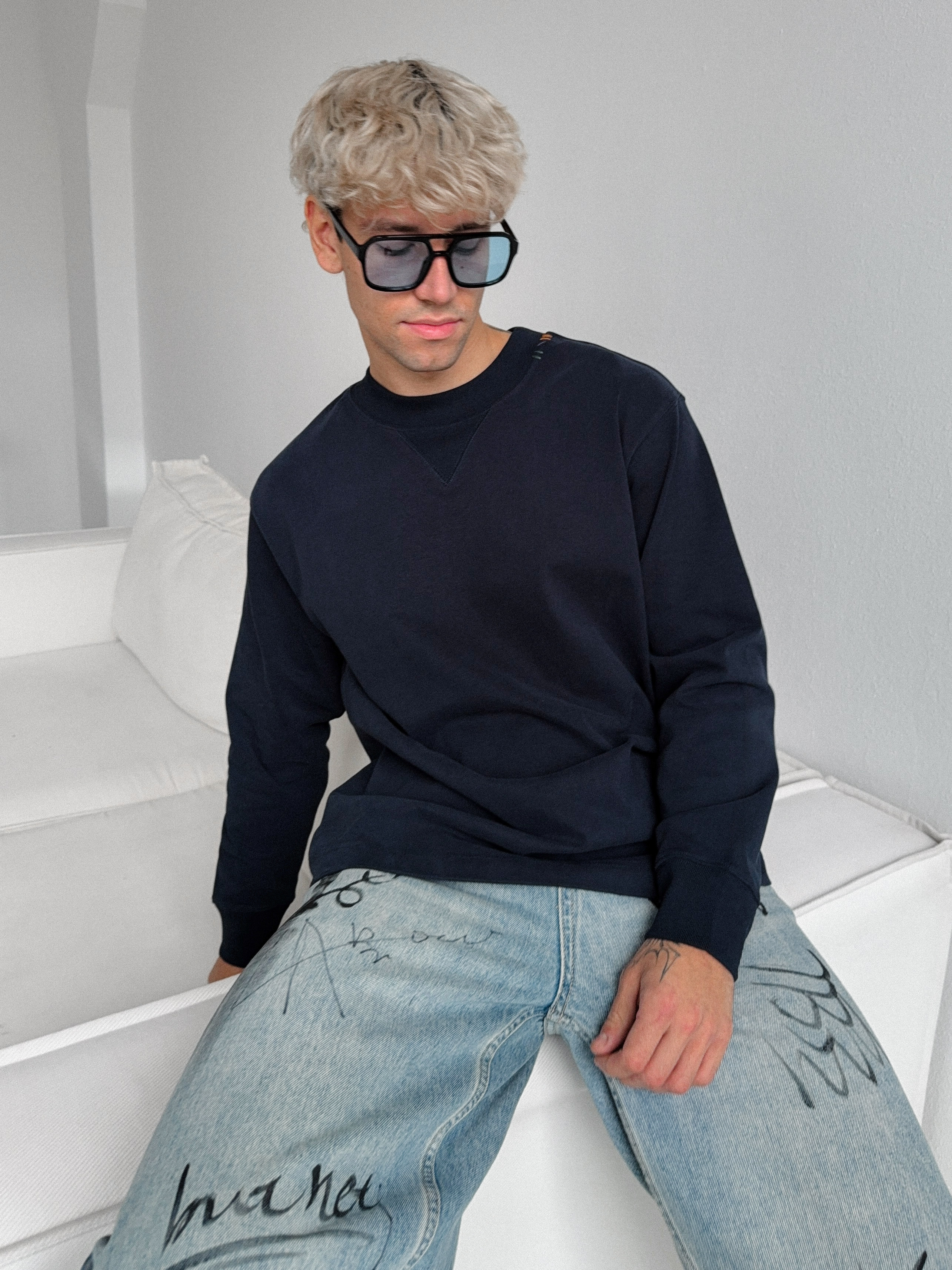 Мужской лонгслив темно-синего цвета. Идеальный вариант для повседневных образов.