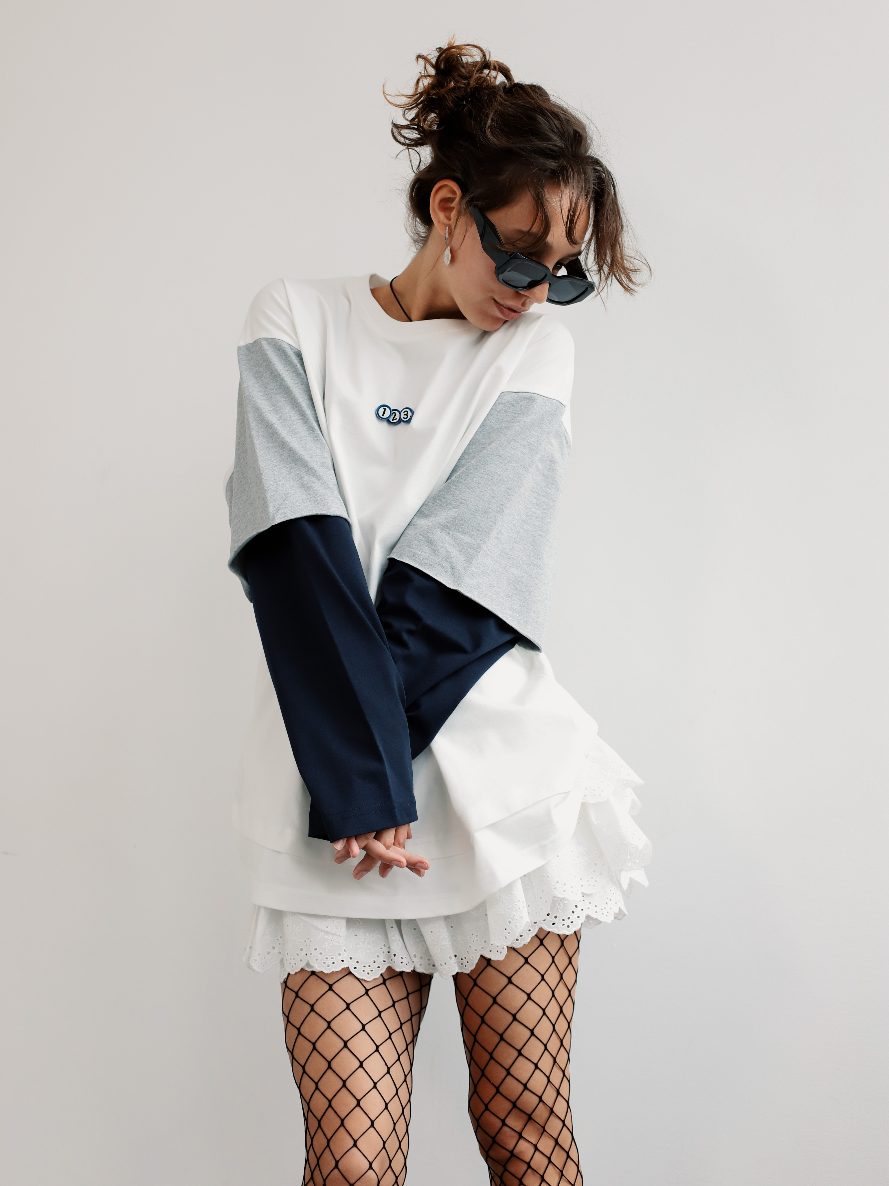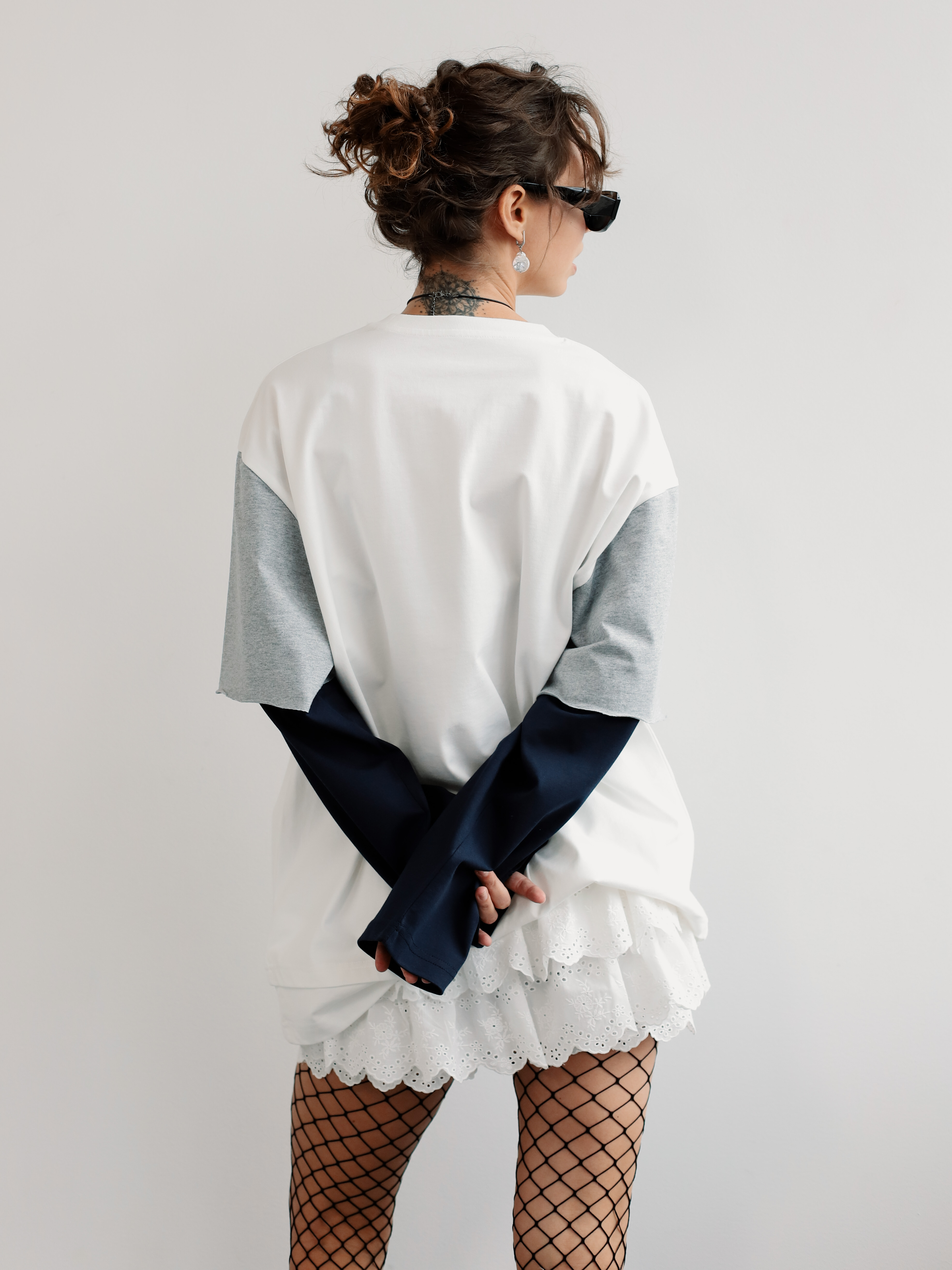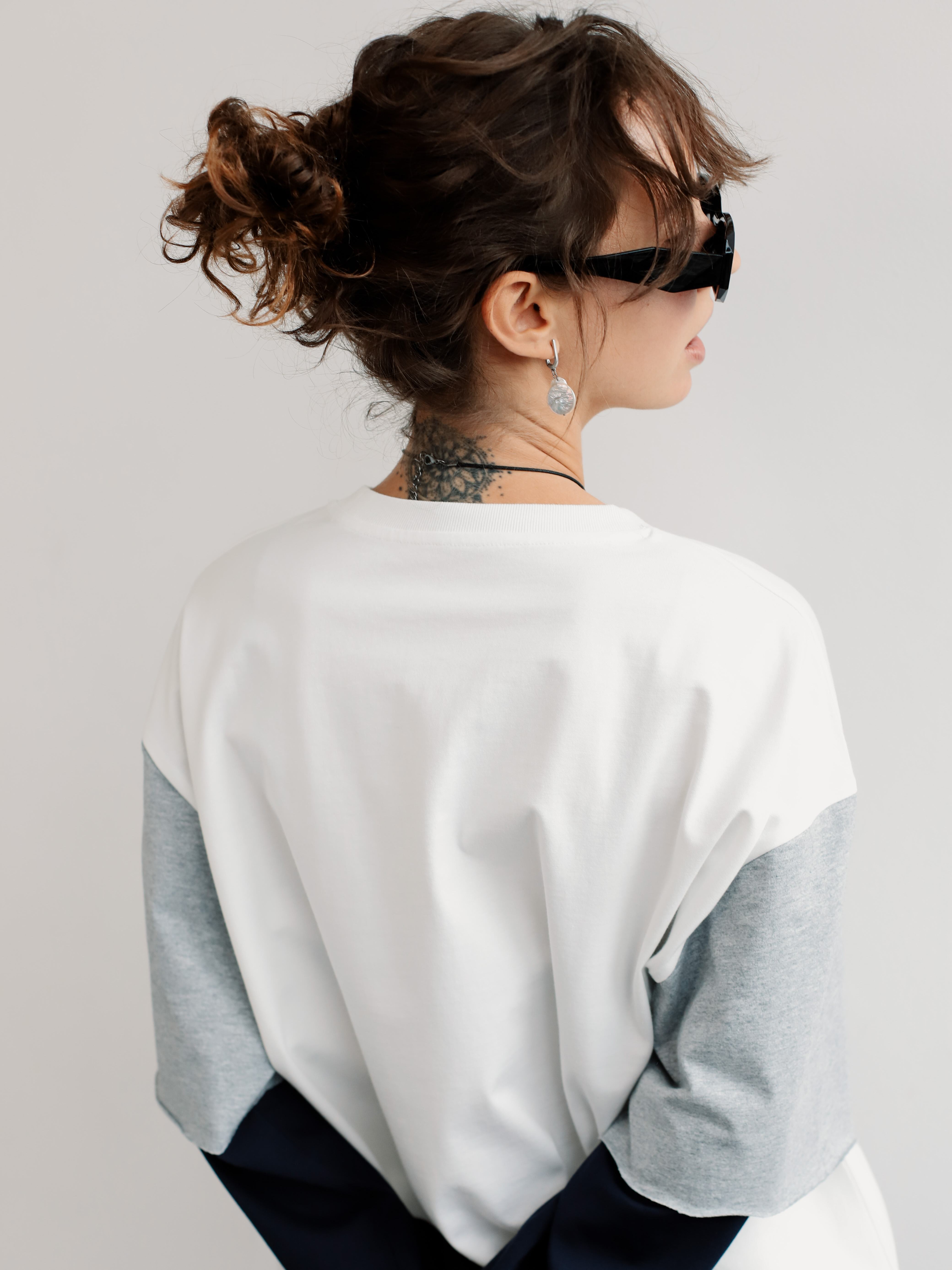 Лонгслив с имитацией футболки и контрастным рукавом. Стильная модель для создания небанального повседневного образа.