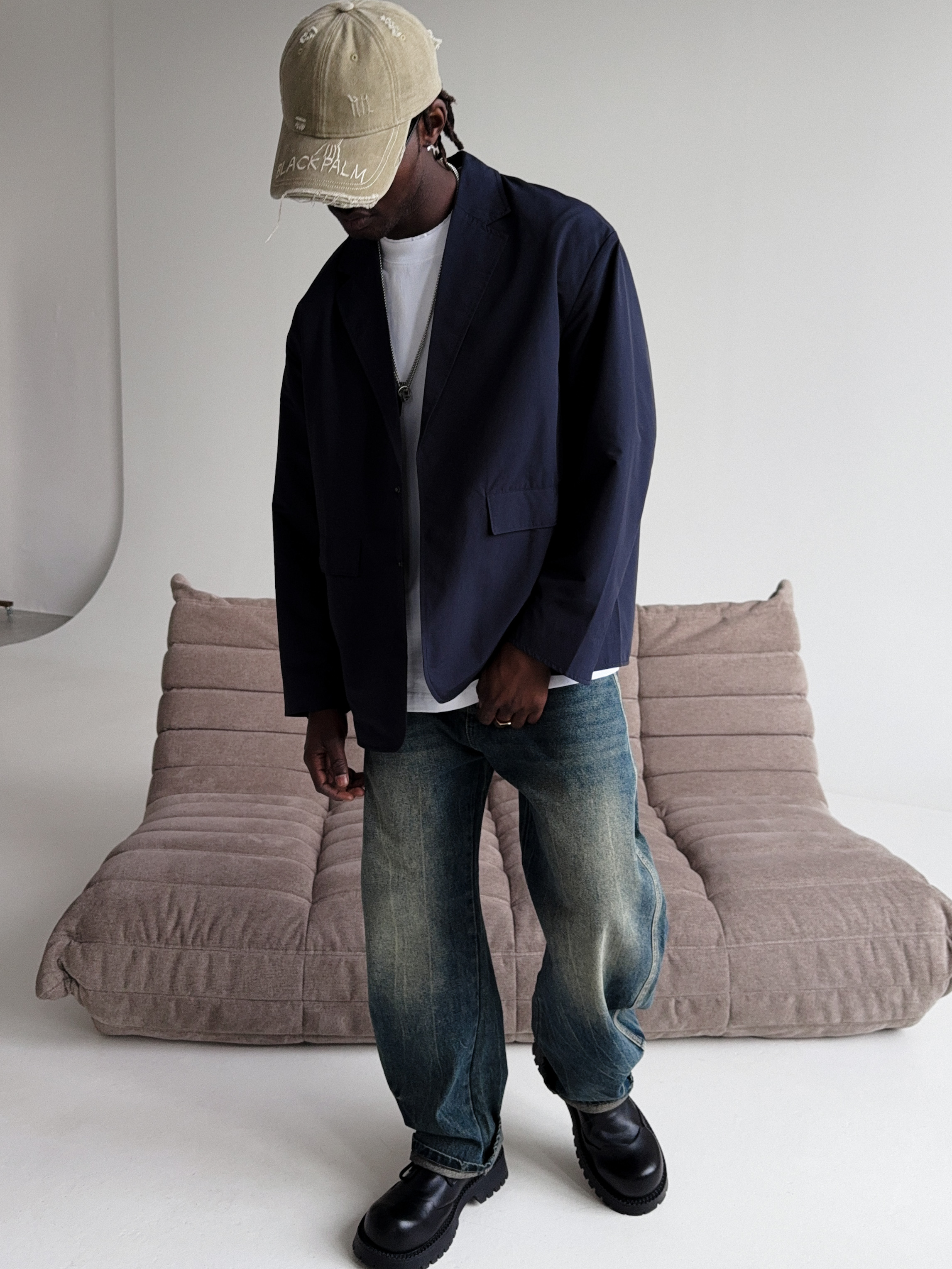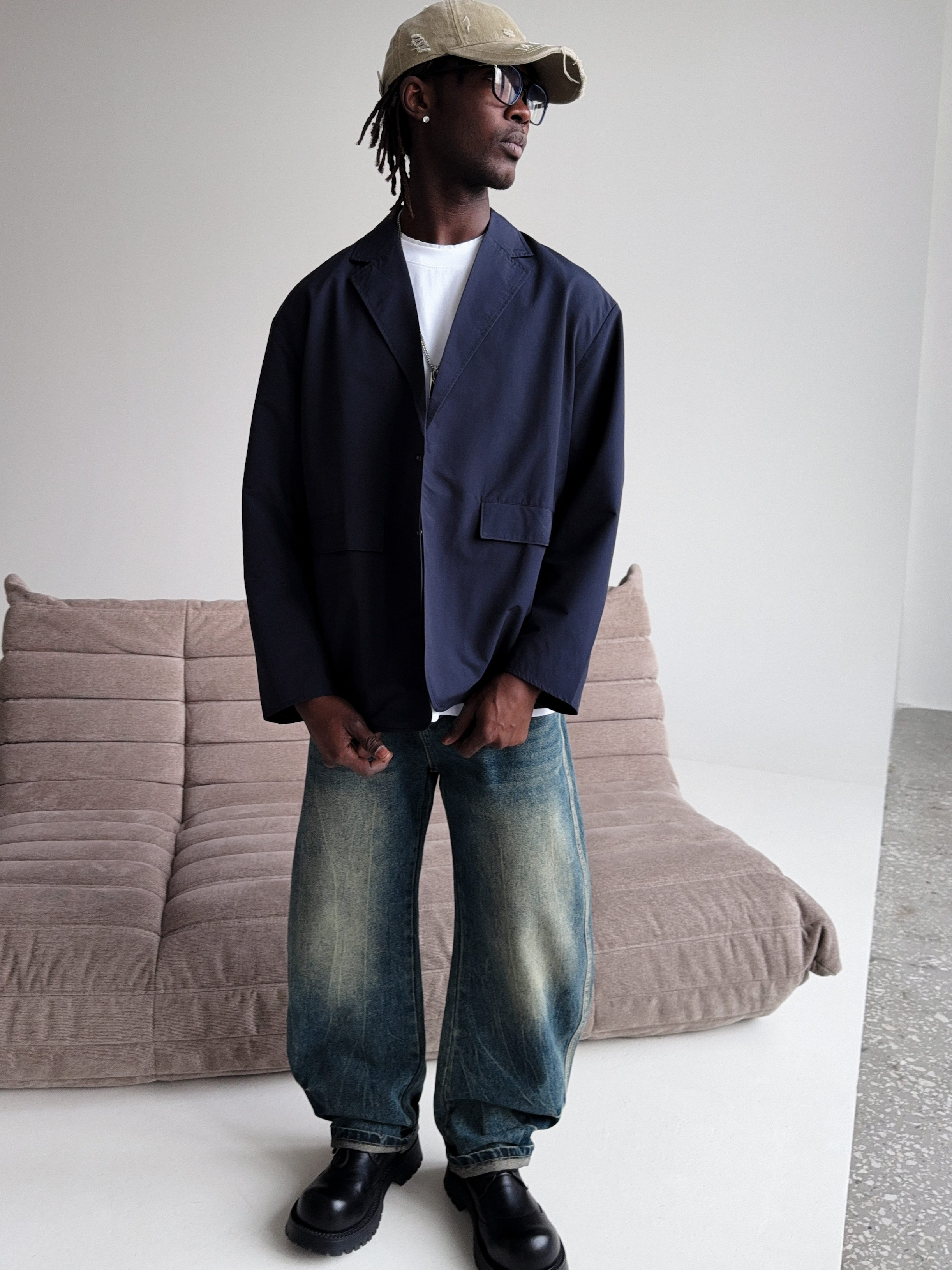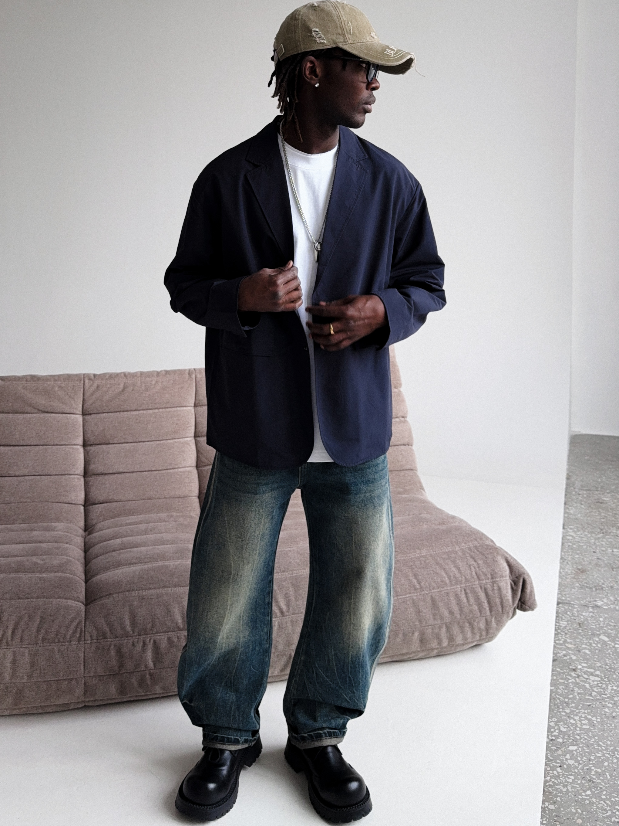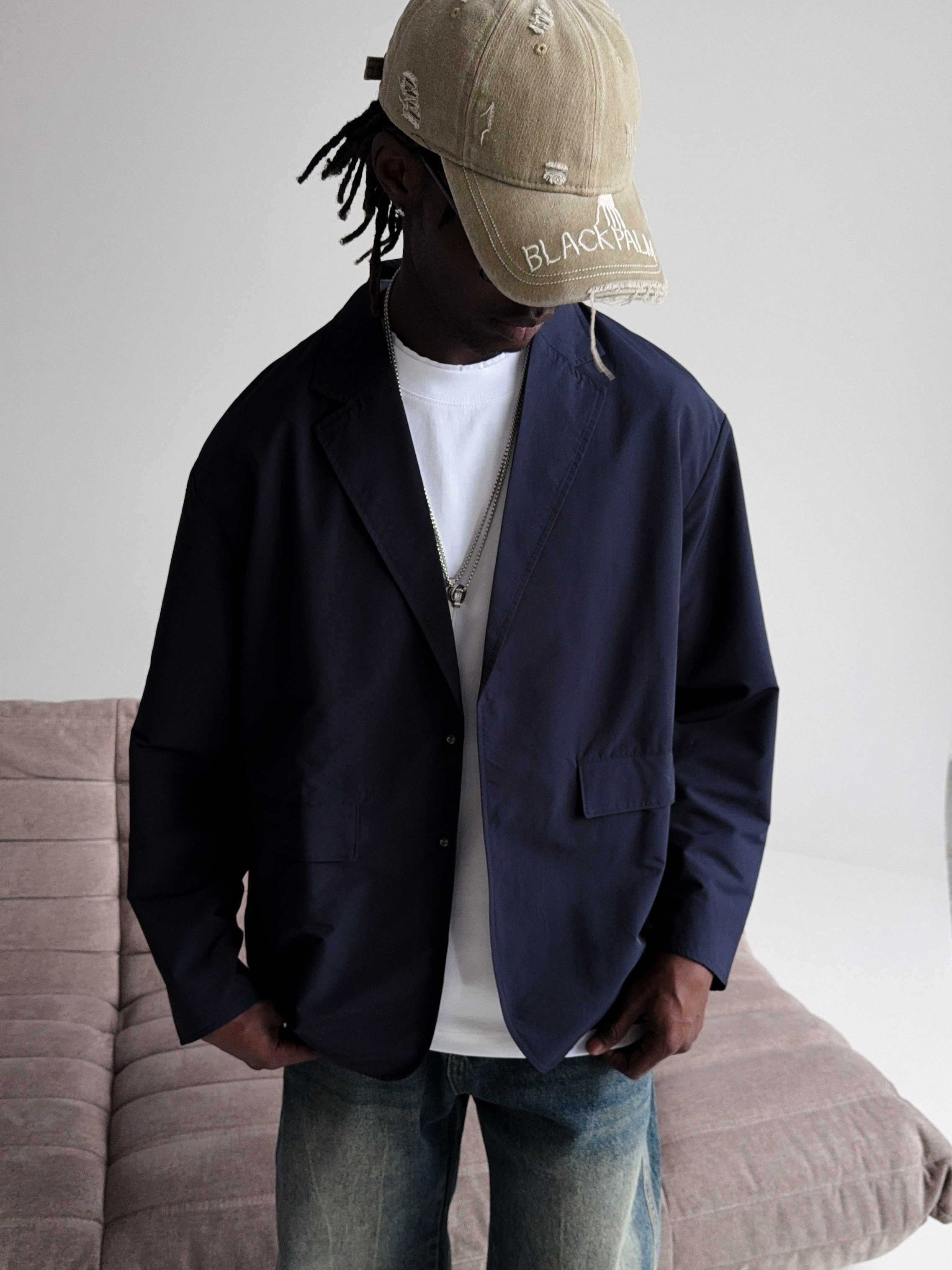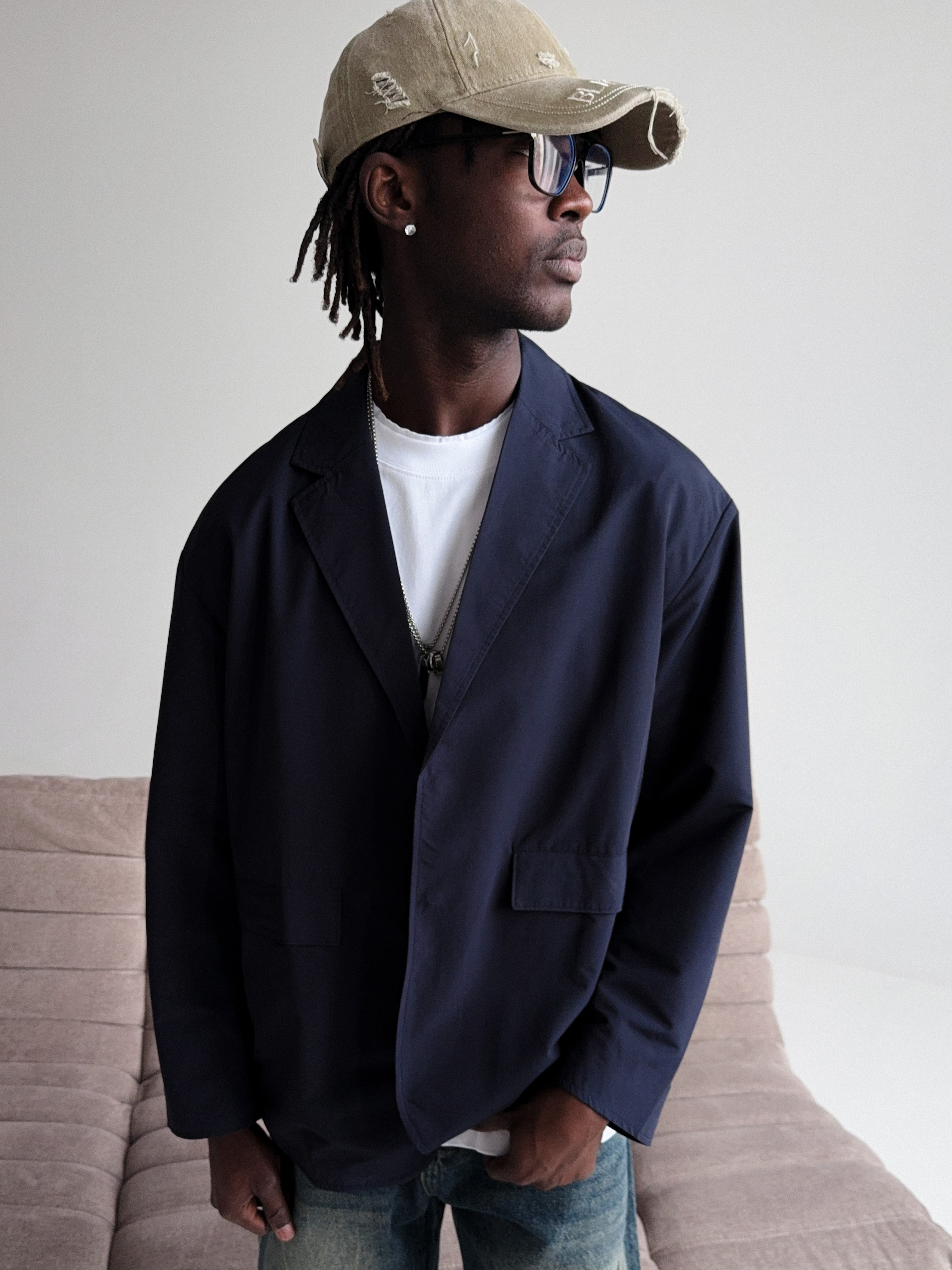 Темно-синий мужской пиджак для создания стильных повседневных образов.
