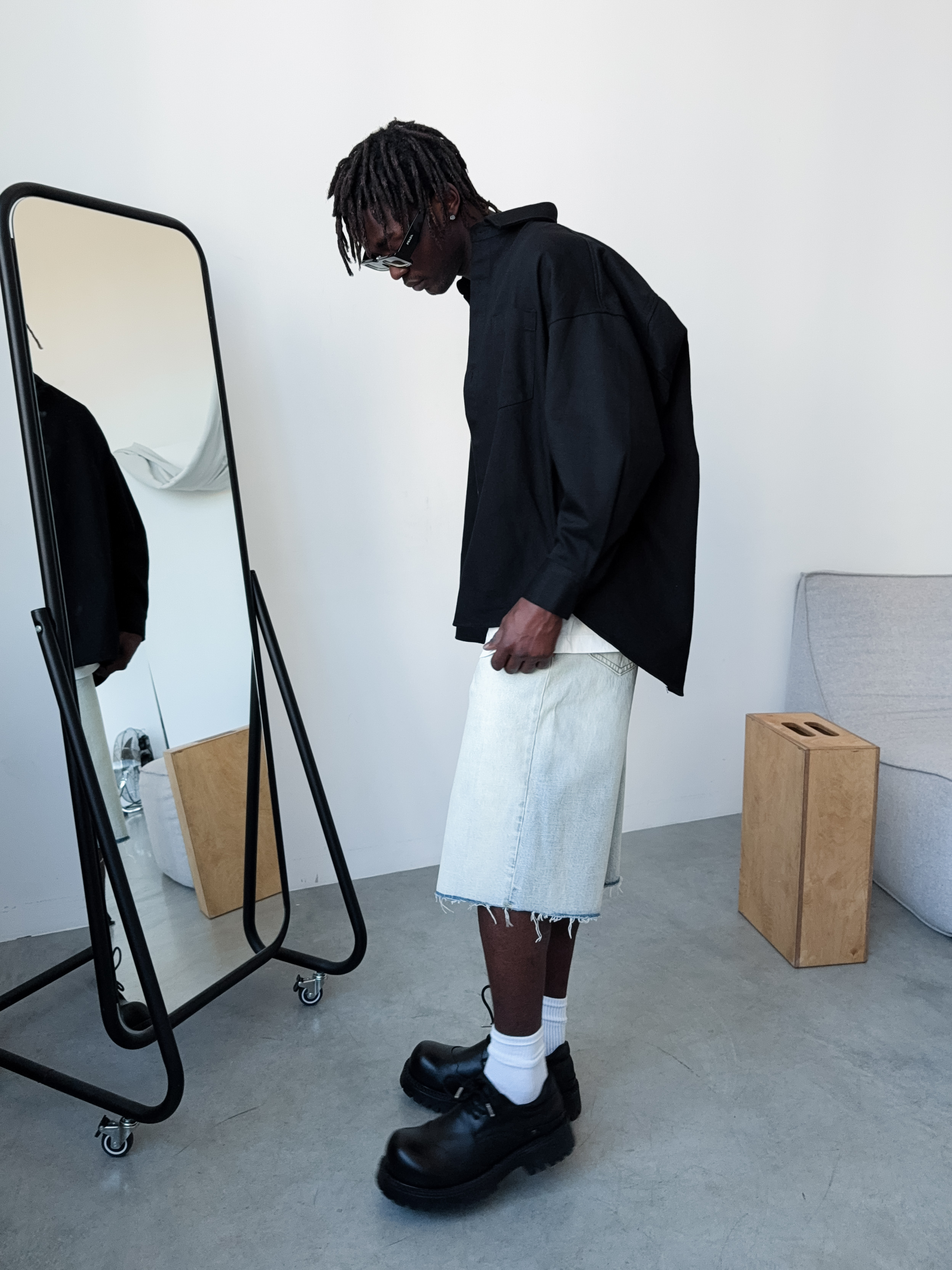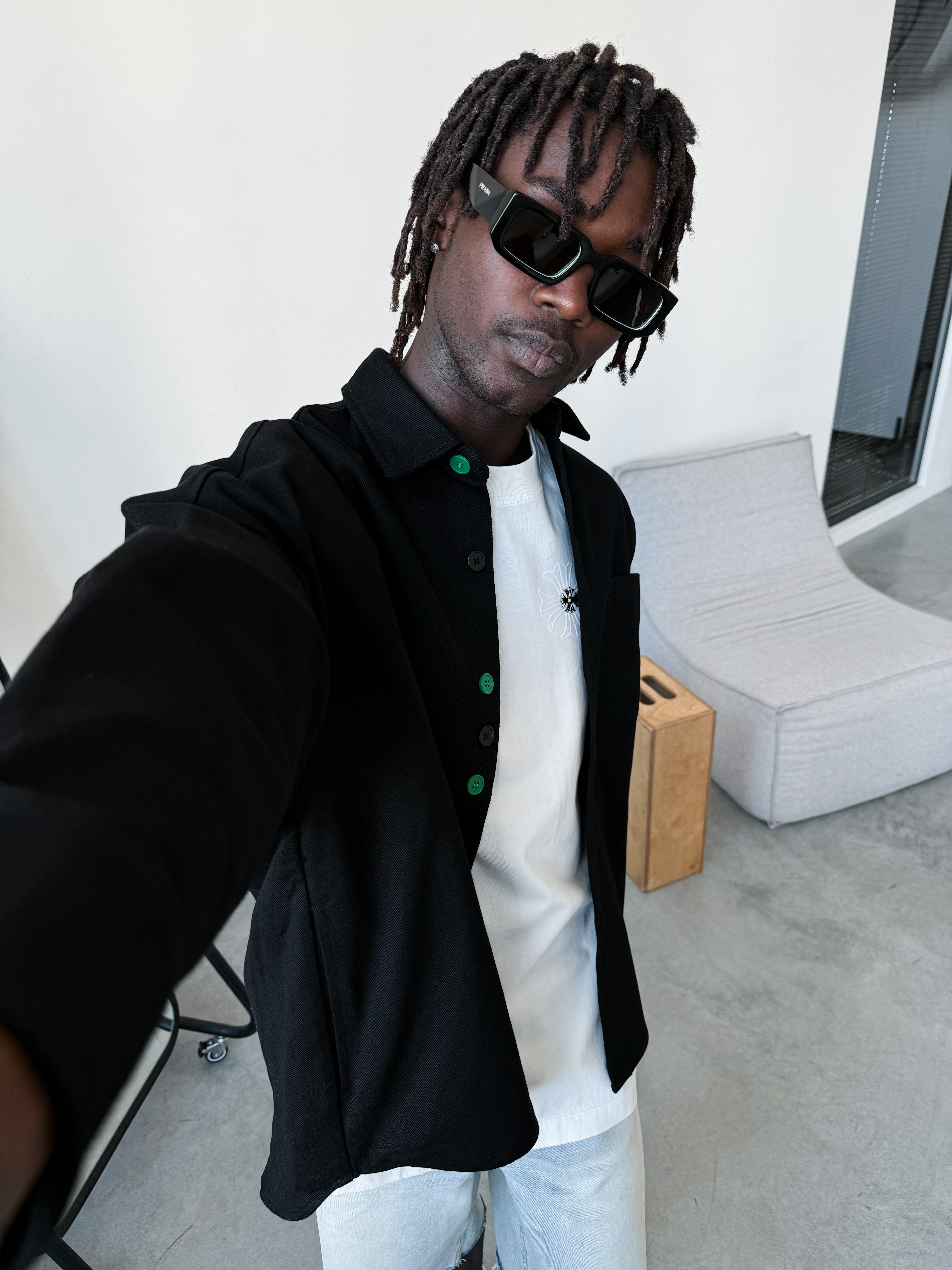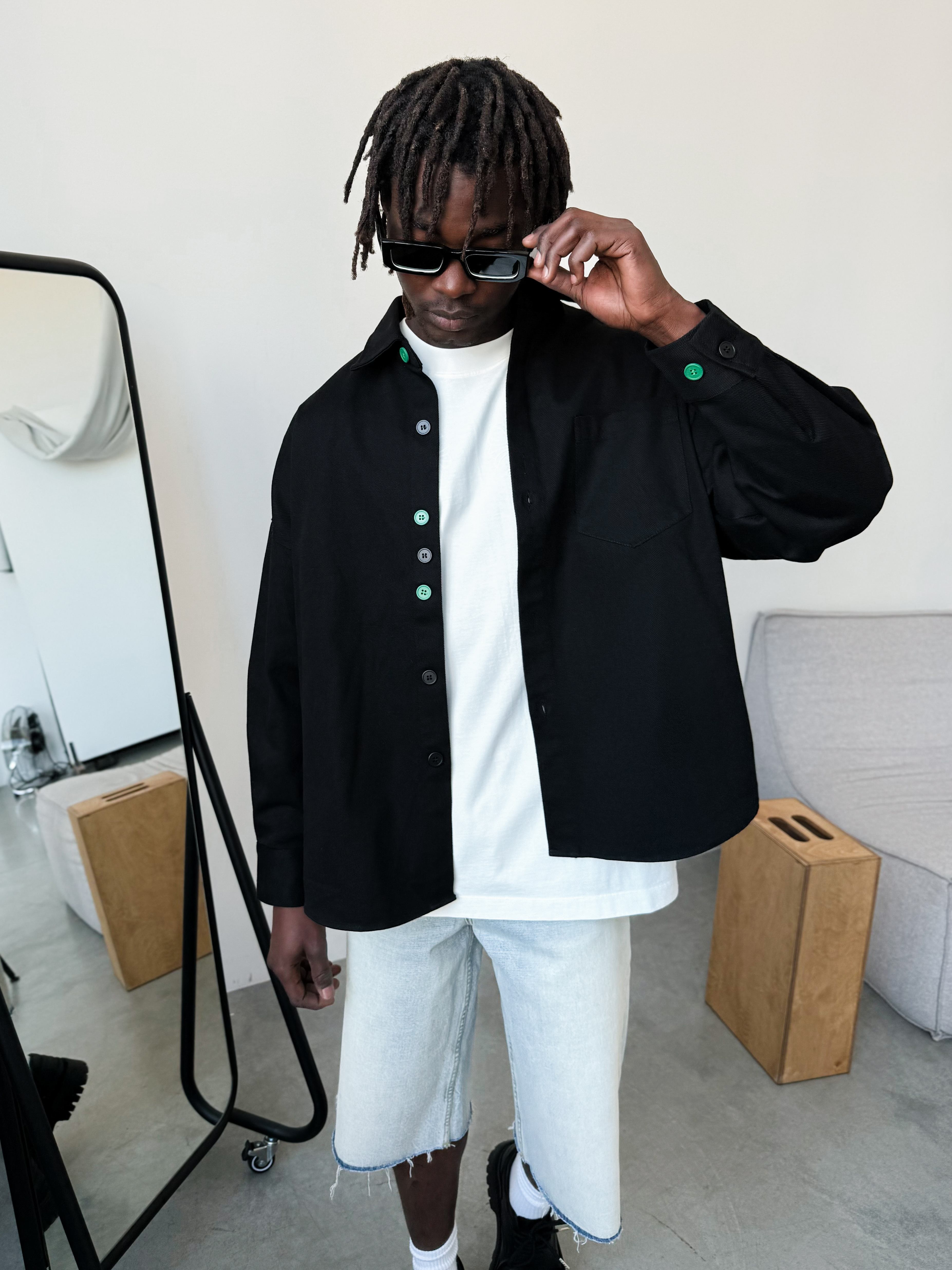 Однотонная черная рубашка оверсайз из 100% хлопка. Контрастные пуговицы позволят сделать яркий акцент и добавить изюминку в образ.