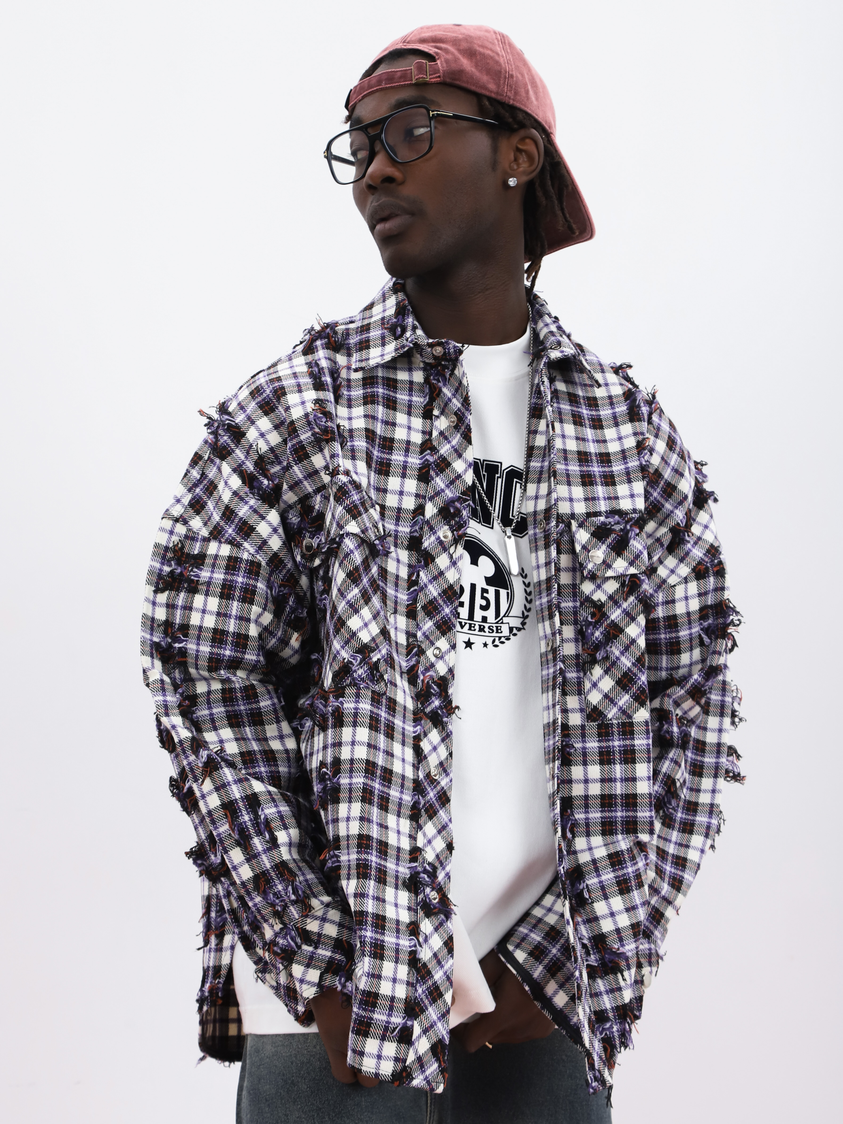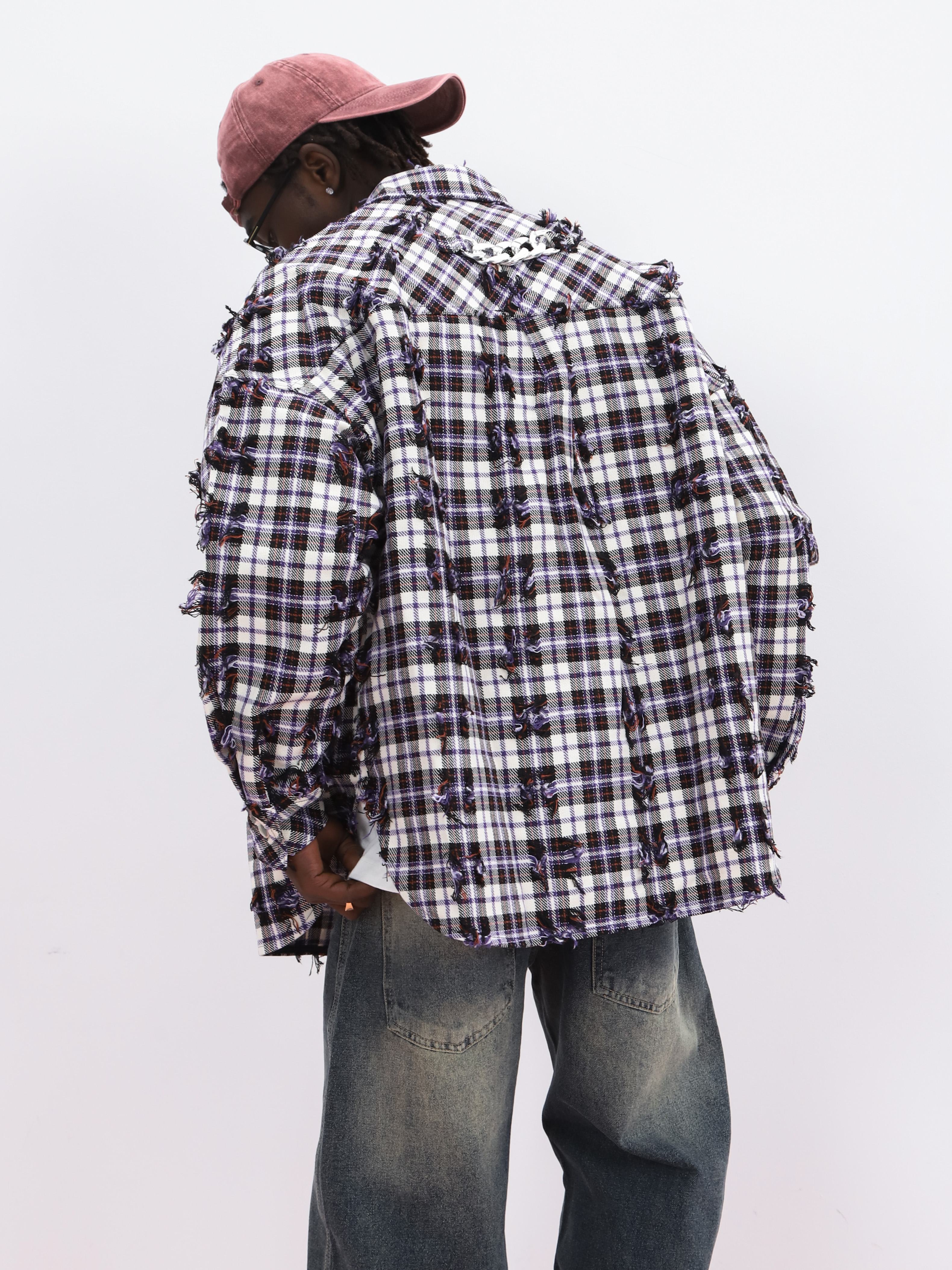 Мужская рубашка оверсайз в клетку. Свободная модель с потертостями украсит любой современный образ.