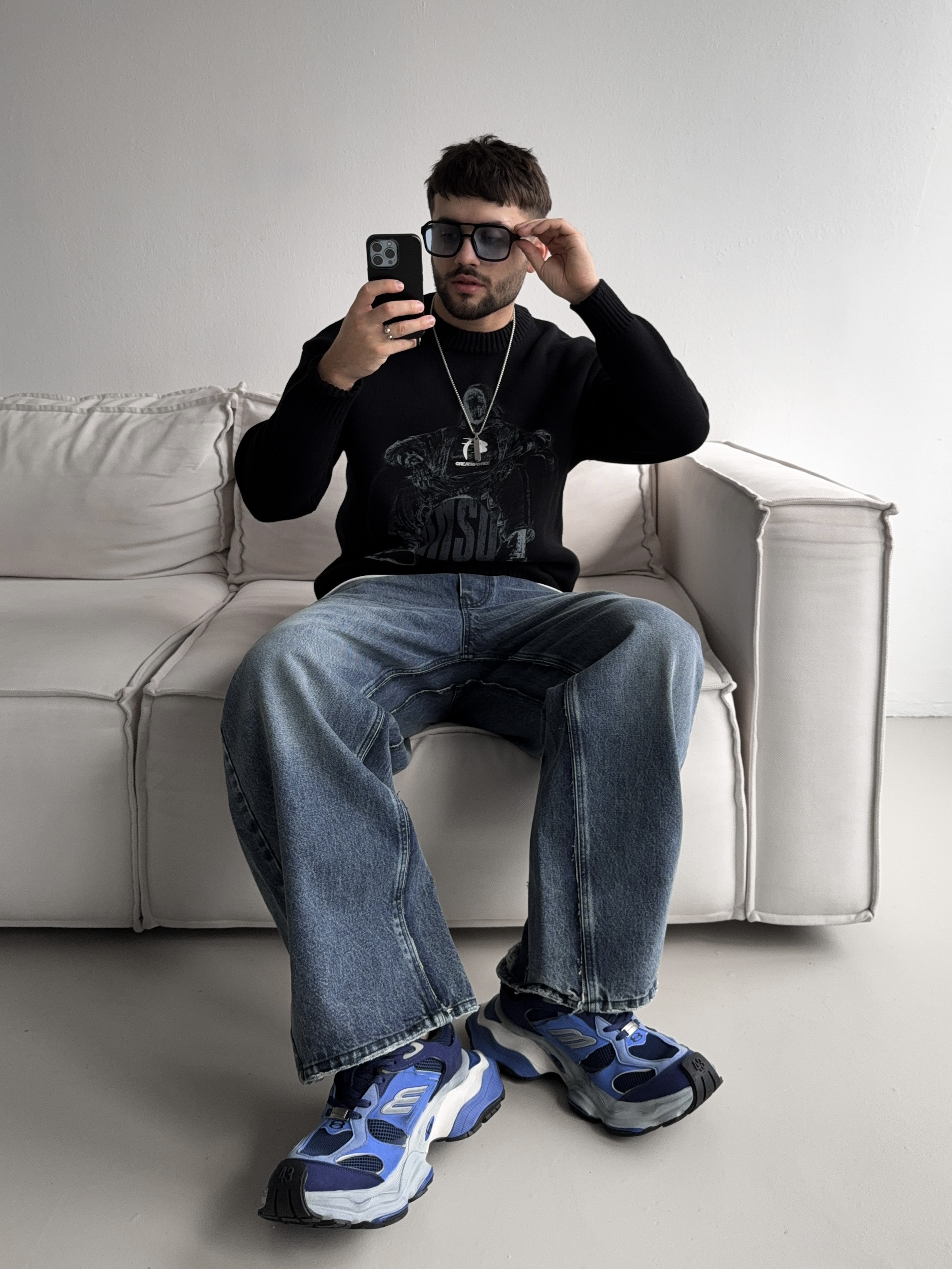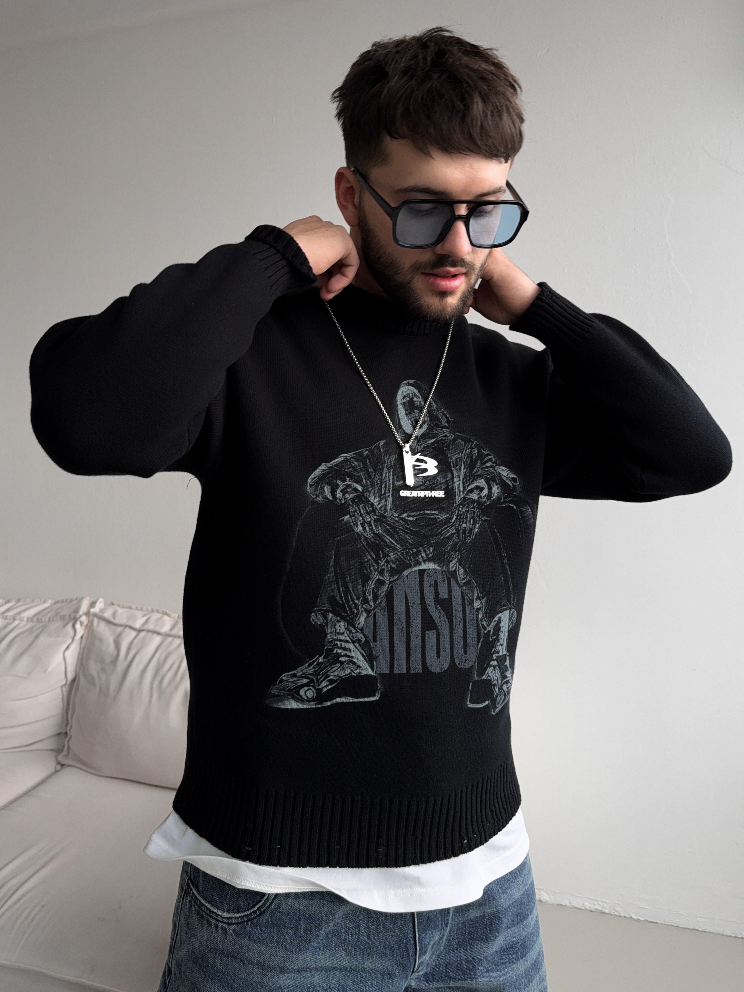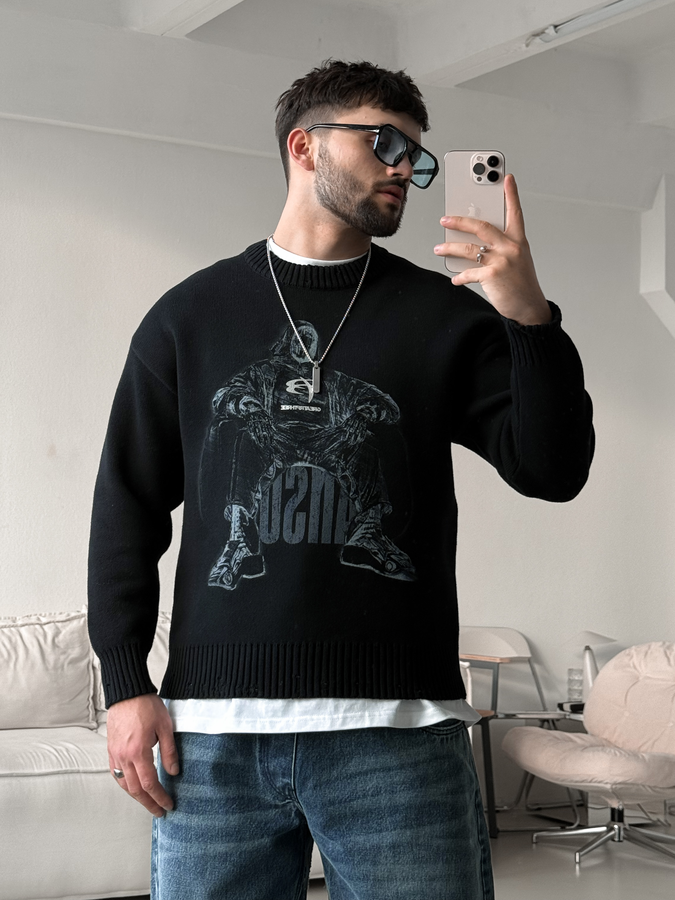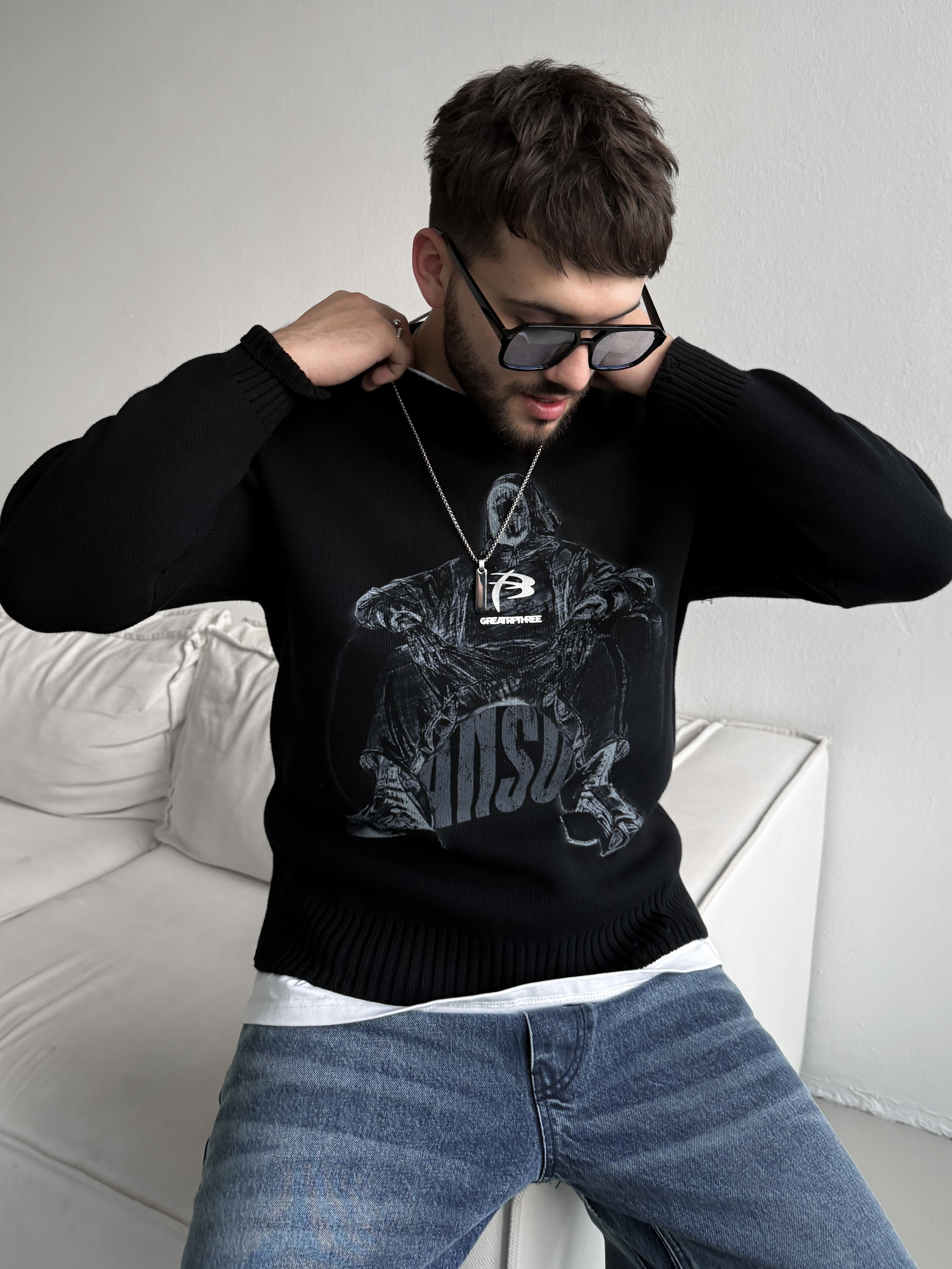Теплый и стильный мужской свитер с принтом. Идеальная модель для небанальных повседневных образов.