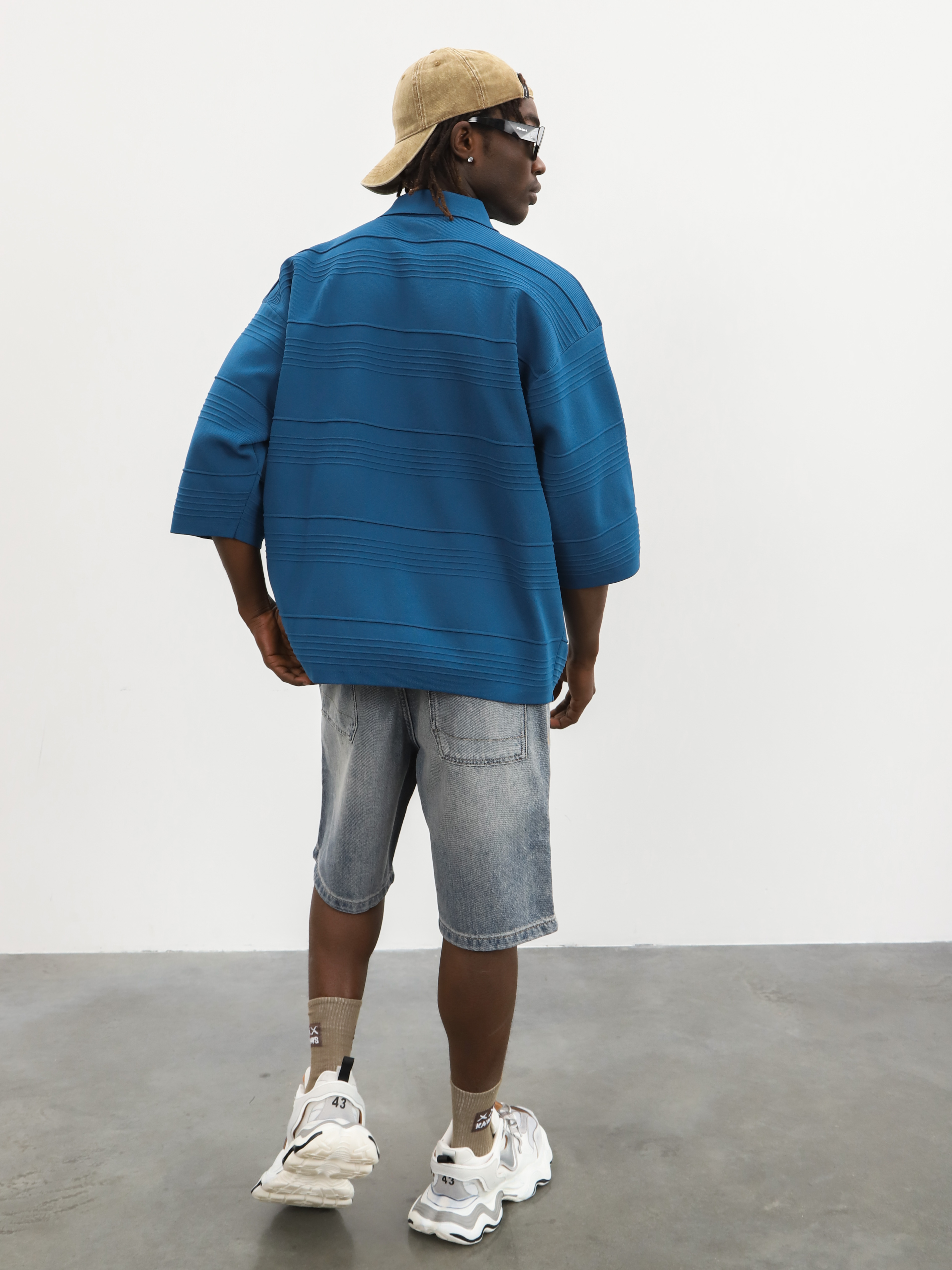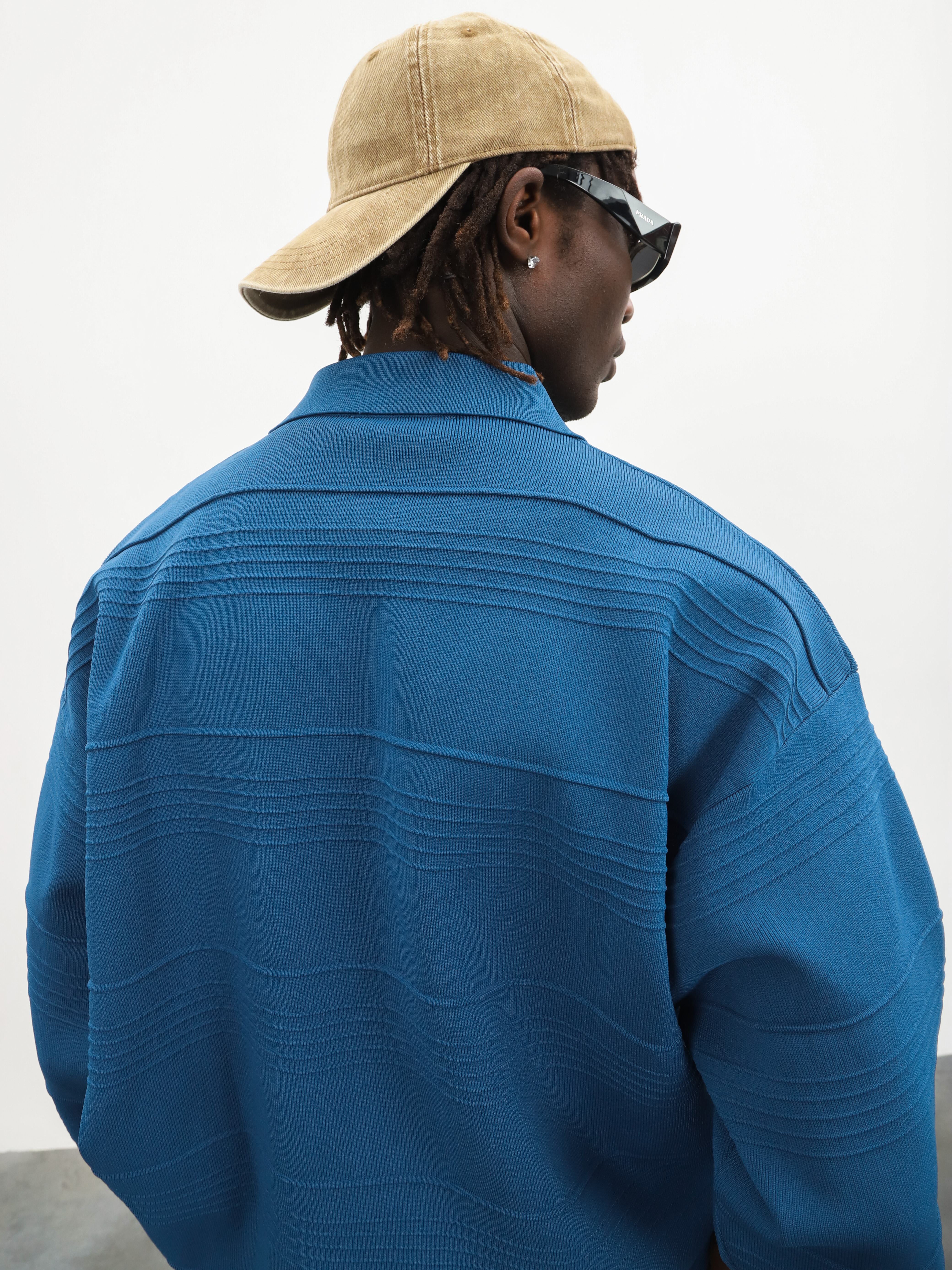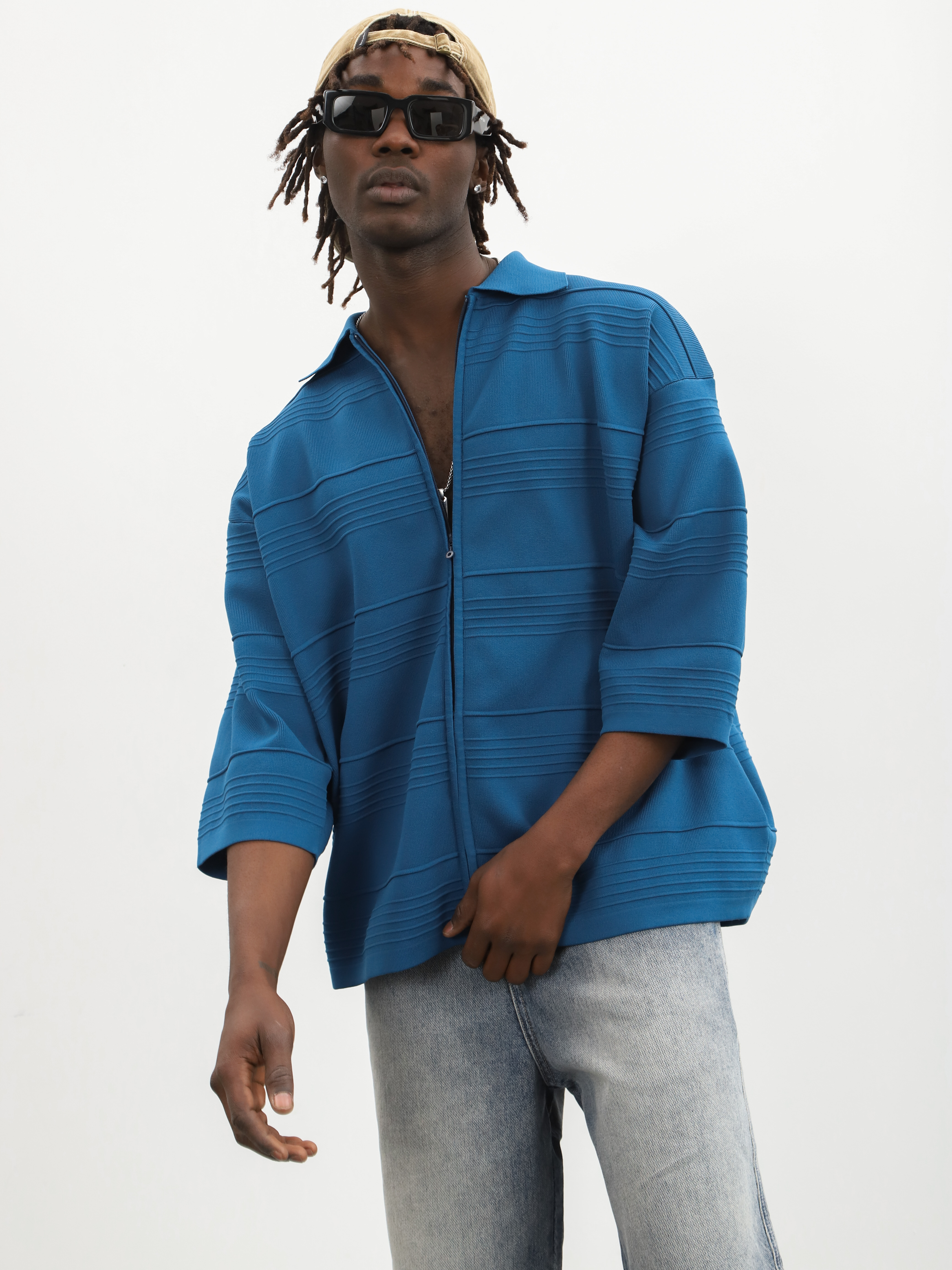 Синяя мужская толстовка на молнии с отложным воротником. Свободная модель для стильных и комфортных повседневных образов.