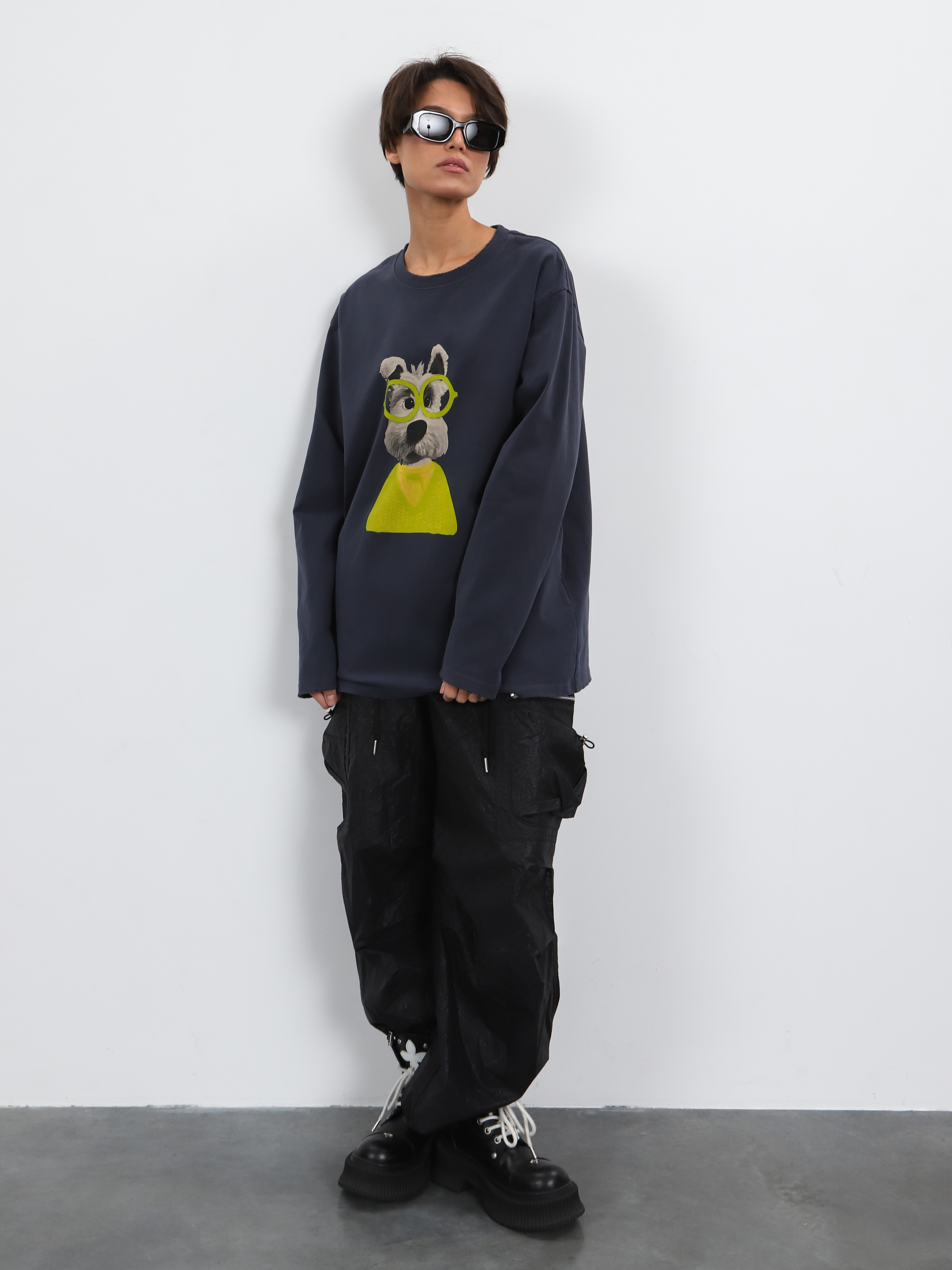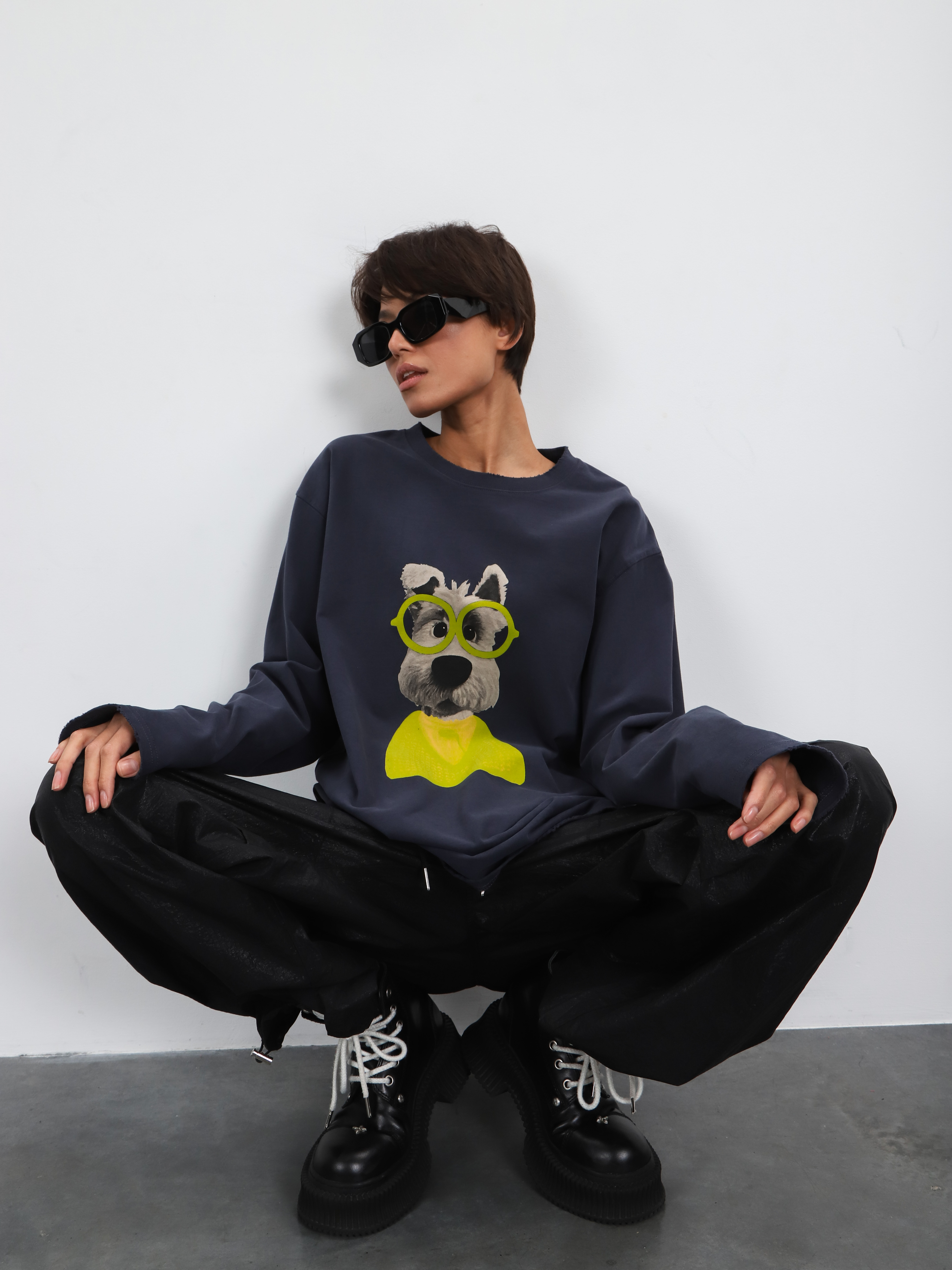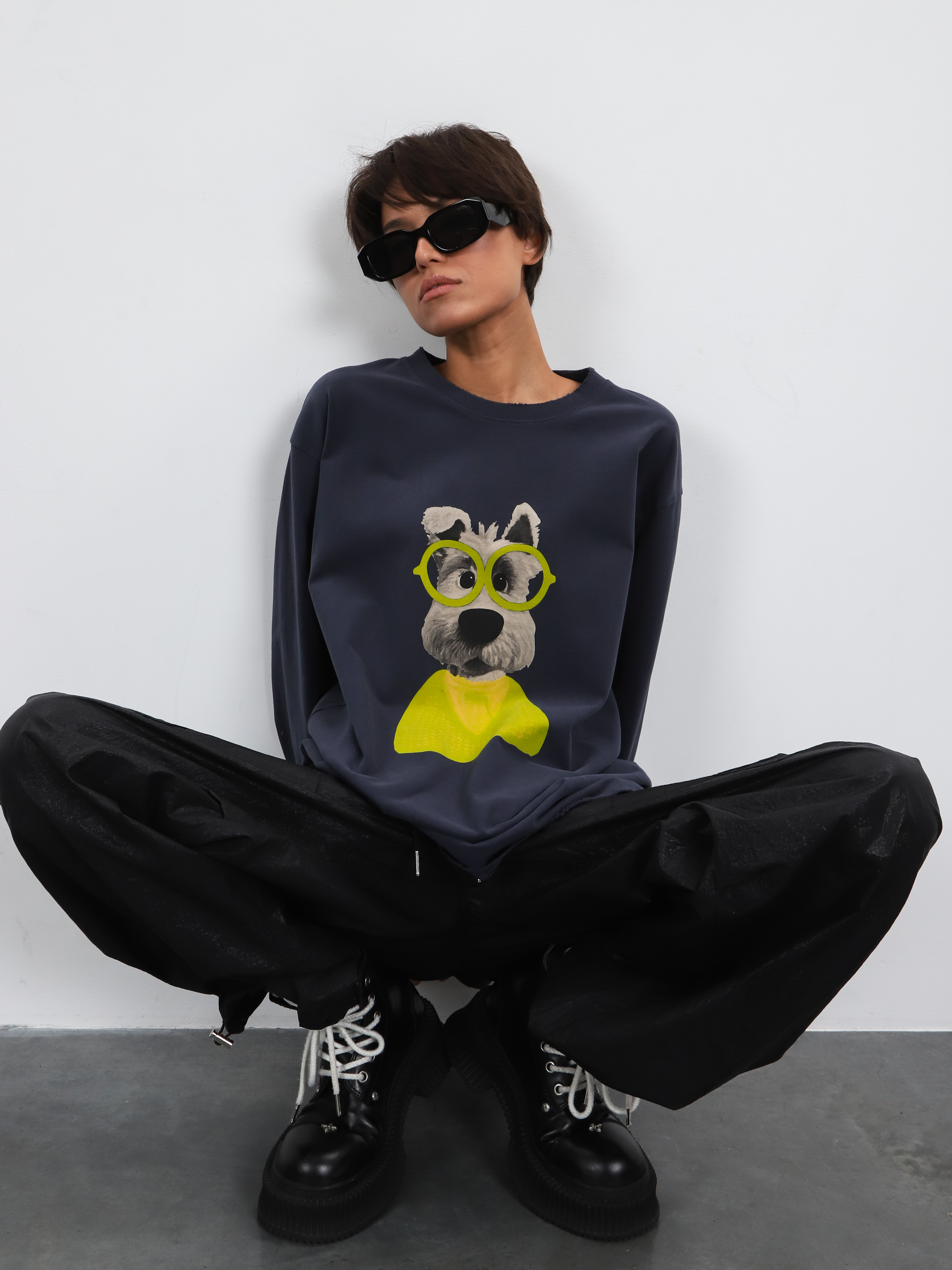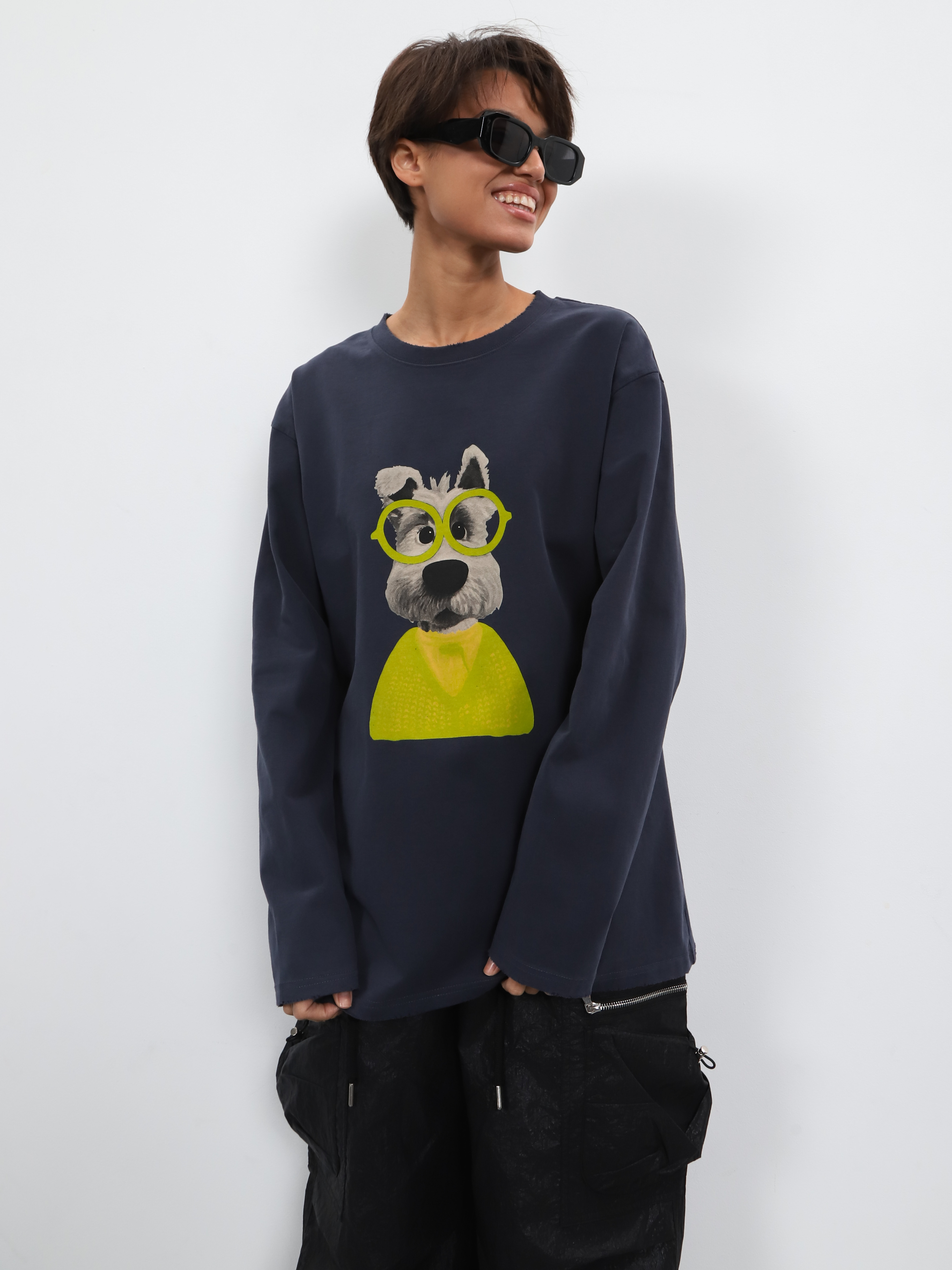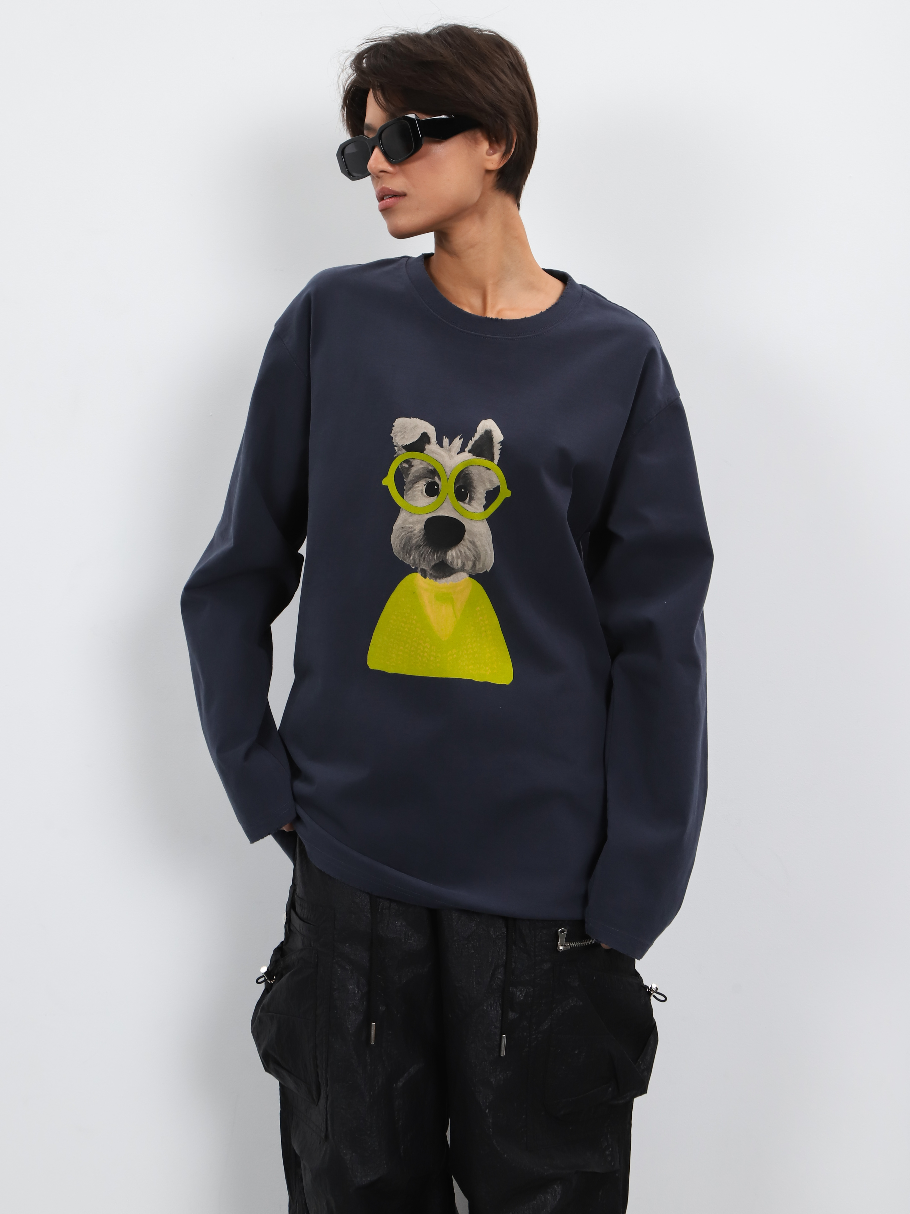 Женский лонгслив с ярким принтом и эффектом потертого края. Стильная модель для создания нескучных образов на каждый день.