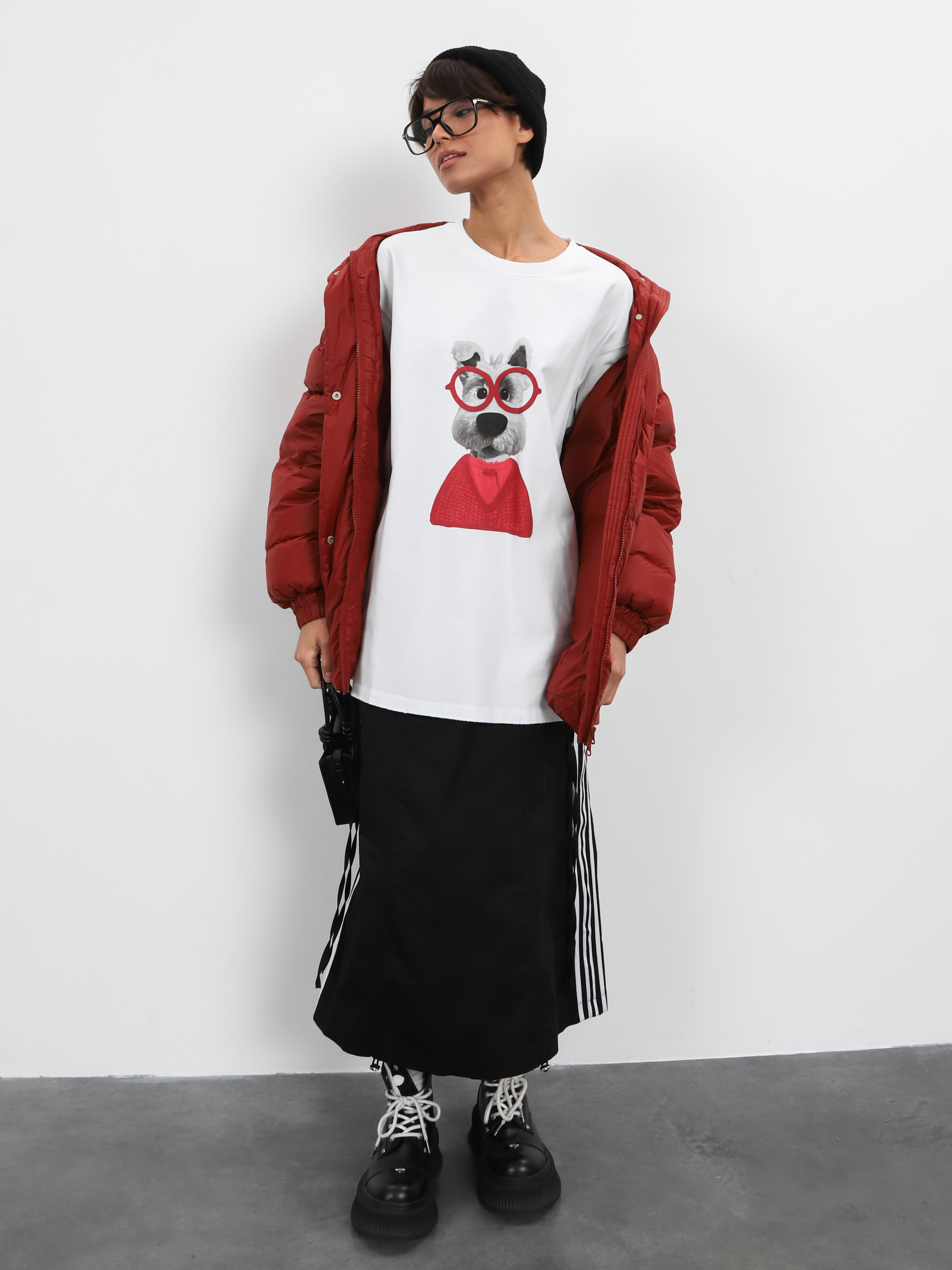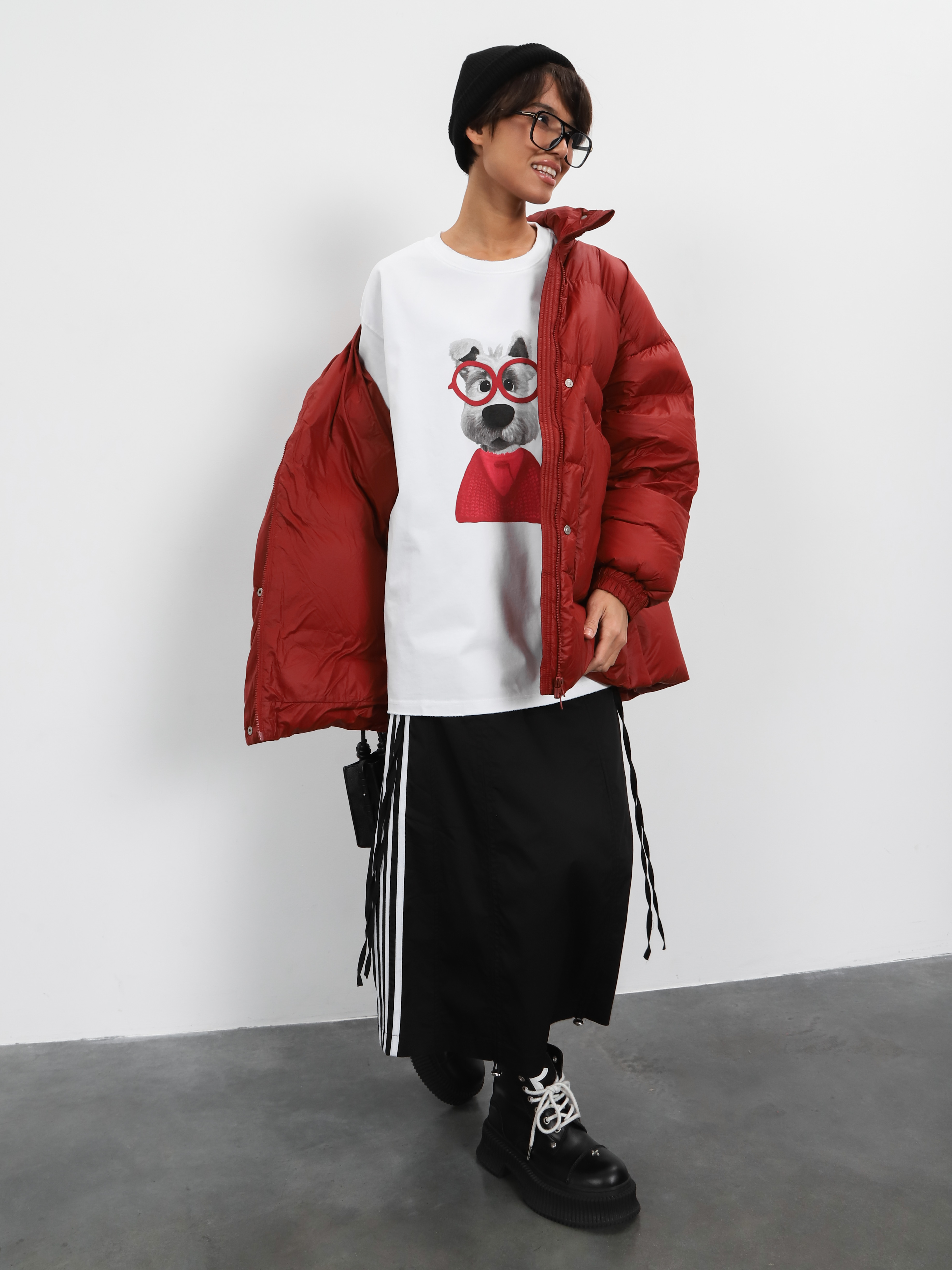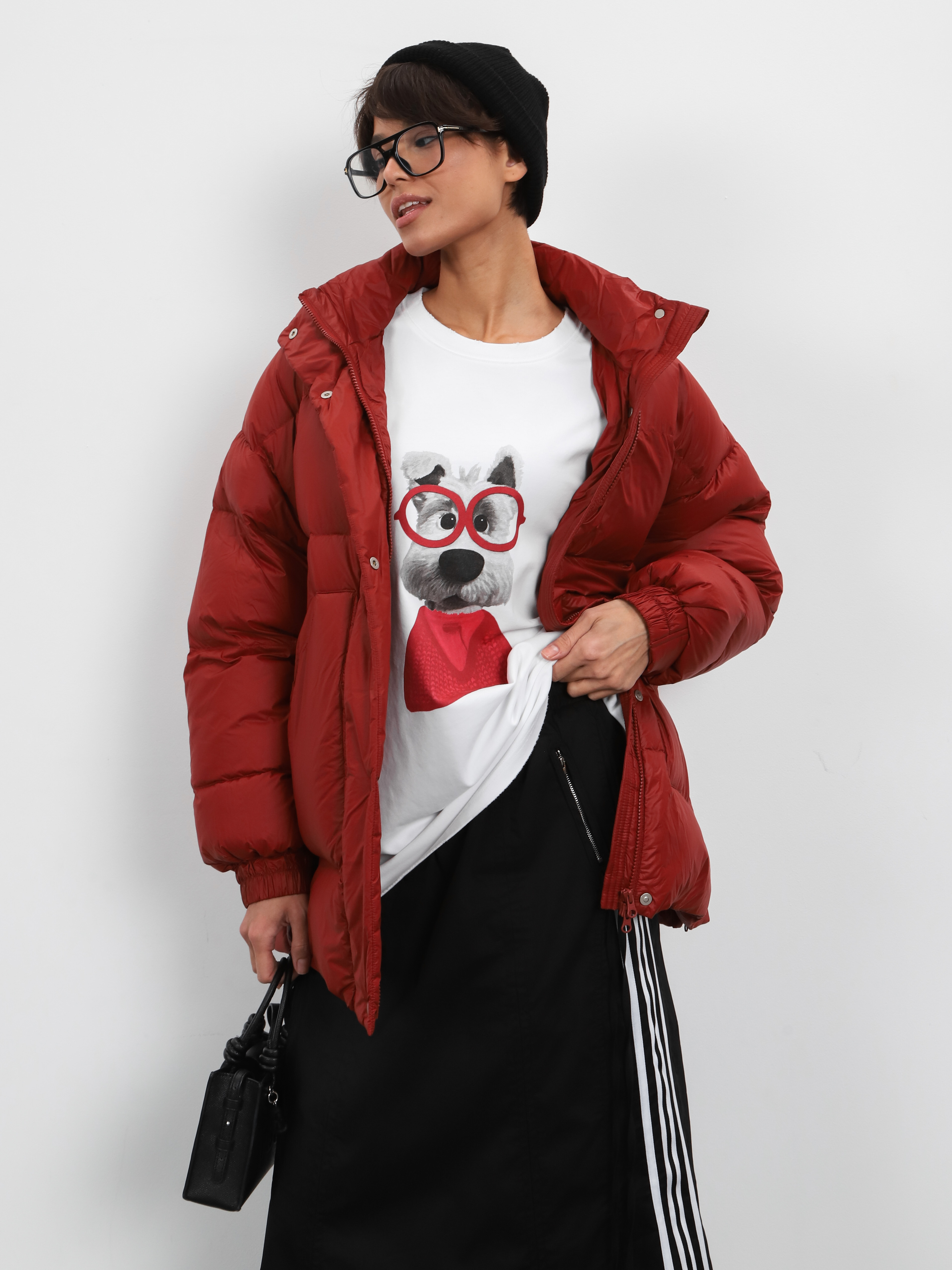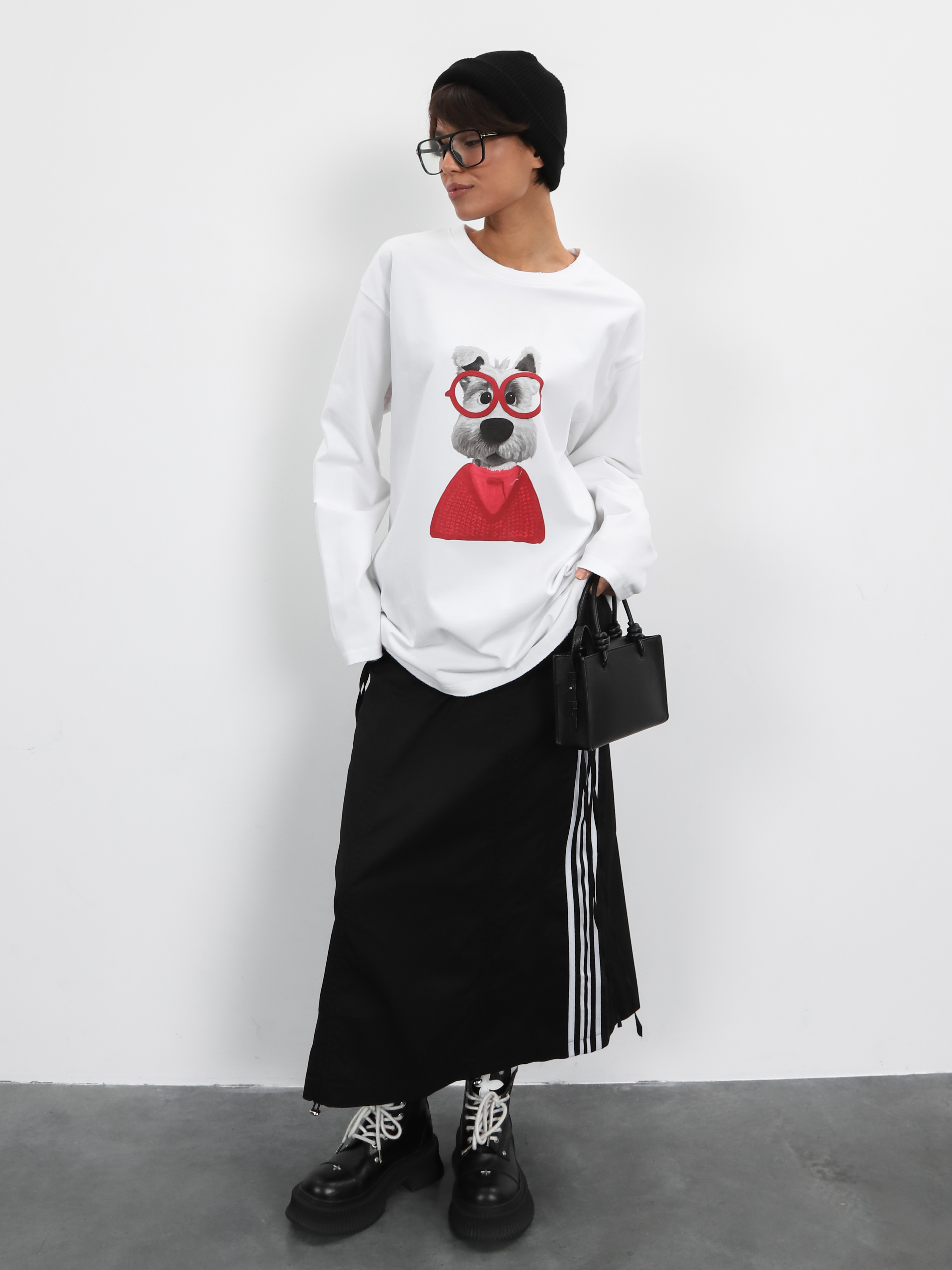 Женский лонгслив с ярким принтом и эффектом потертого края. Стильная модель для создания нескучных образов на каждый день.